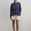Mock-neck blouse with an attached tie at the neckline, cut from sandwashed silk. Designed with long sleeves, buttoned cuffs, and back button detailing. Perfect for a holiday party.