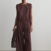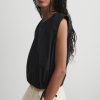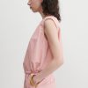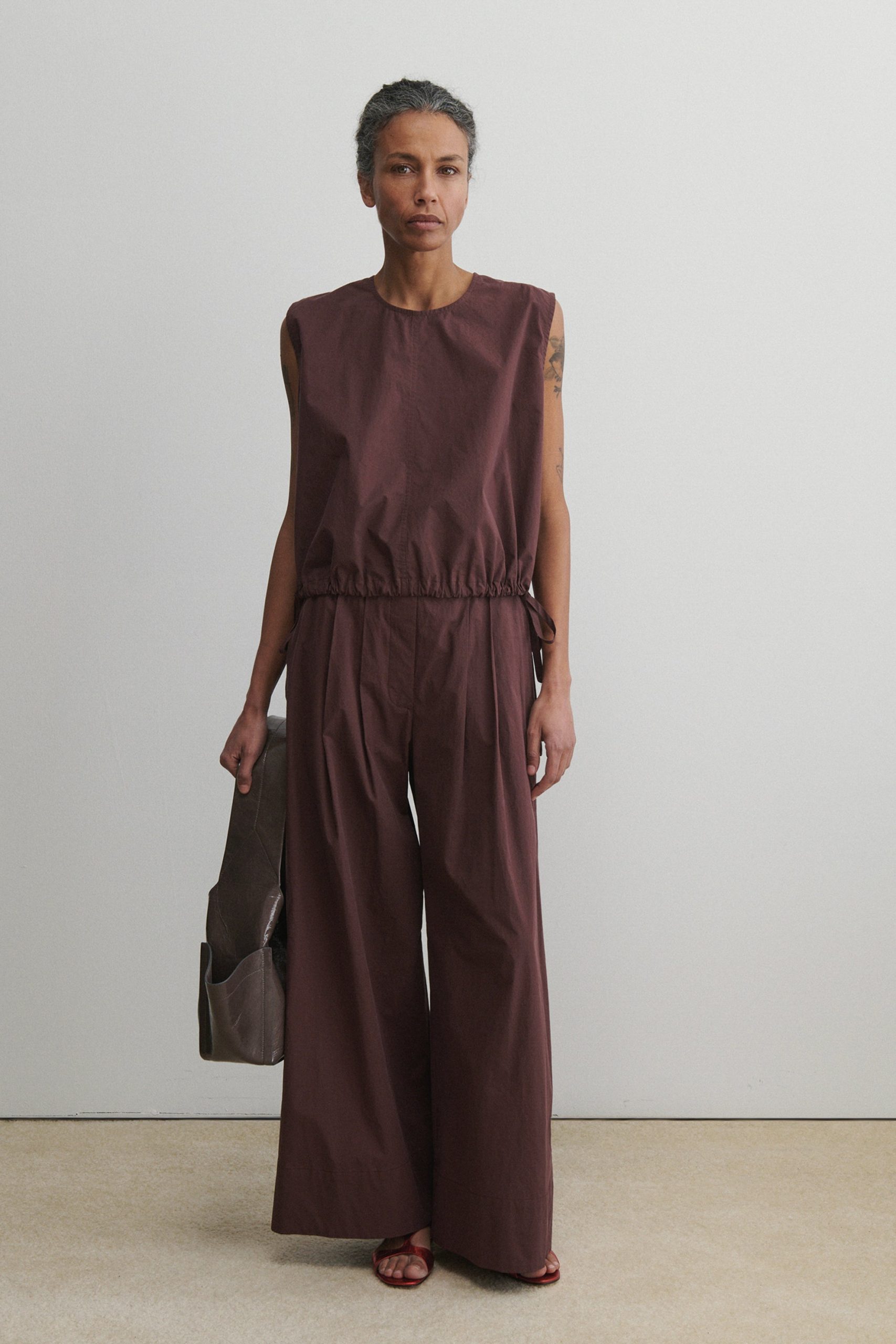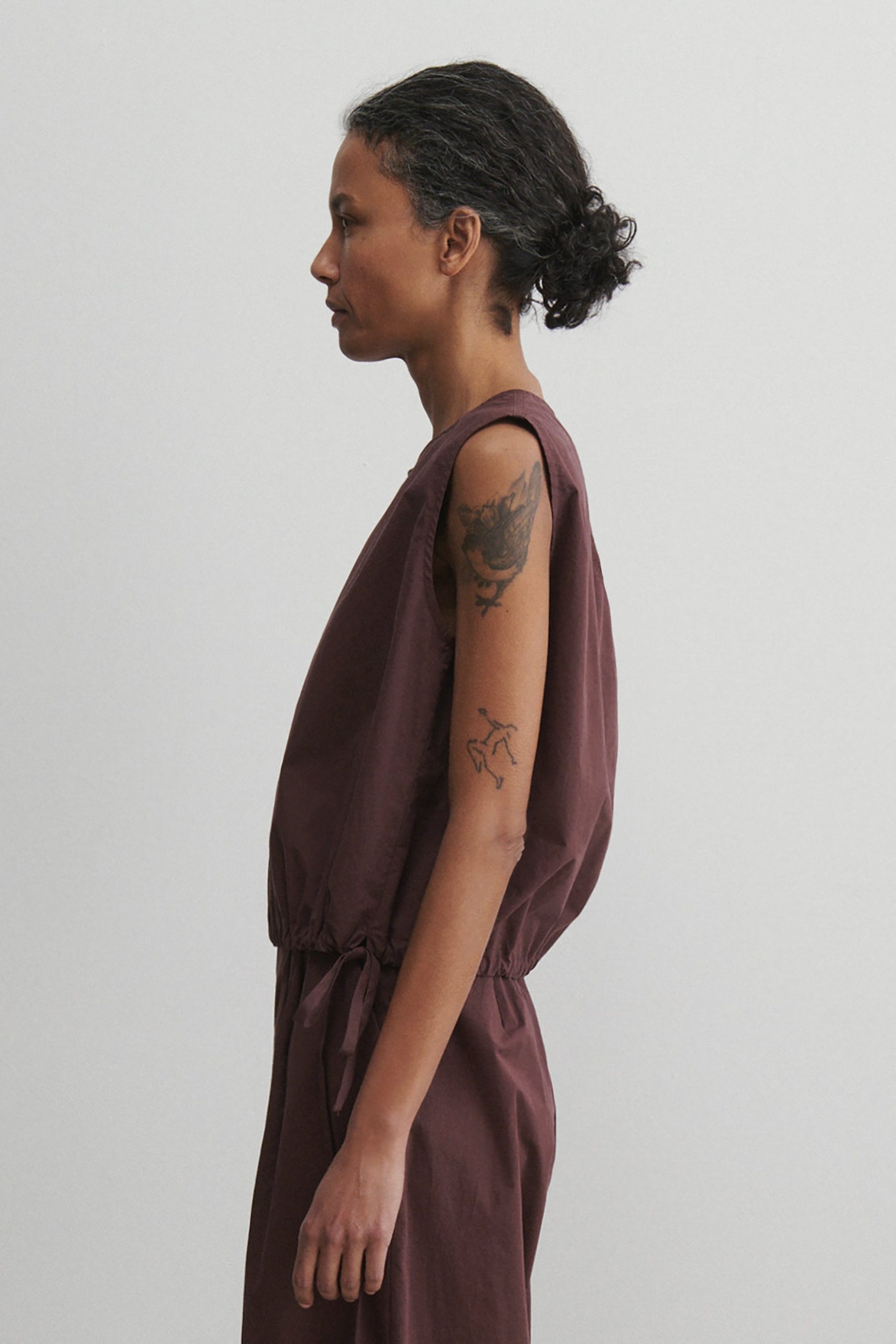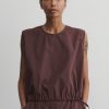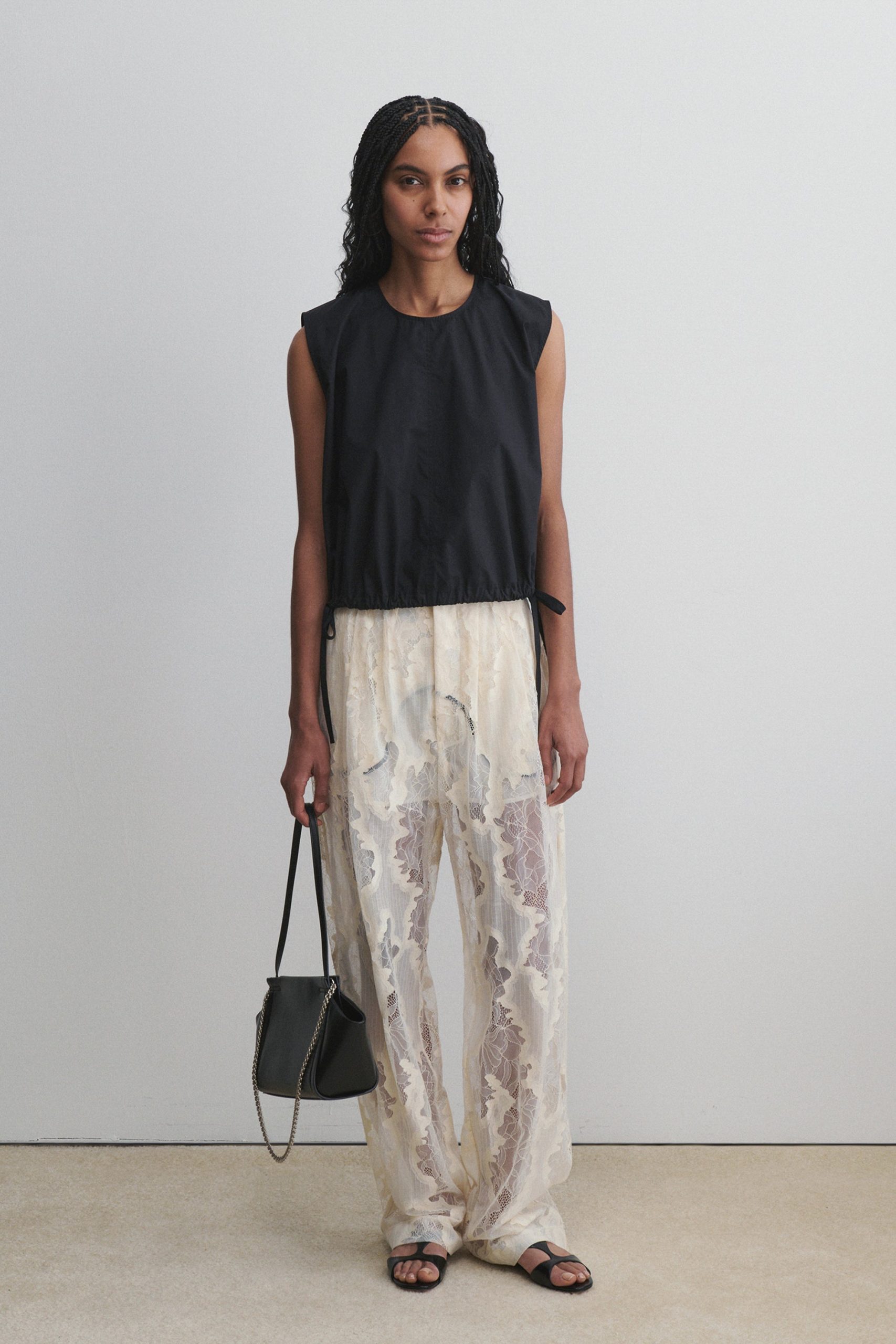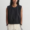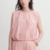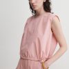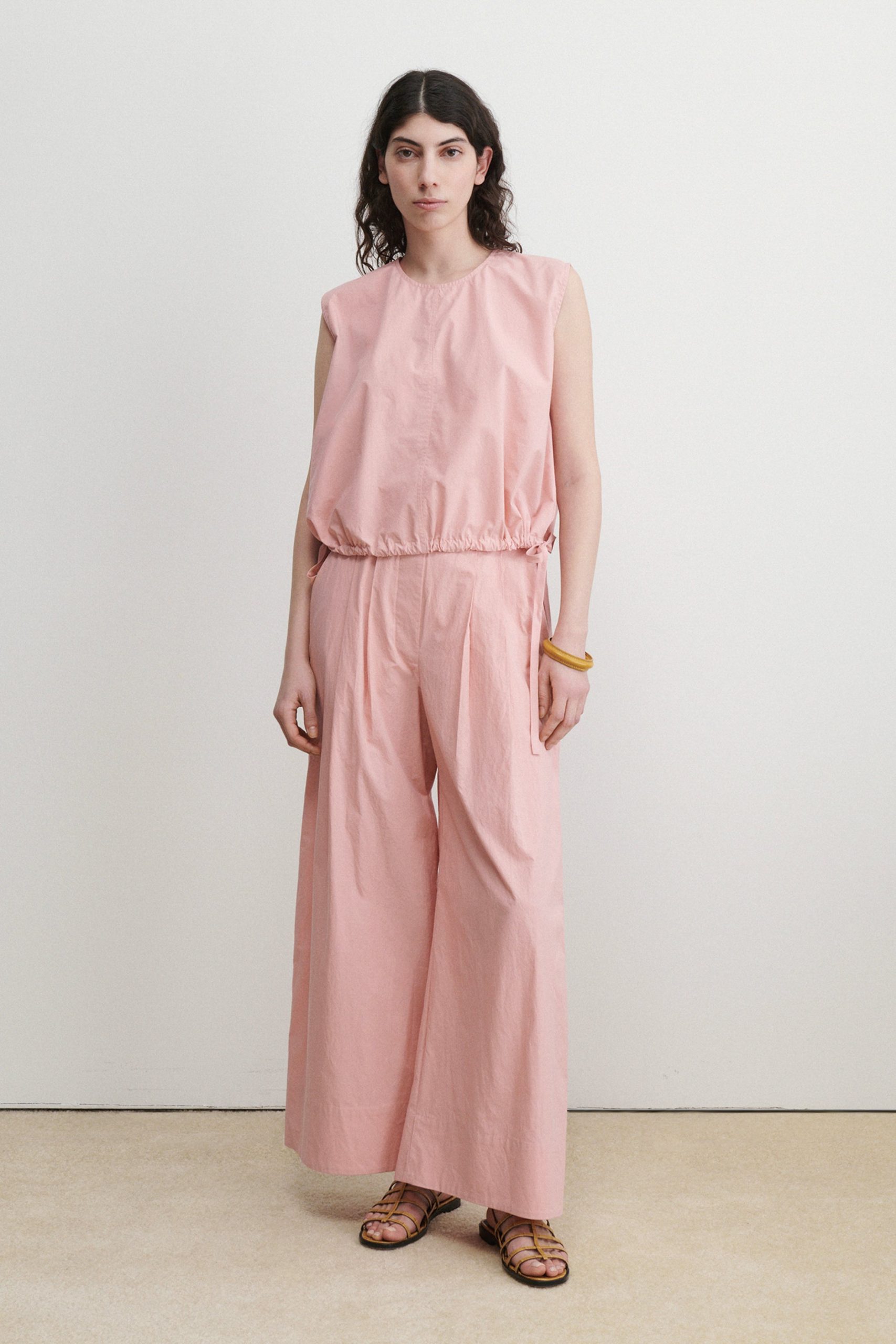 Sleeveless round neck top cut from crisp cotton. Finished with a drawsting at the hem.