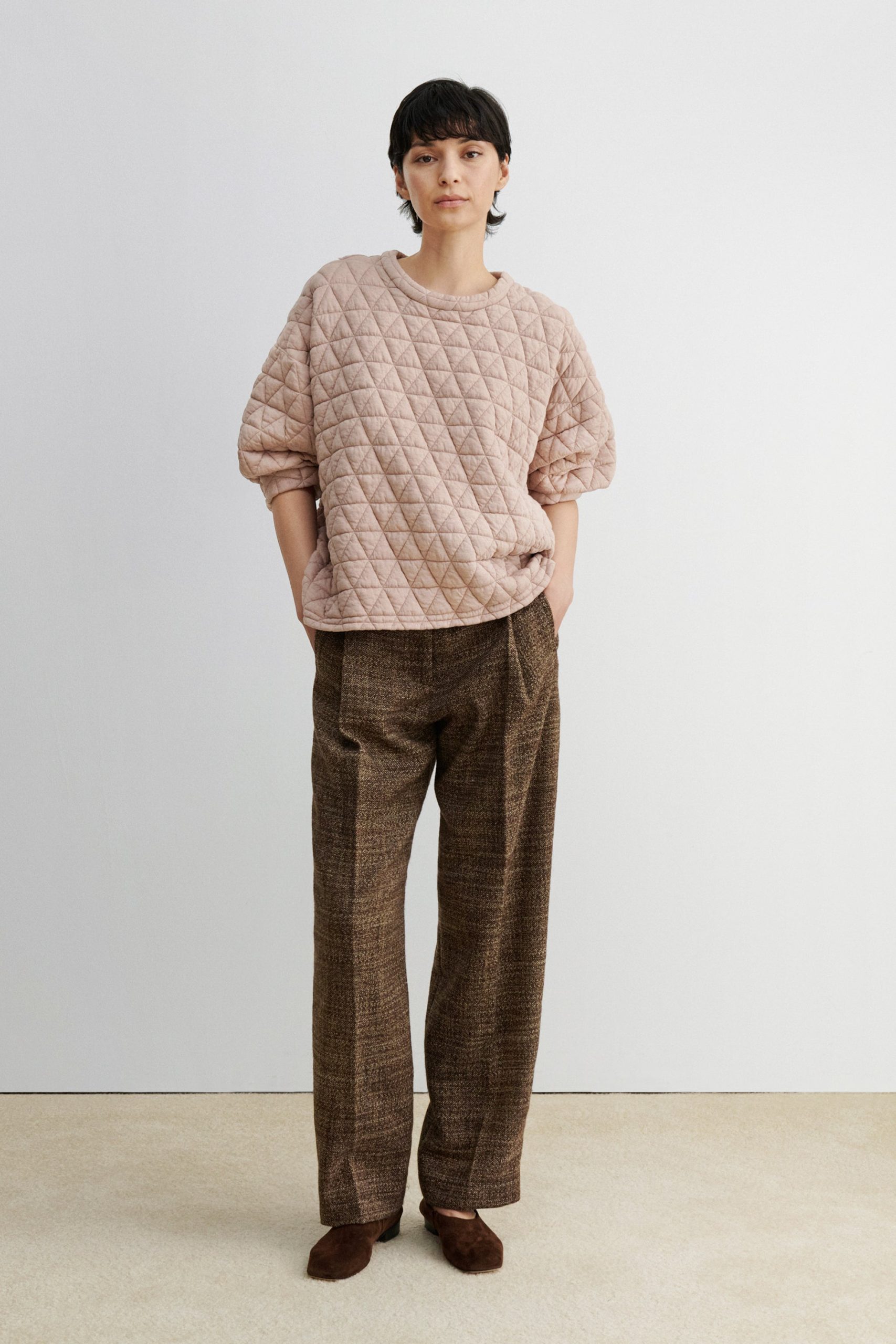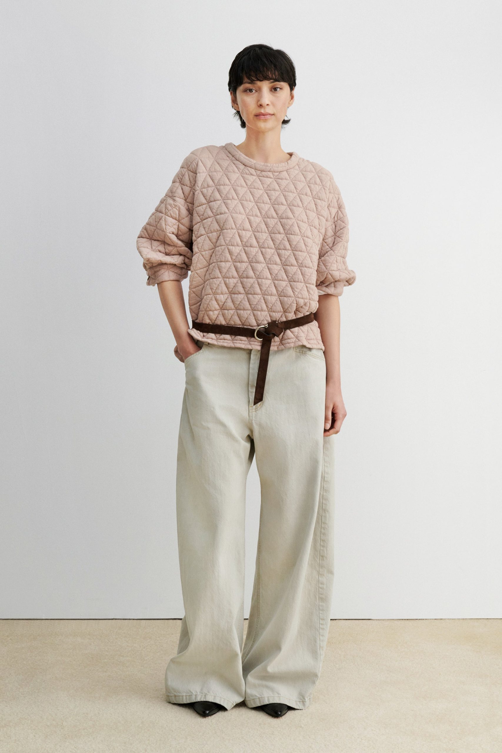 Our essential sweatshirt with drop shoulders and cropped sleeves in a new Diamond Quilted Jersey. Pairs with the Bon Pant.