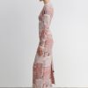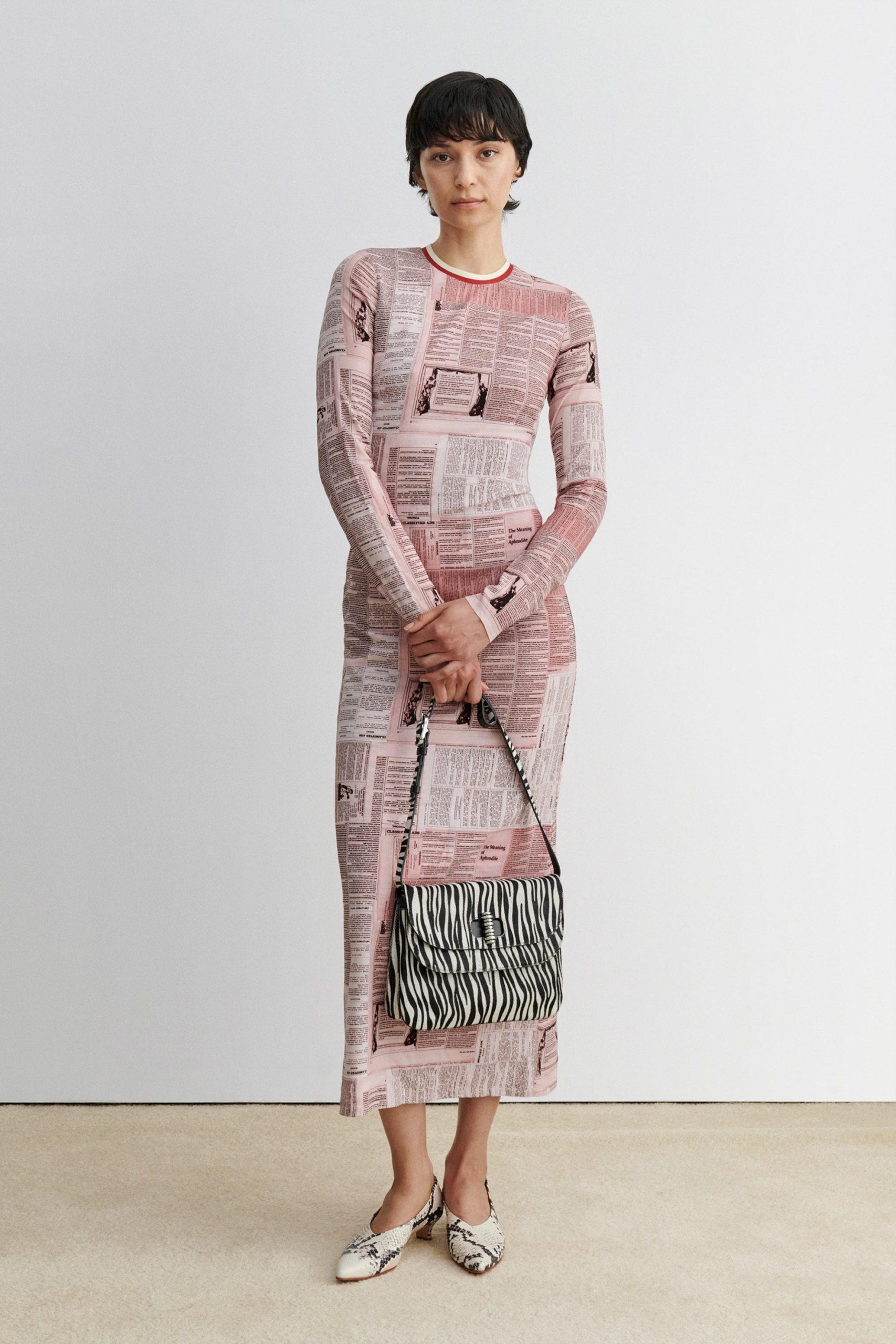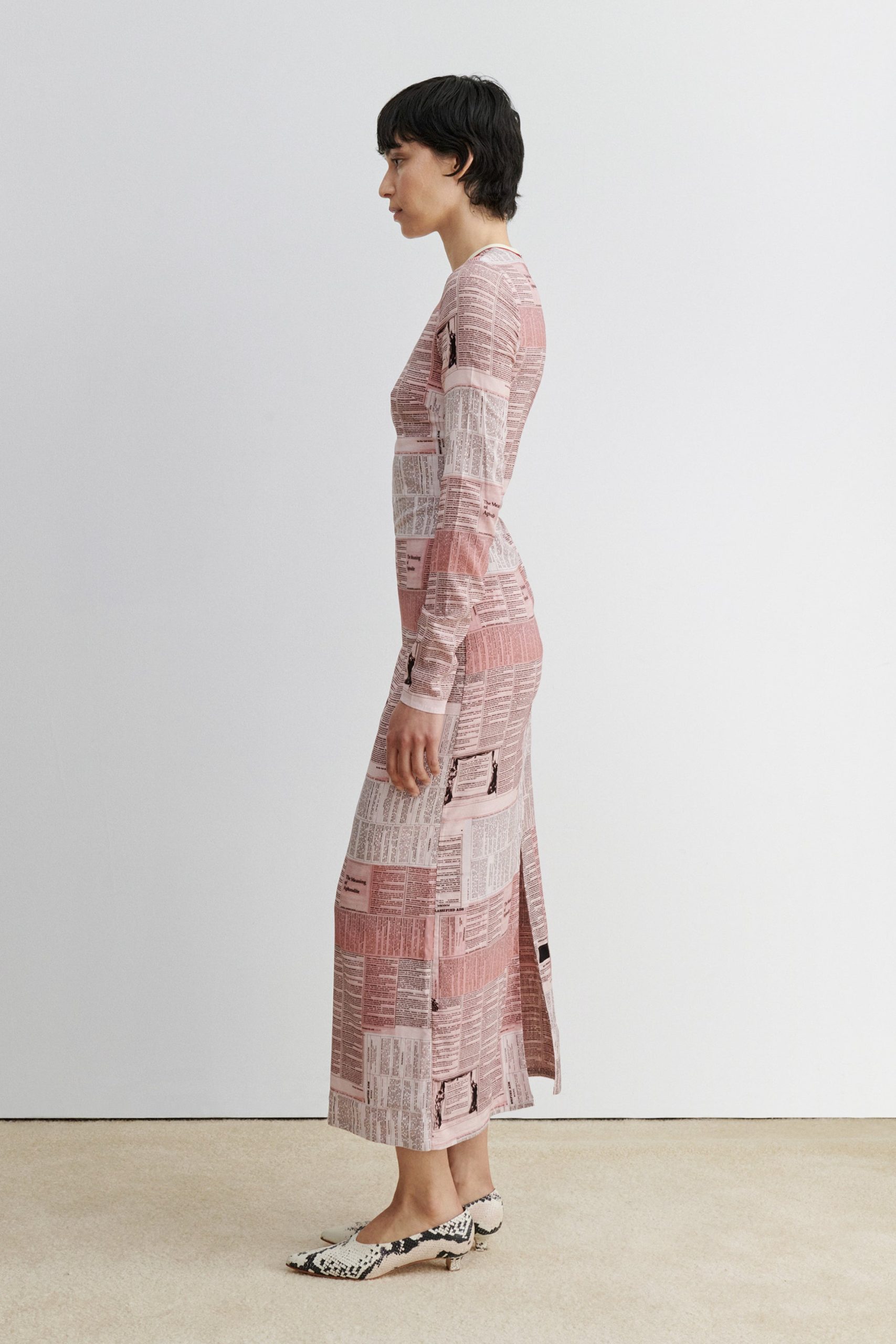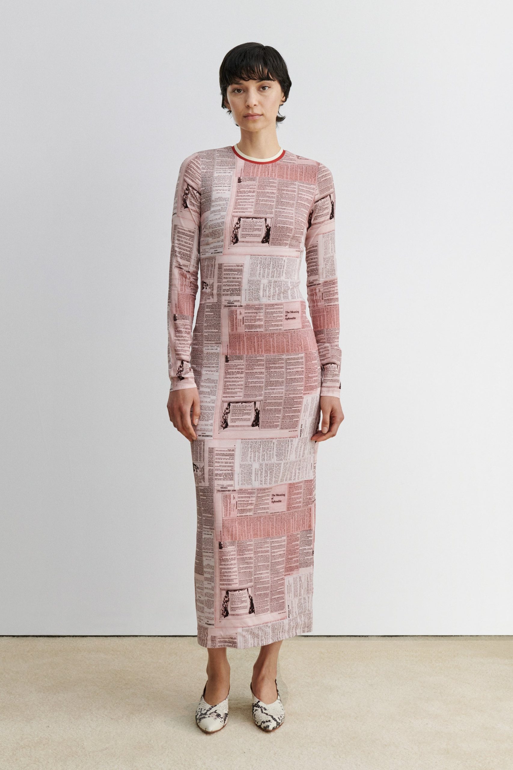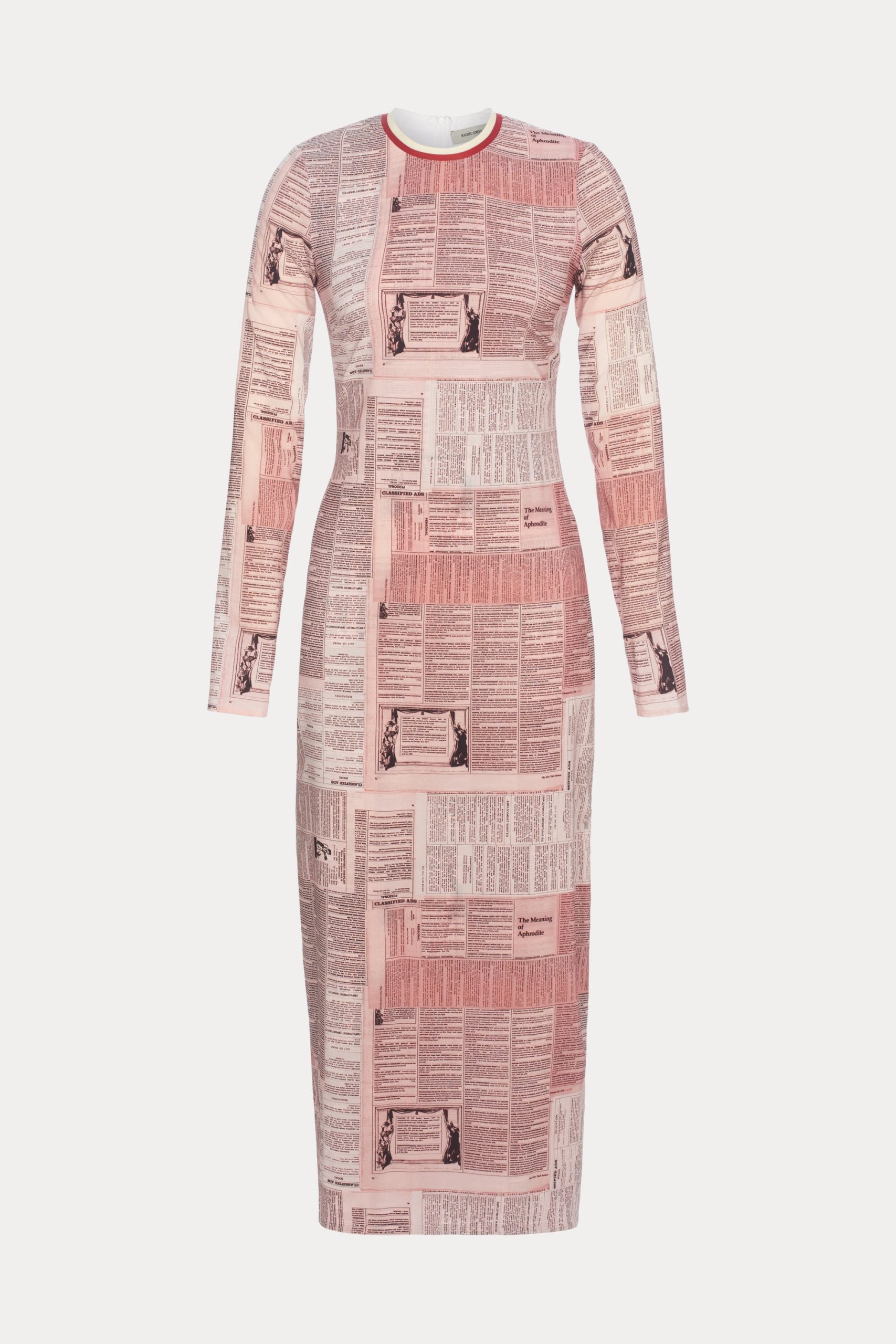 Long-sleeve midi dress in stretchy graphic print. A bold piece for day or night.