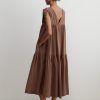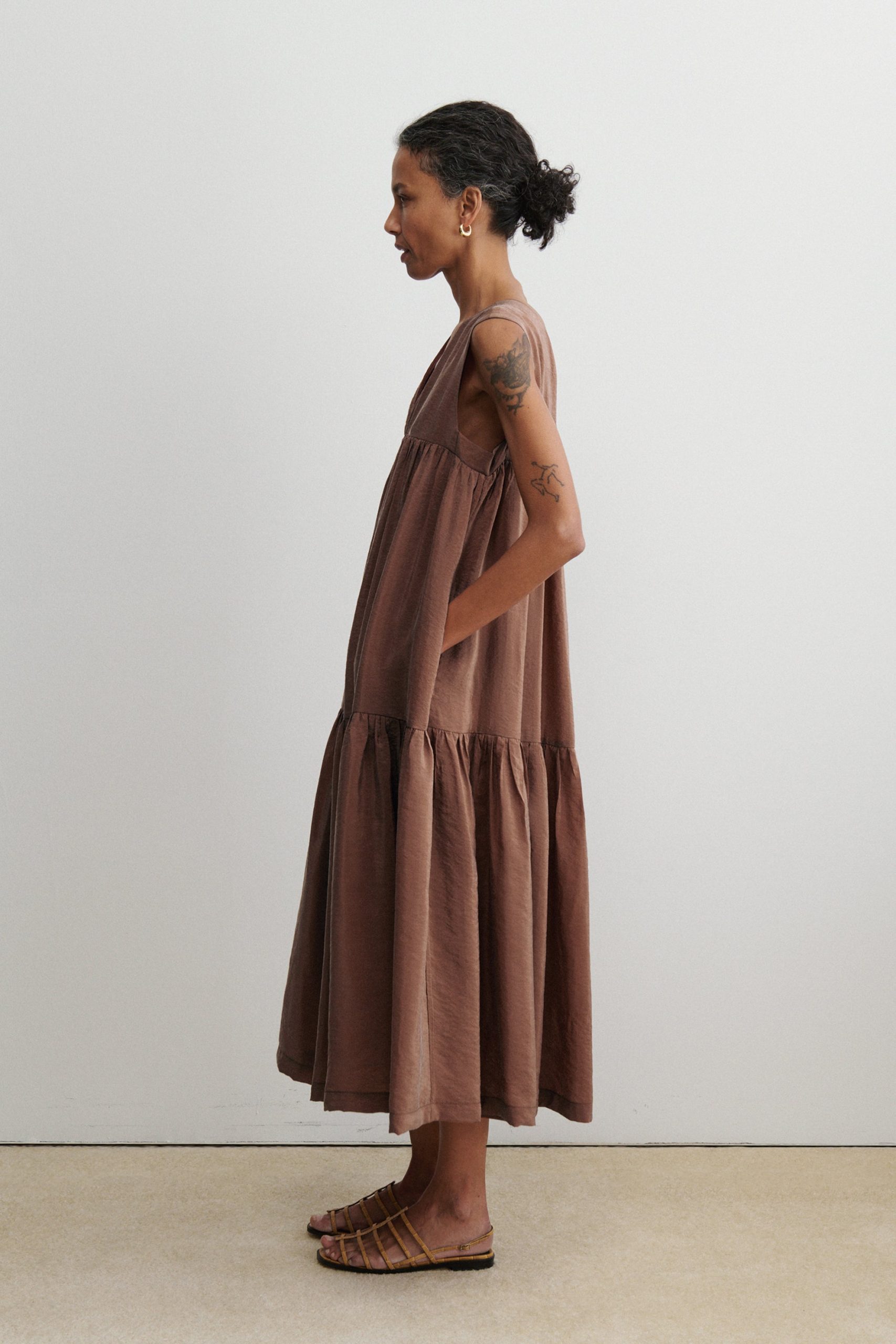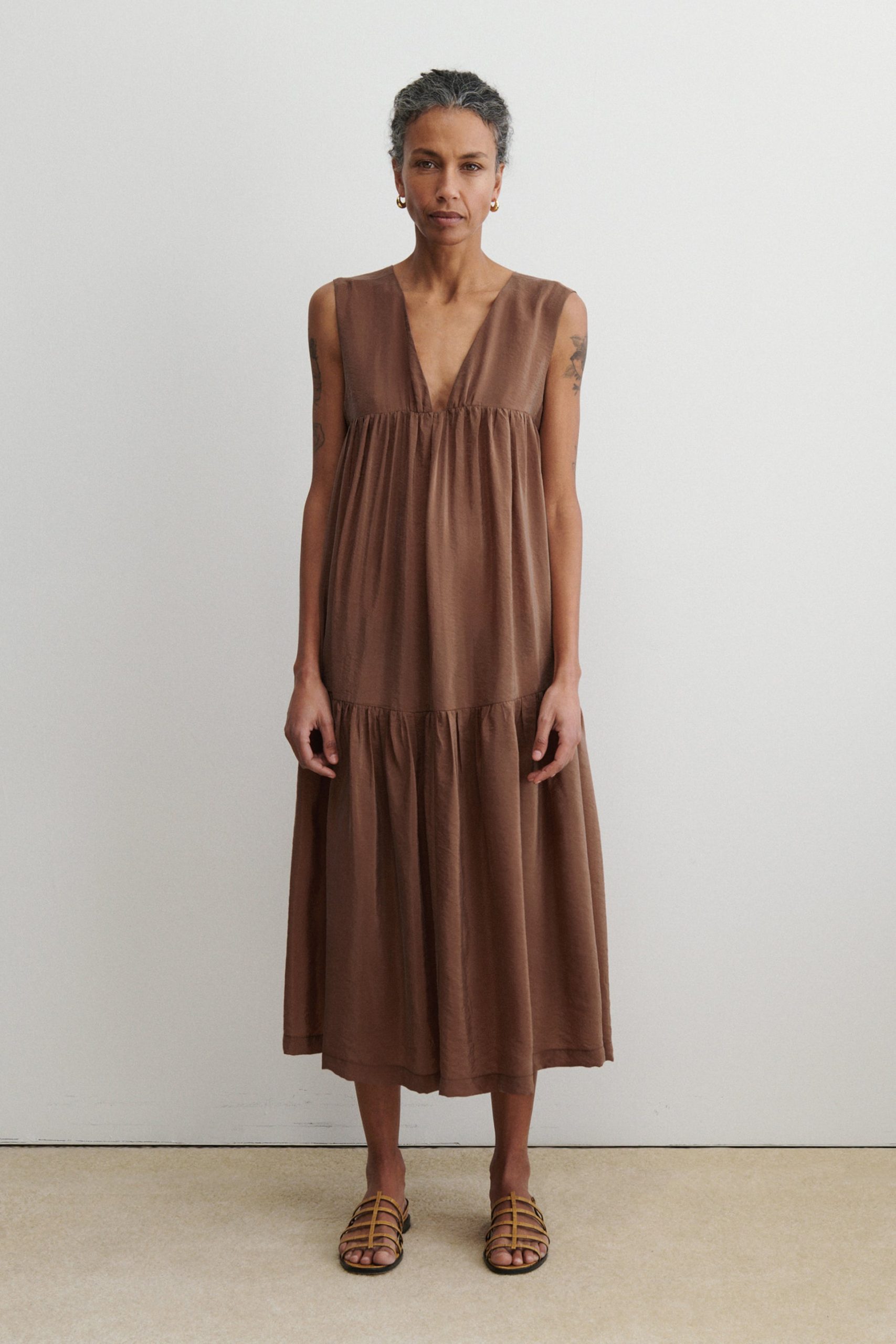 Voluminous V-neck tiered maxi dress in our lightweight, wrinkle-resistant Poppy cupro fabric.