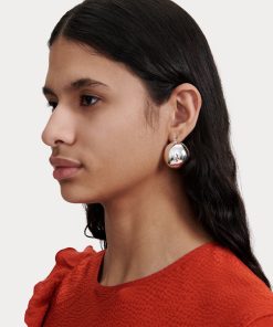 Mini hollow oblong hoop earrings with a hinged fastening for pierced ears. Sold as a pair.