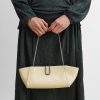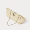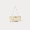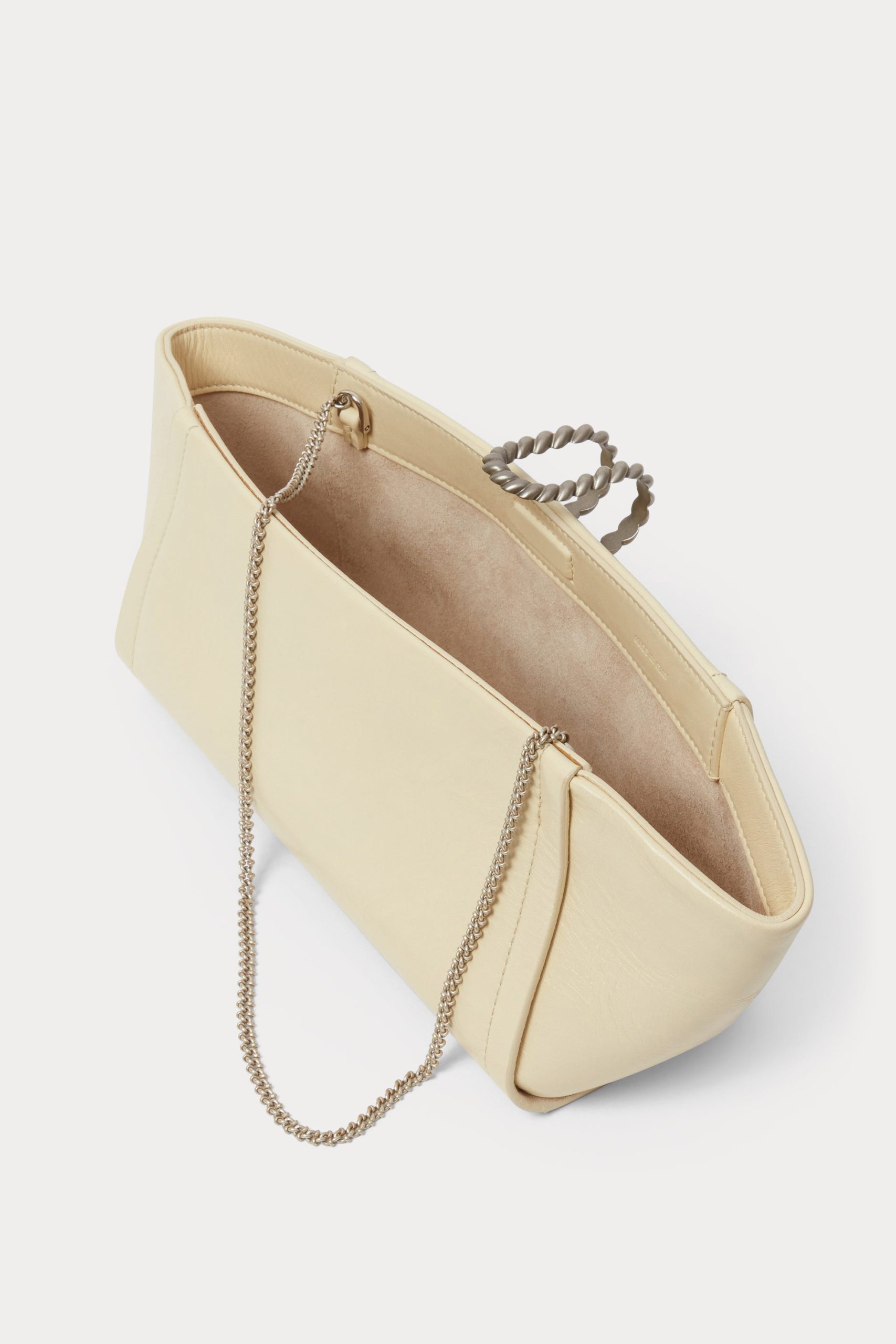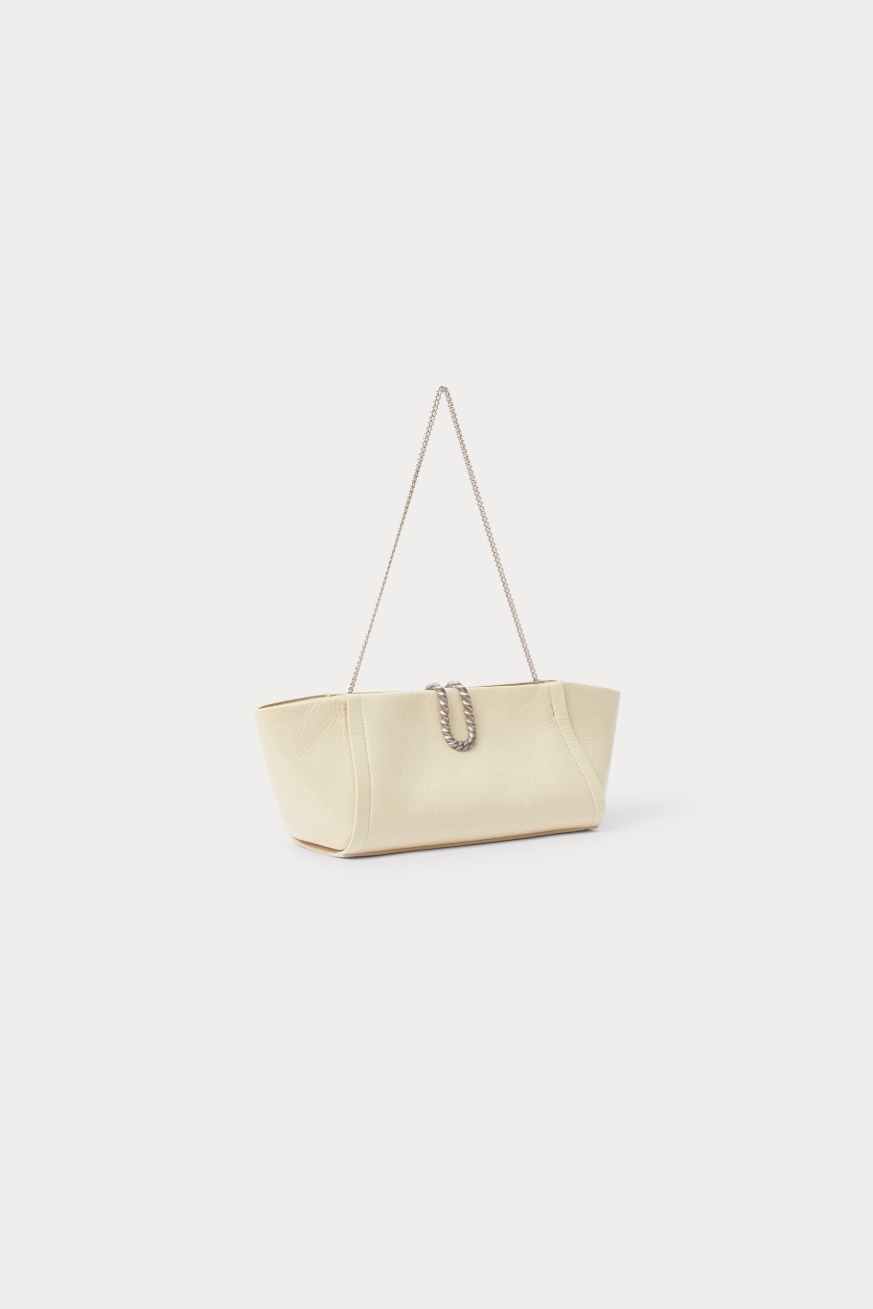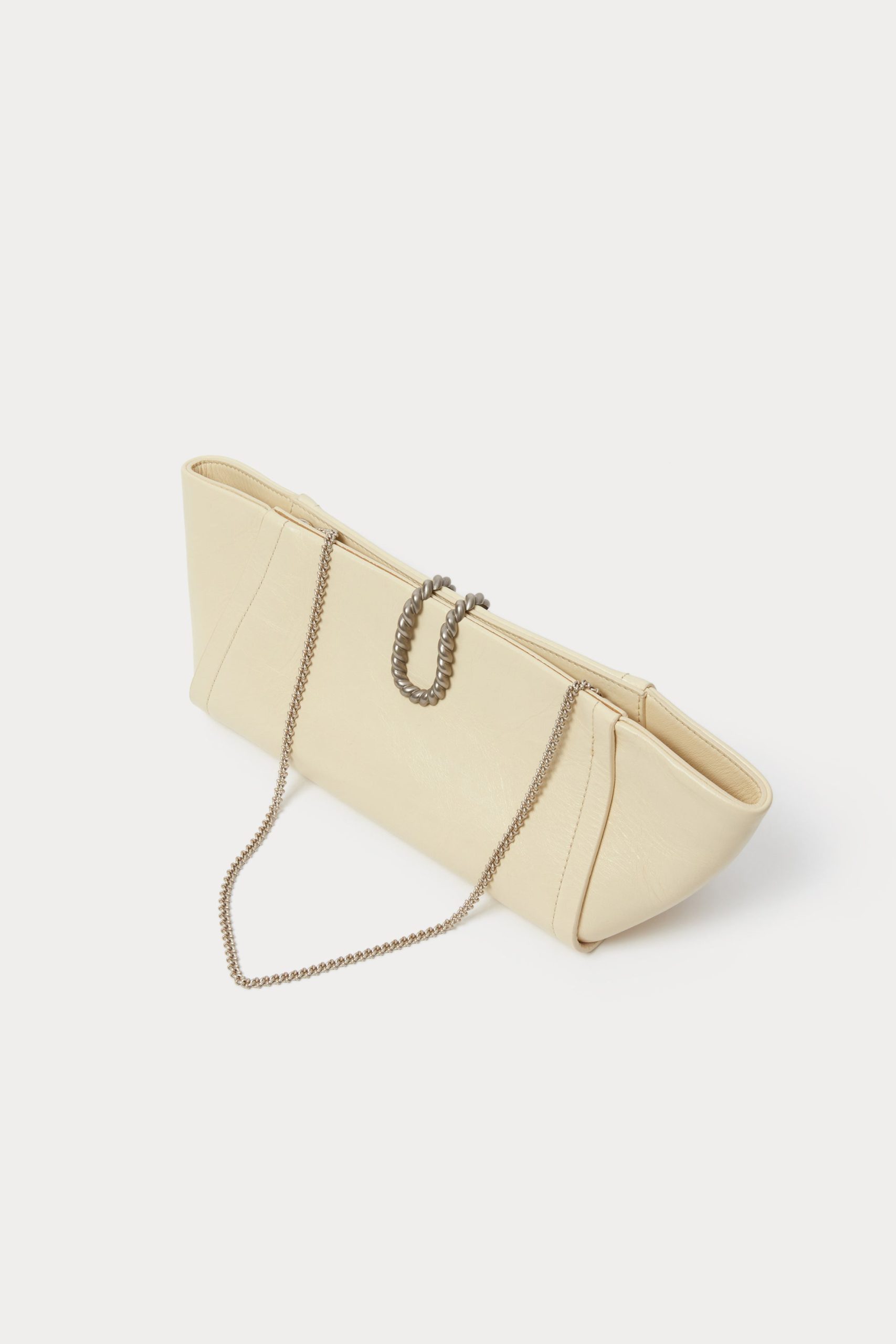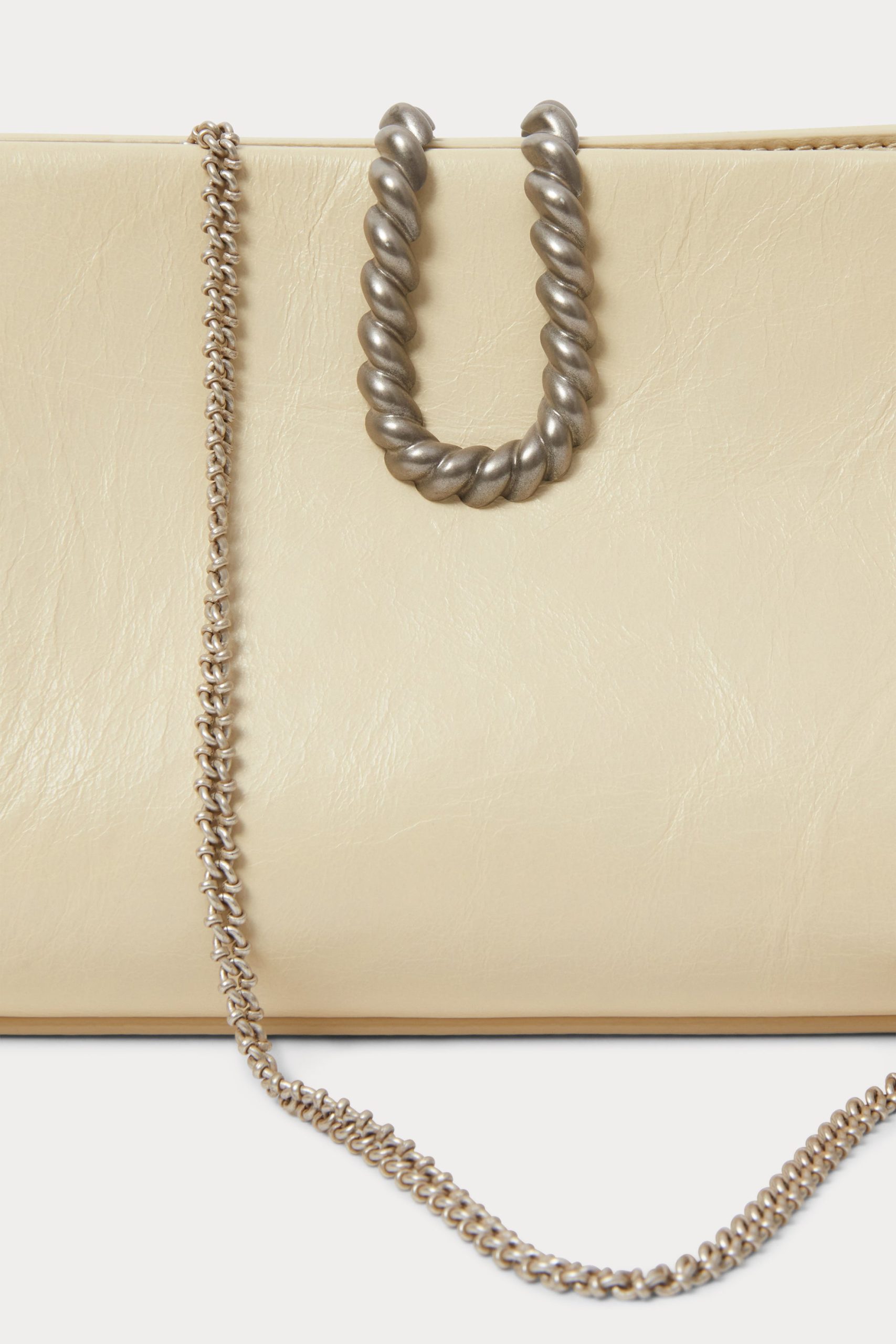 Structured rectangular bag with a twisted metal clasp and a single chain shoulder strap. Can be worn on the shoulder or under the arm like a baguette. The perfect evening bag.