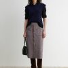 Pull on, high-waisted, A-line skirt with sporty snap buttons and patch pockets, in our smooth, polished Cria knit, which spins soft baby alpaca into a compact Milano stitch. The first few snaps are fixed to prevent gaping. Pairs with the matching Abe Jacket.