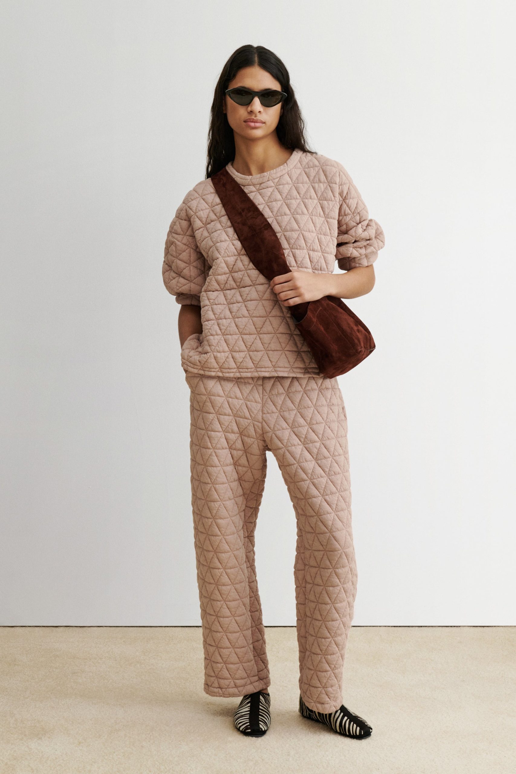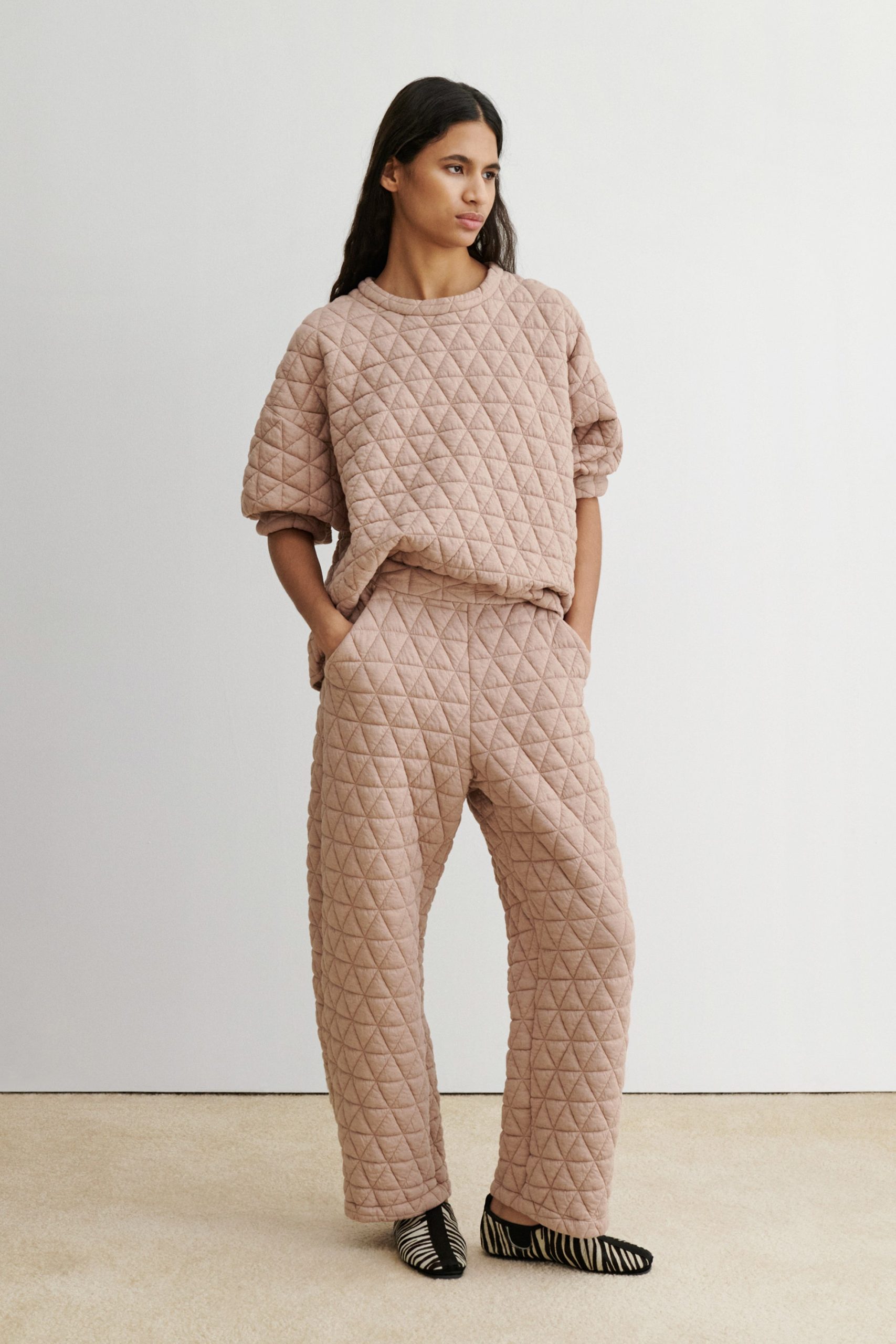High-waist elevated sweatpant with curved slip pockets in Diamond Quilted Jersey. Pair with our matching Alfond Top for an elevated sweatsuit, or with a blazer for a more refined look.