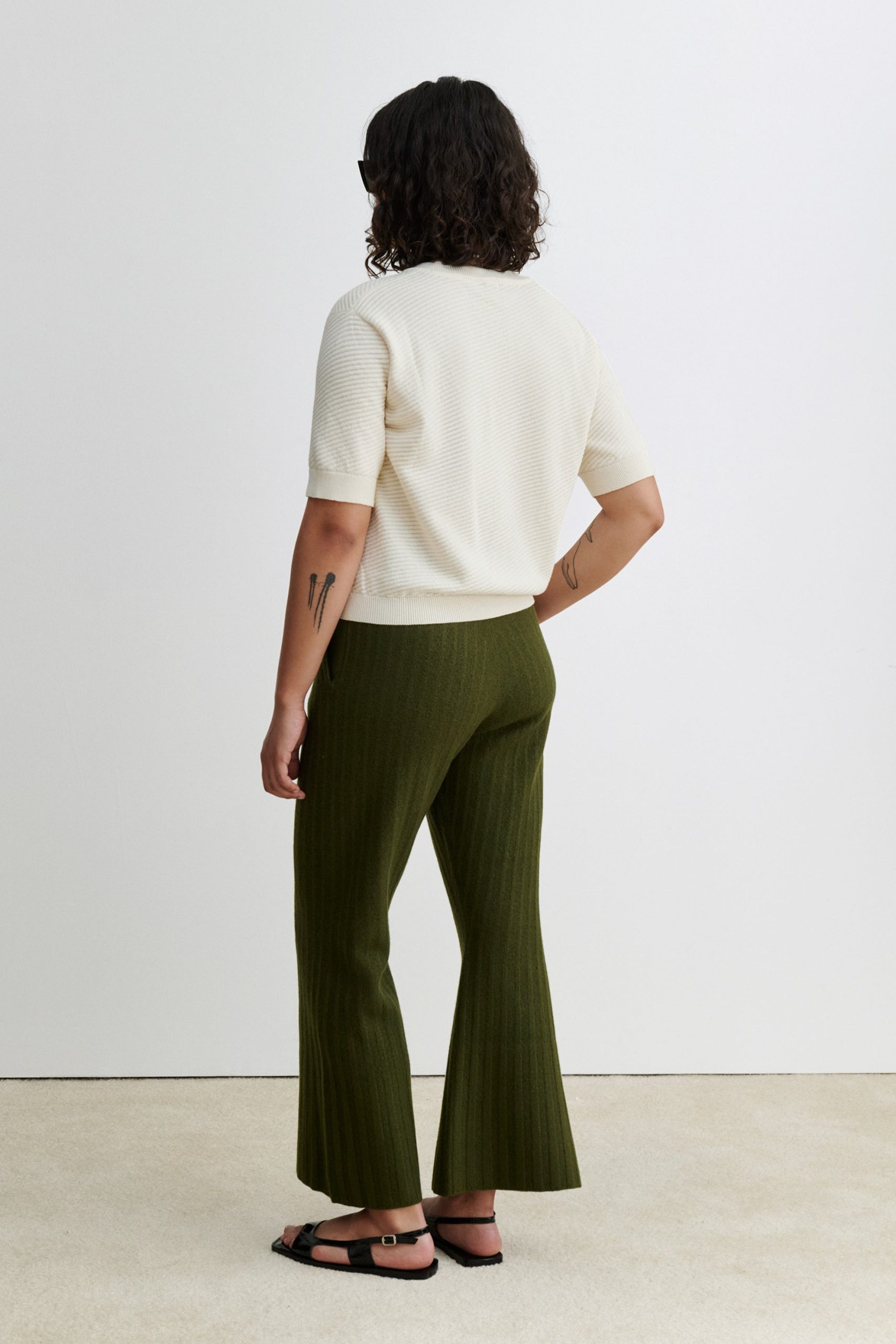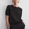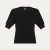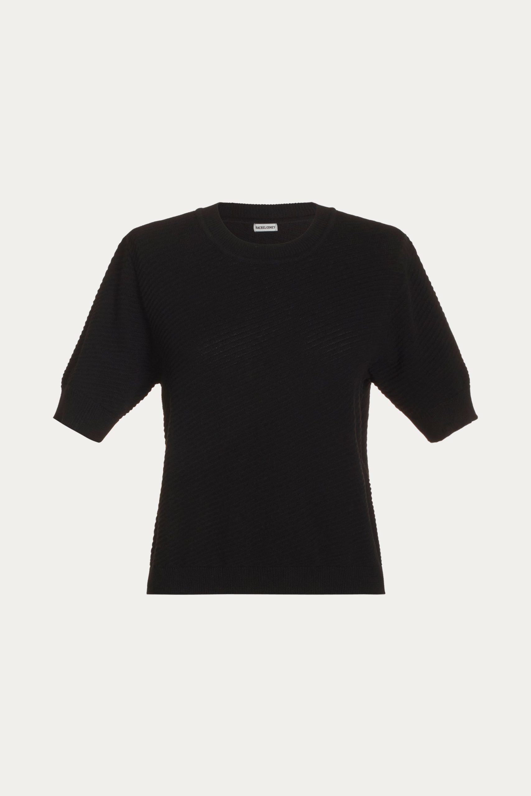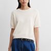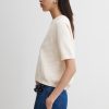 Short-sleeved cotton knit top with a crew neckline and ribbed cuffs. Features a relaxed fit with a subtle textured pattern. Designed for effortless styling, the cropped Calibra Top pairs easily with any high-waisted bottom in your wardrobe.