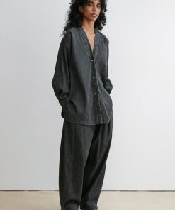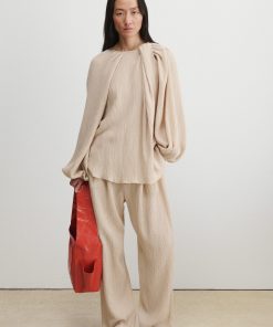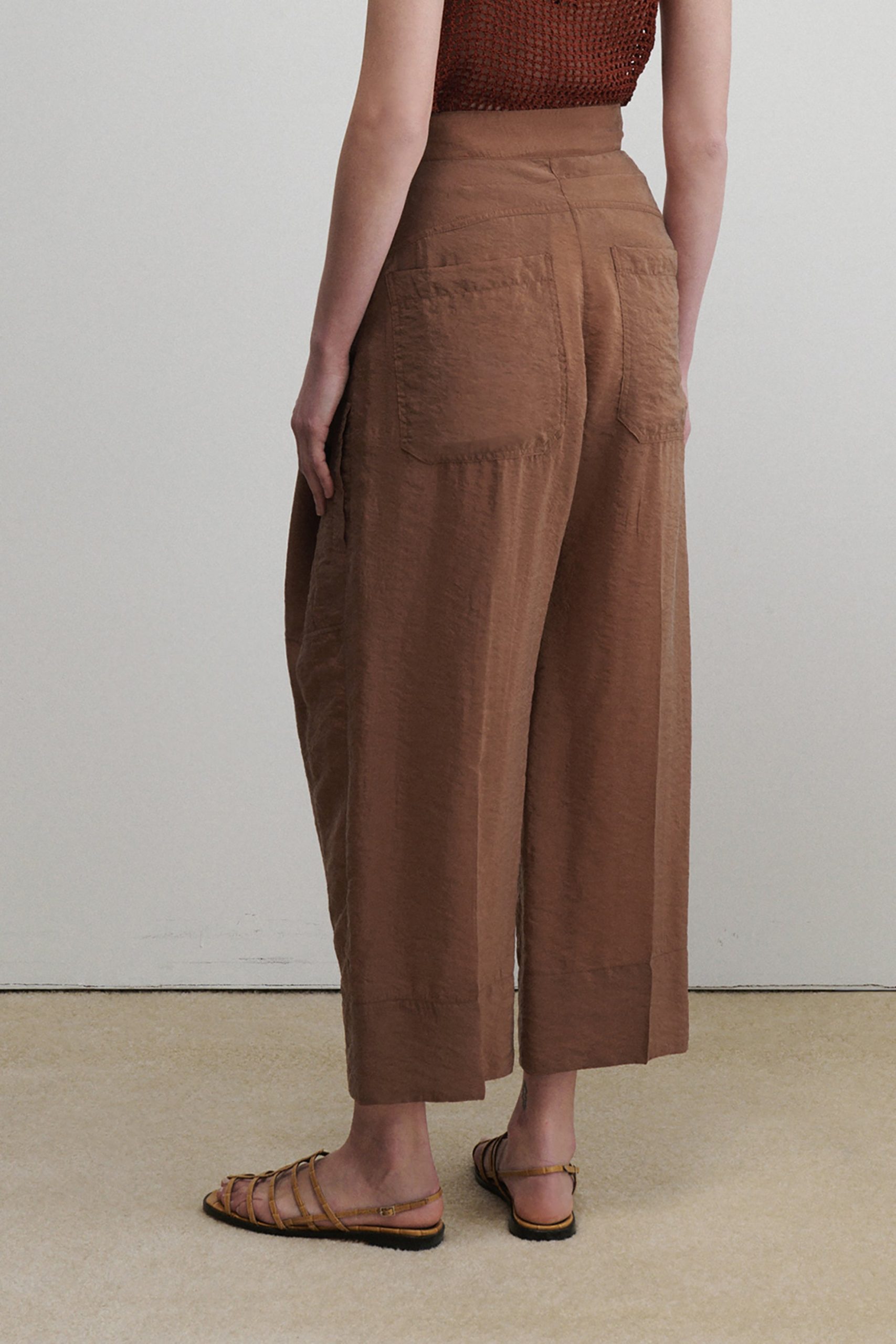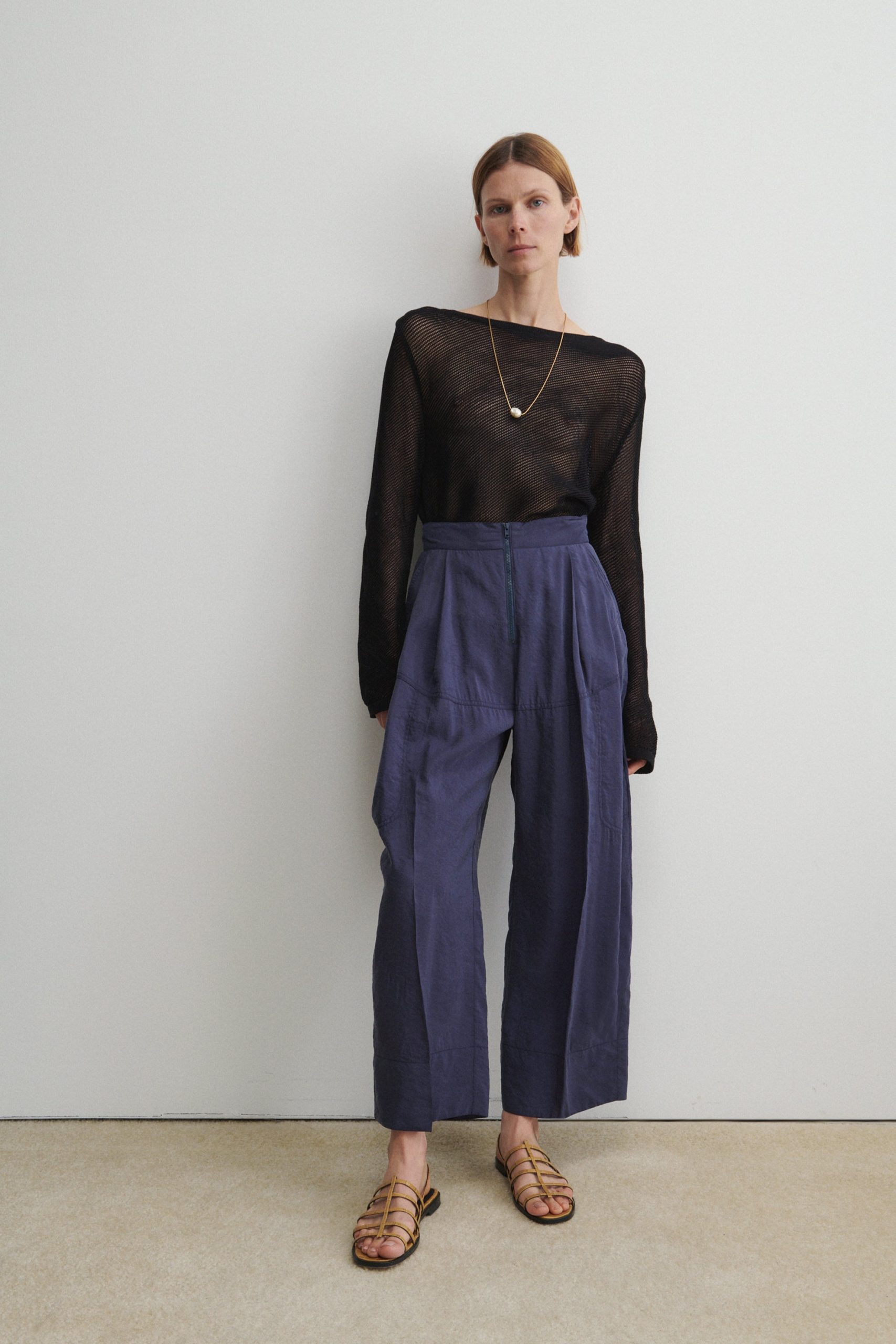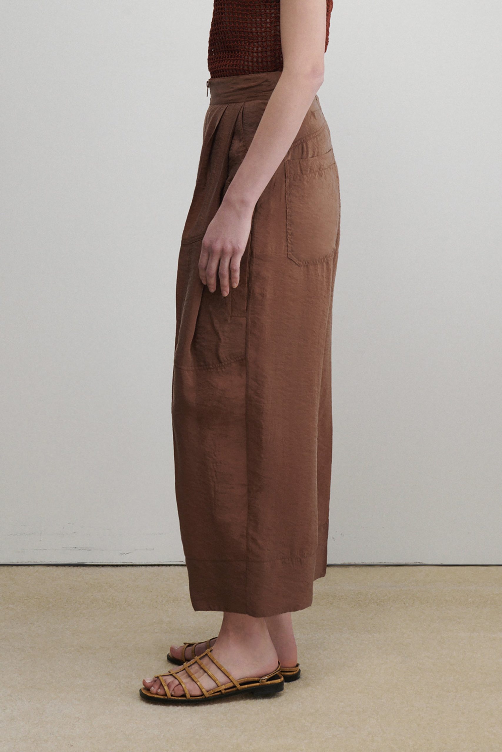 Pleated high-waist pant with exposed tonal zipper, in our lightweight, wrinkle-resistant Poppy cupro fabric, with a crisp hand feel and soft pebble texture–perfect for packing. Wear with the matching Kilo Trench for a coordinated look.