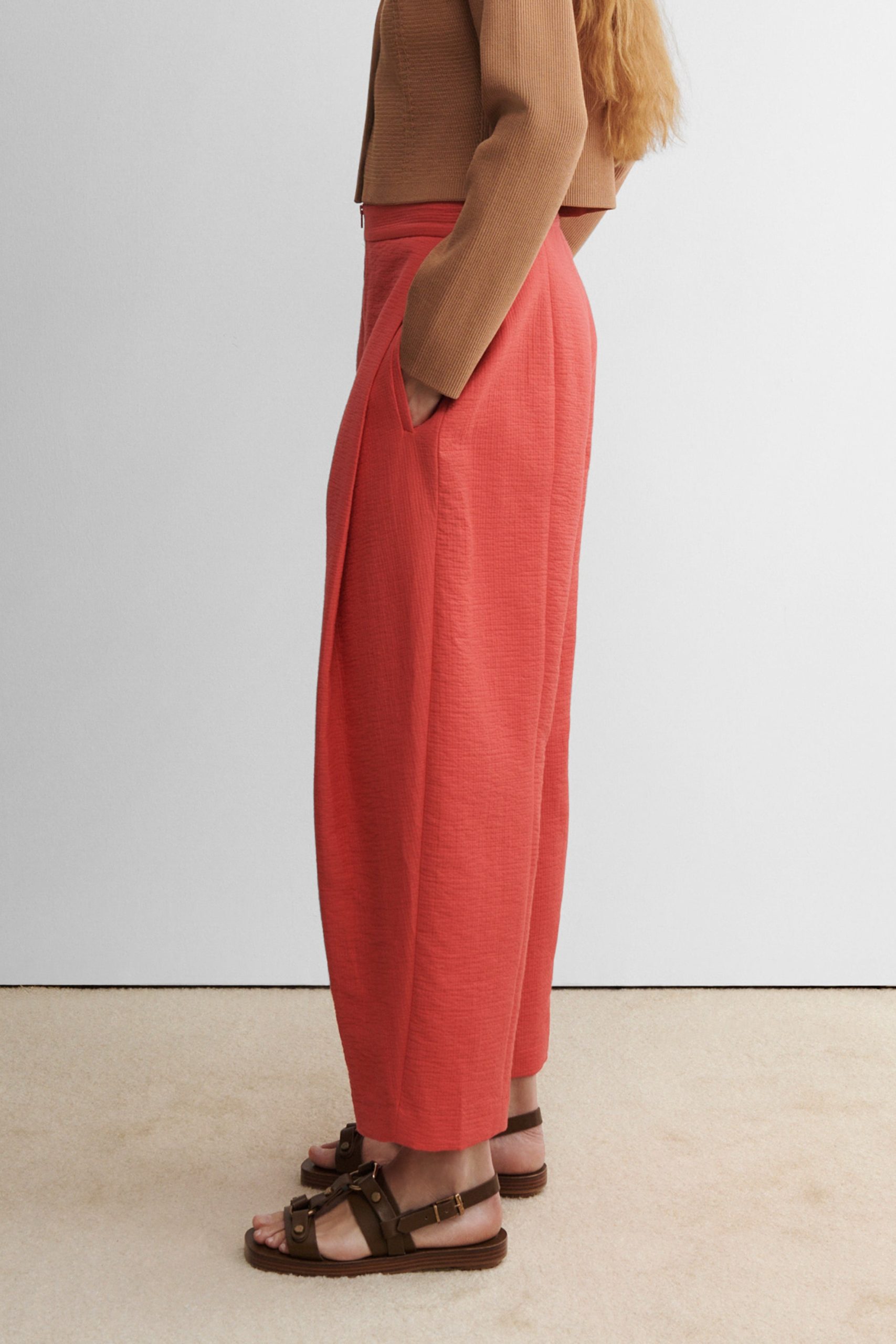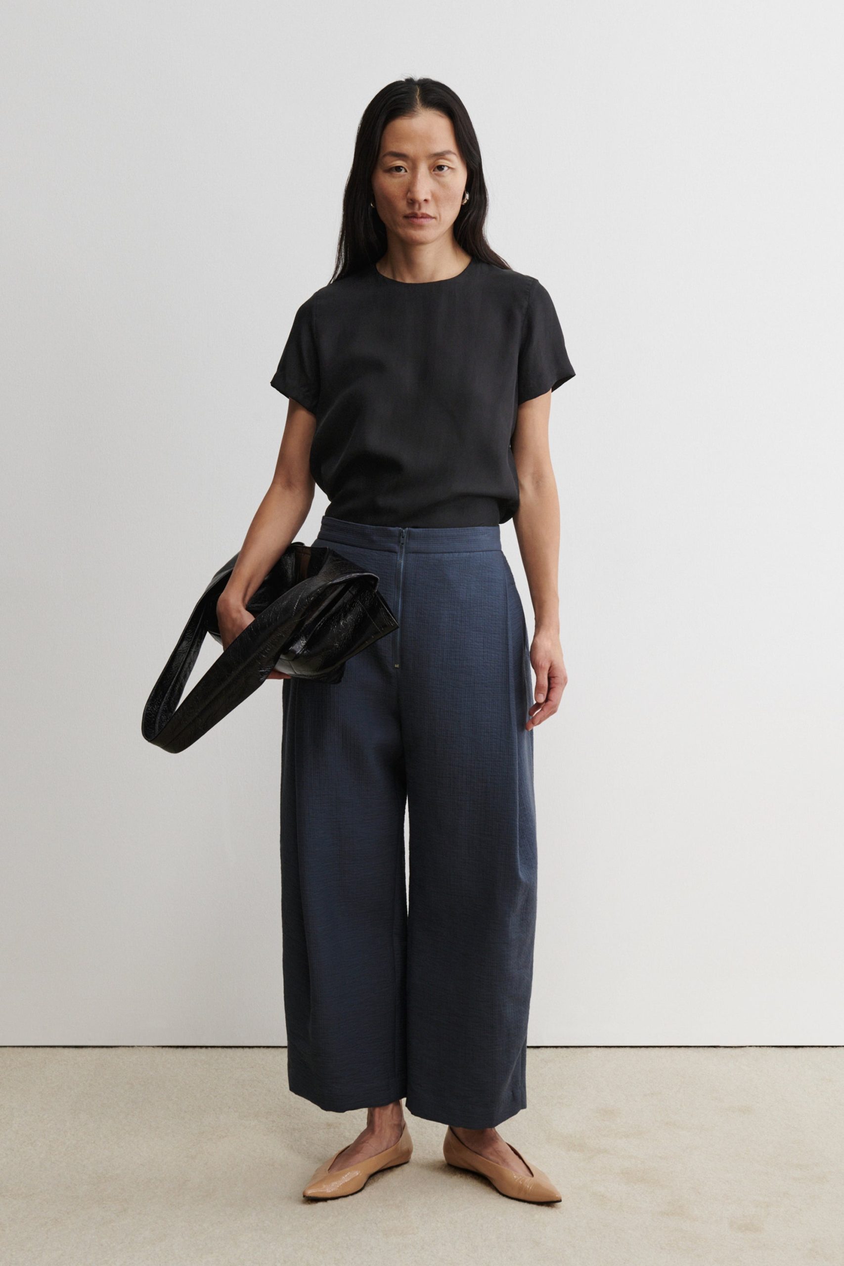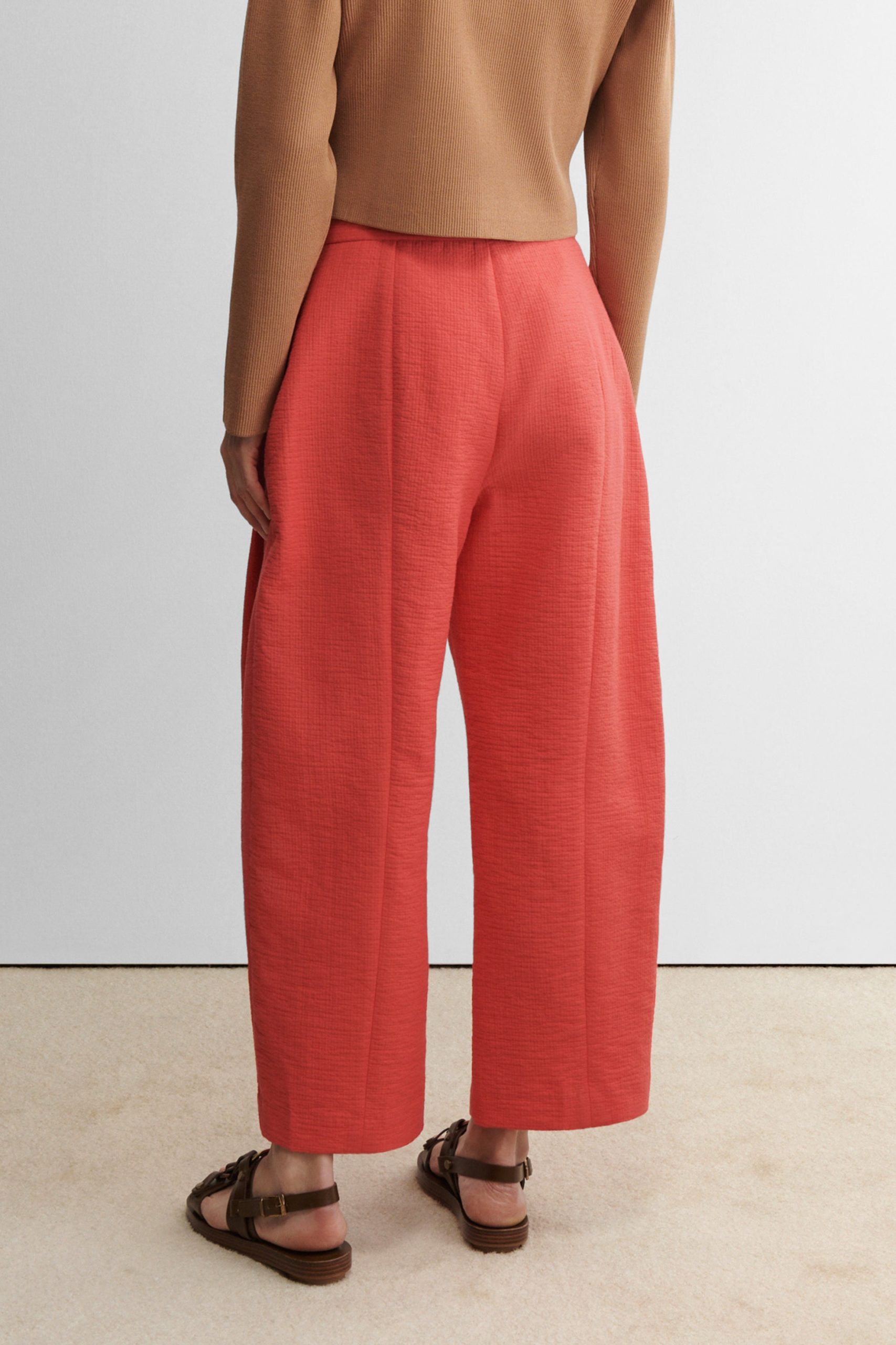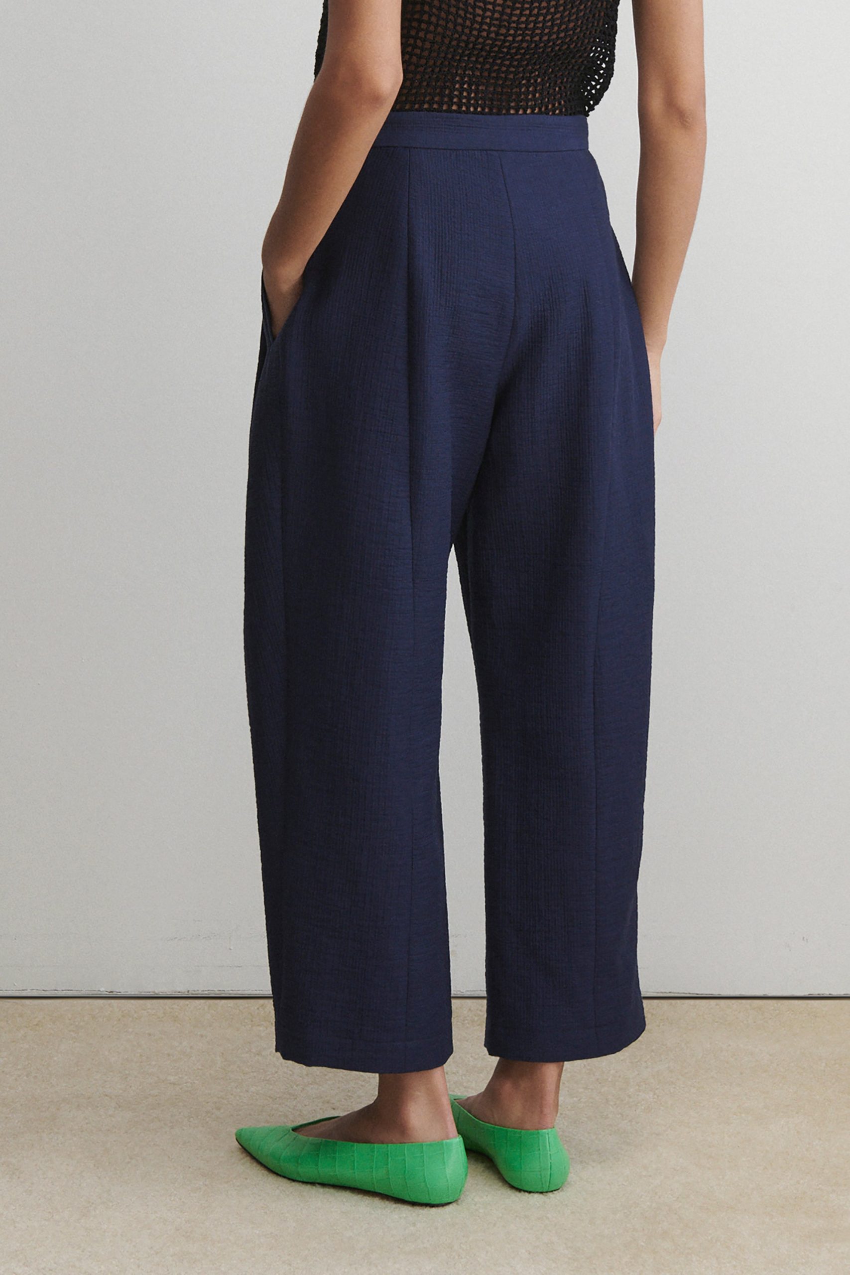 Cropped, pleat-front pants with an exposed tonal zipper in our signature Italian Foam jacquard. The soft cocoon shape creates a feminine, hourglass silhouette. Pair with our matching Fenix Jacket.