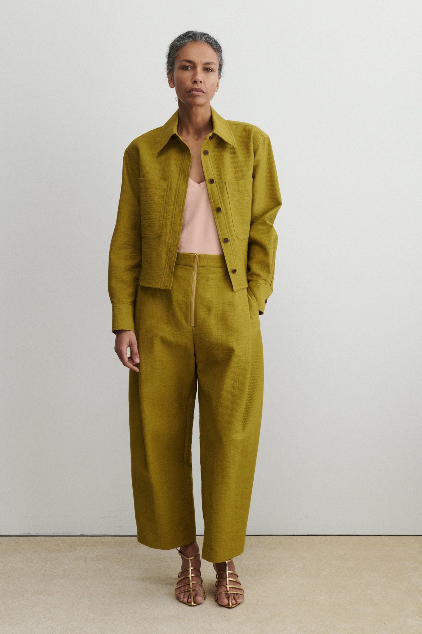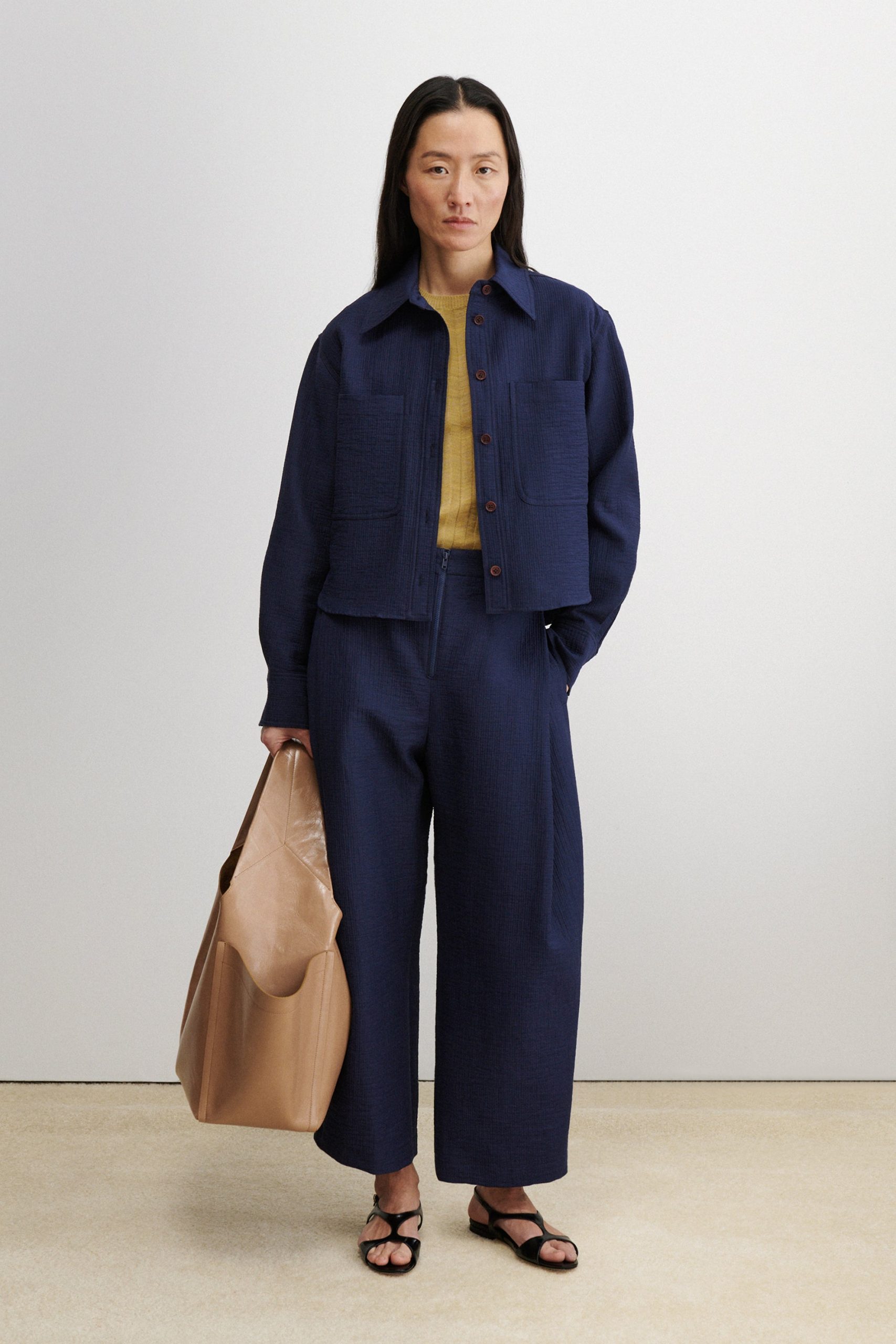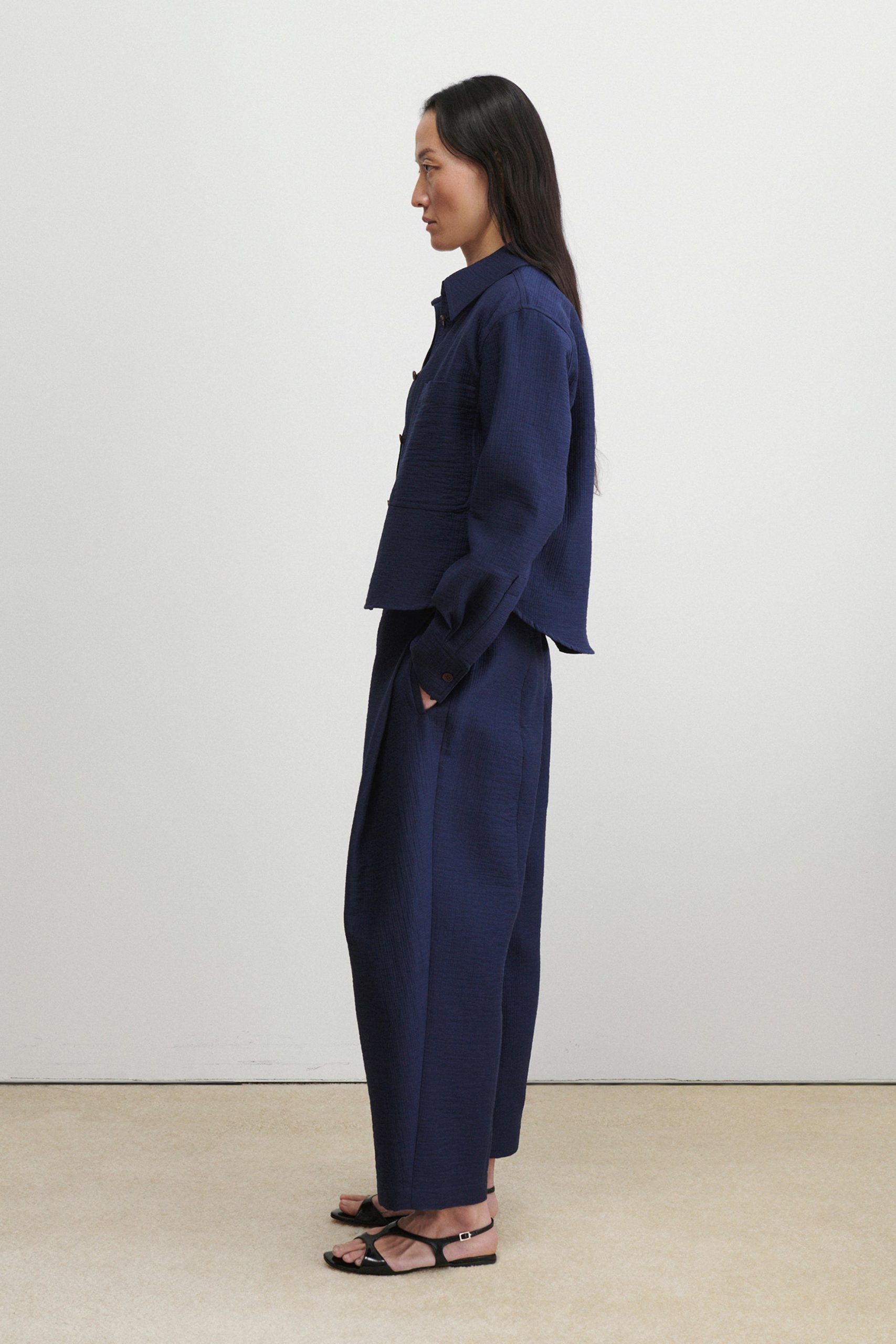 Short workwear-inspired shirt jacket with clean doubleface construction, cut from our signature Foam cotton. Lightweight yet warm. Looks great with the matching Dixon Culotte.