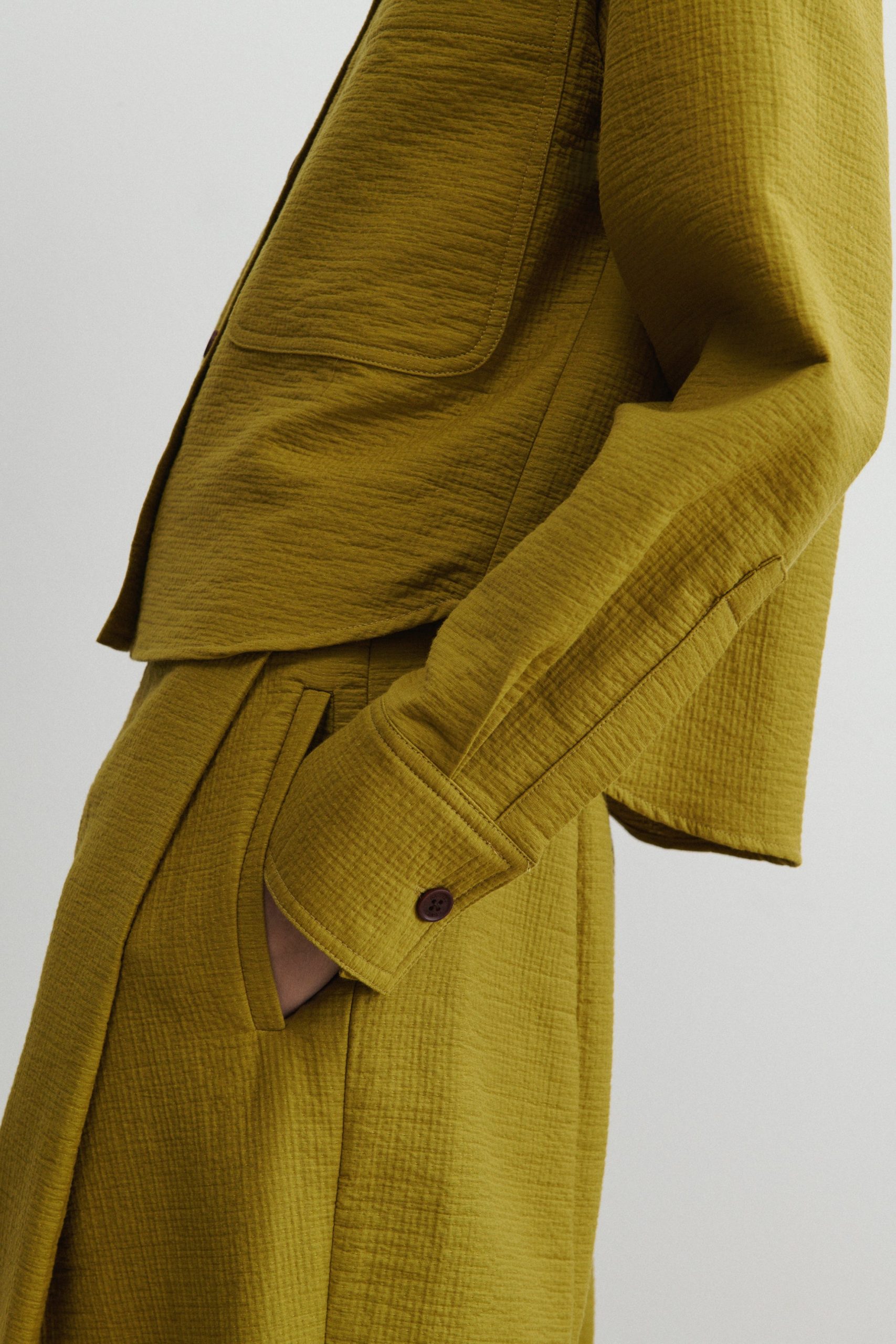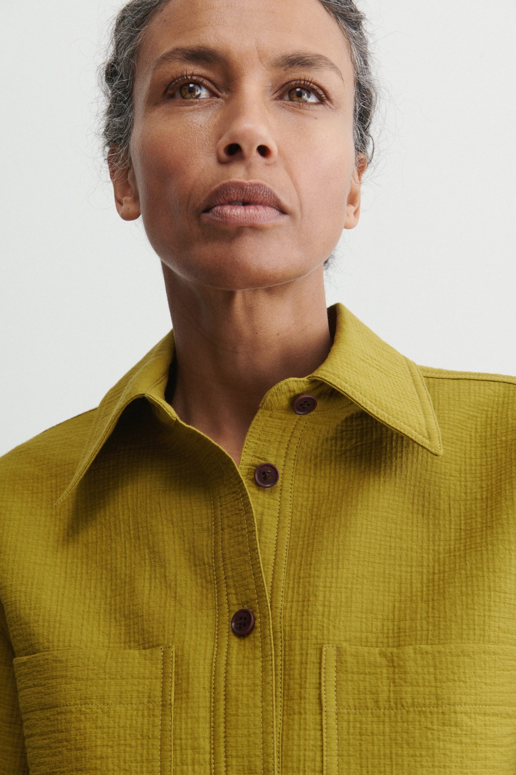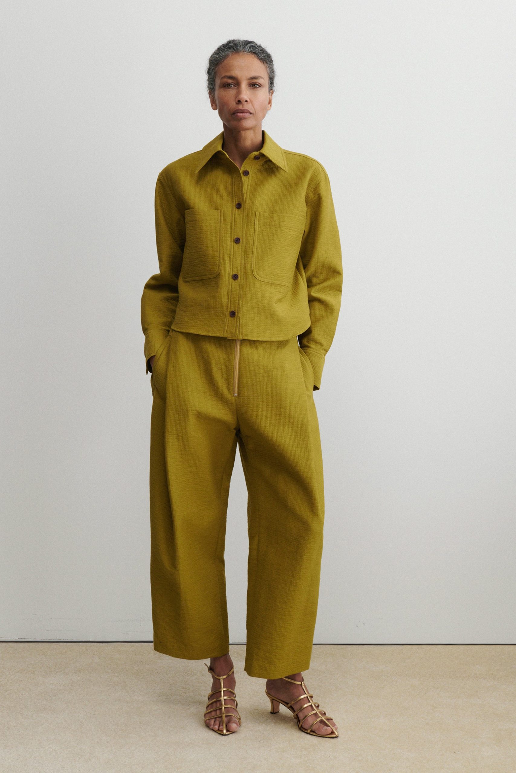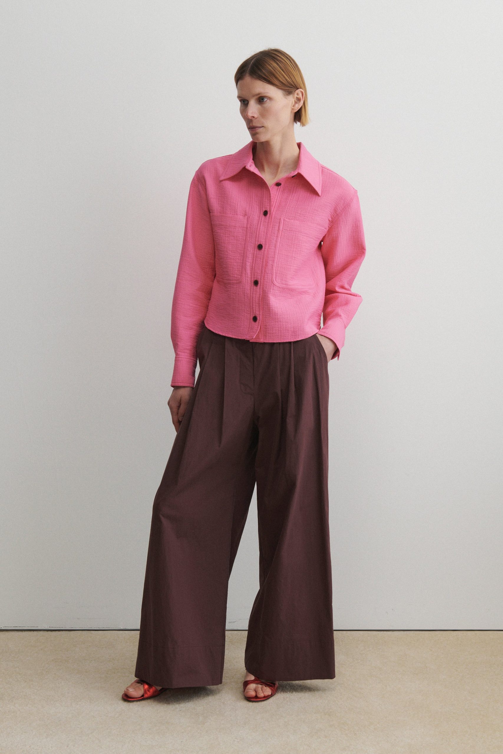 Short workwear-inspired shirt jacket with clean doubleface construction, cut from our signature Foam cotton. Lightweight yet warm. Looks great with the matching Dixon Culotte.