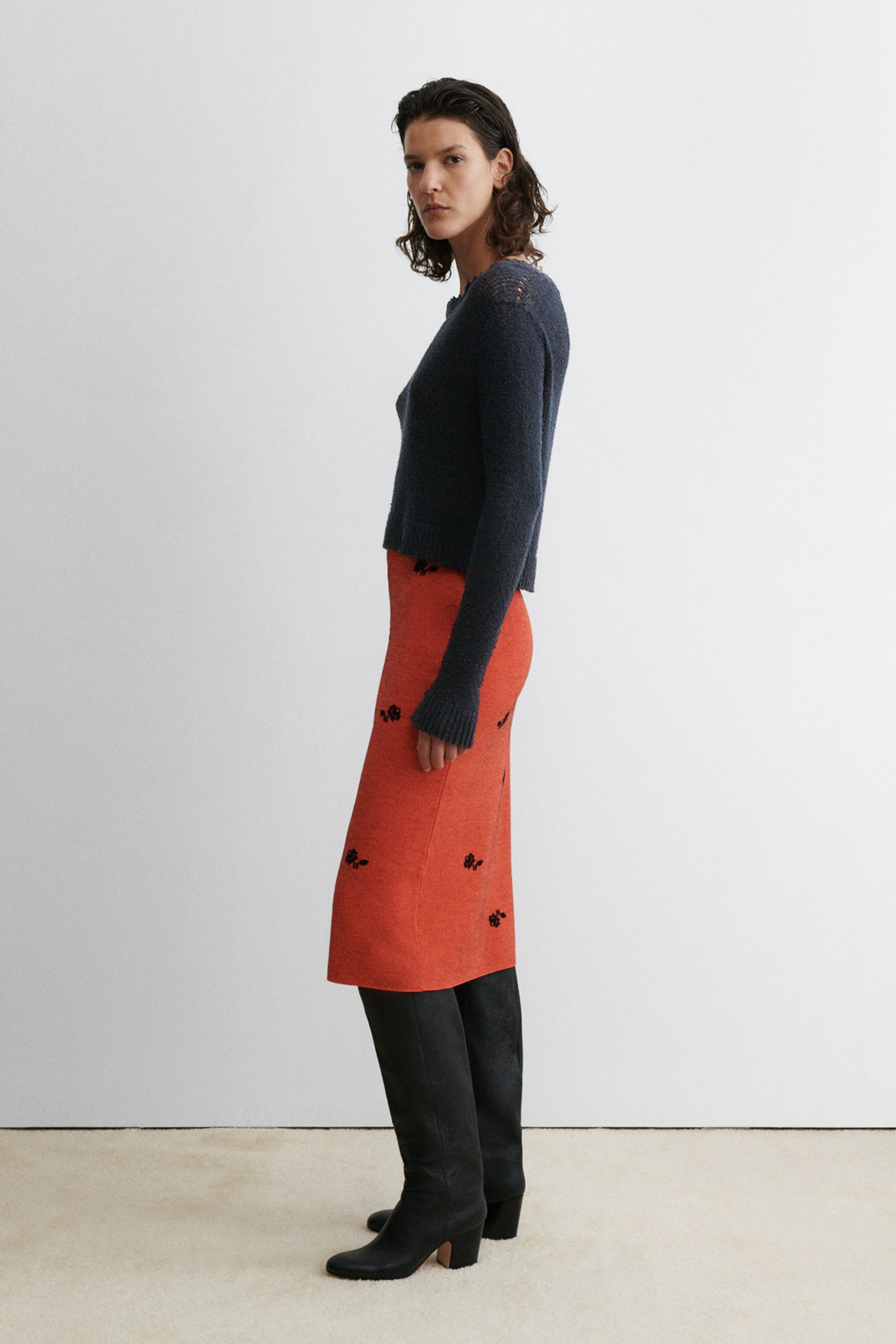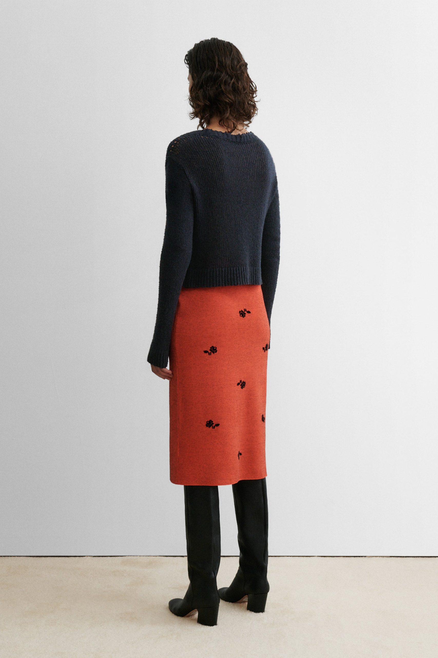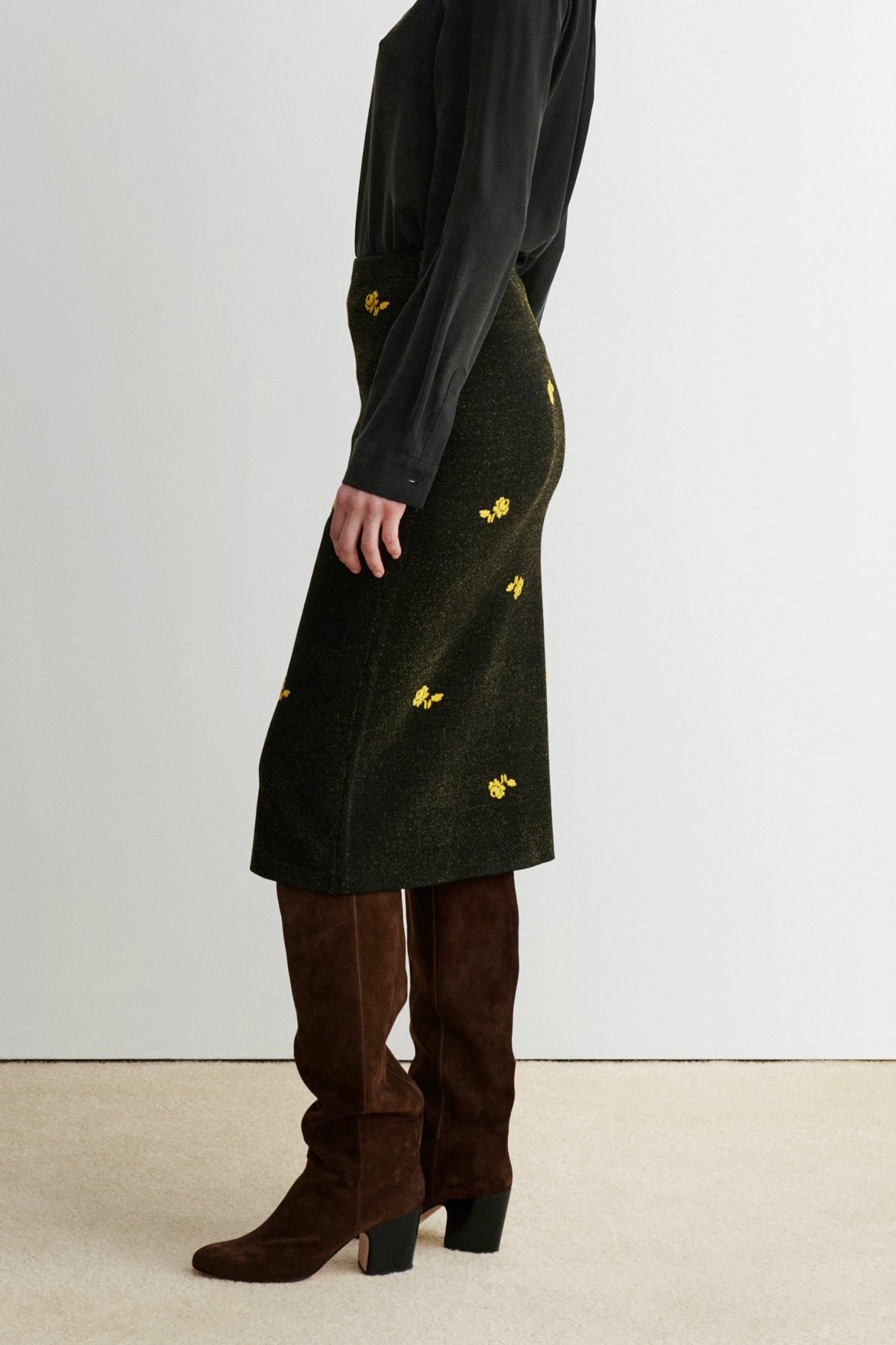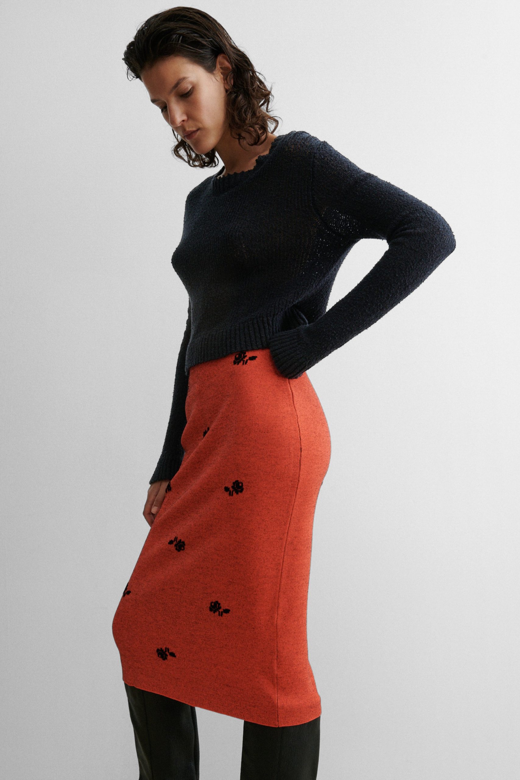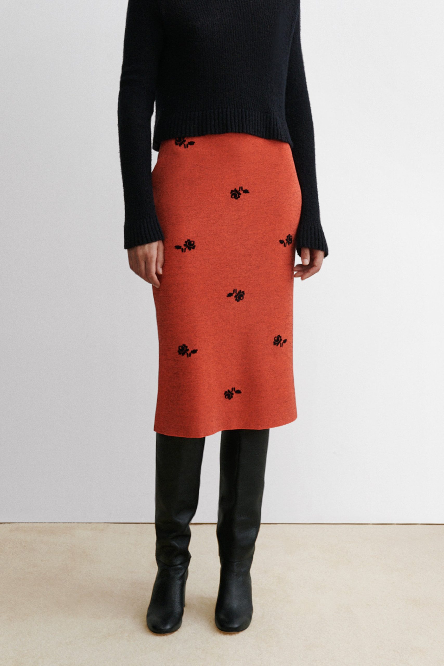 High-waisted skirt in a soft floral chenille jacquard. Style with our matching Rayney Top for a playful set.