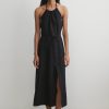 Halter maxi dress cut from heavier-weight linen fabric for a more structured shape. Features an alluring low-cut back and an adjustable drawstring closure at the waist.