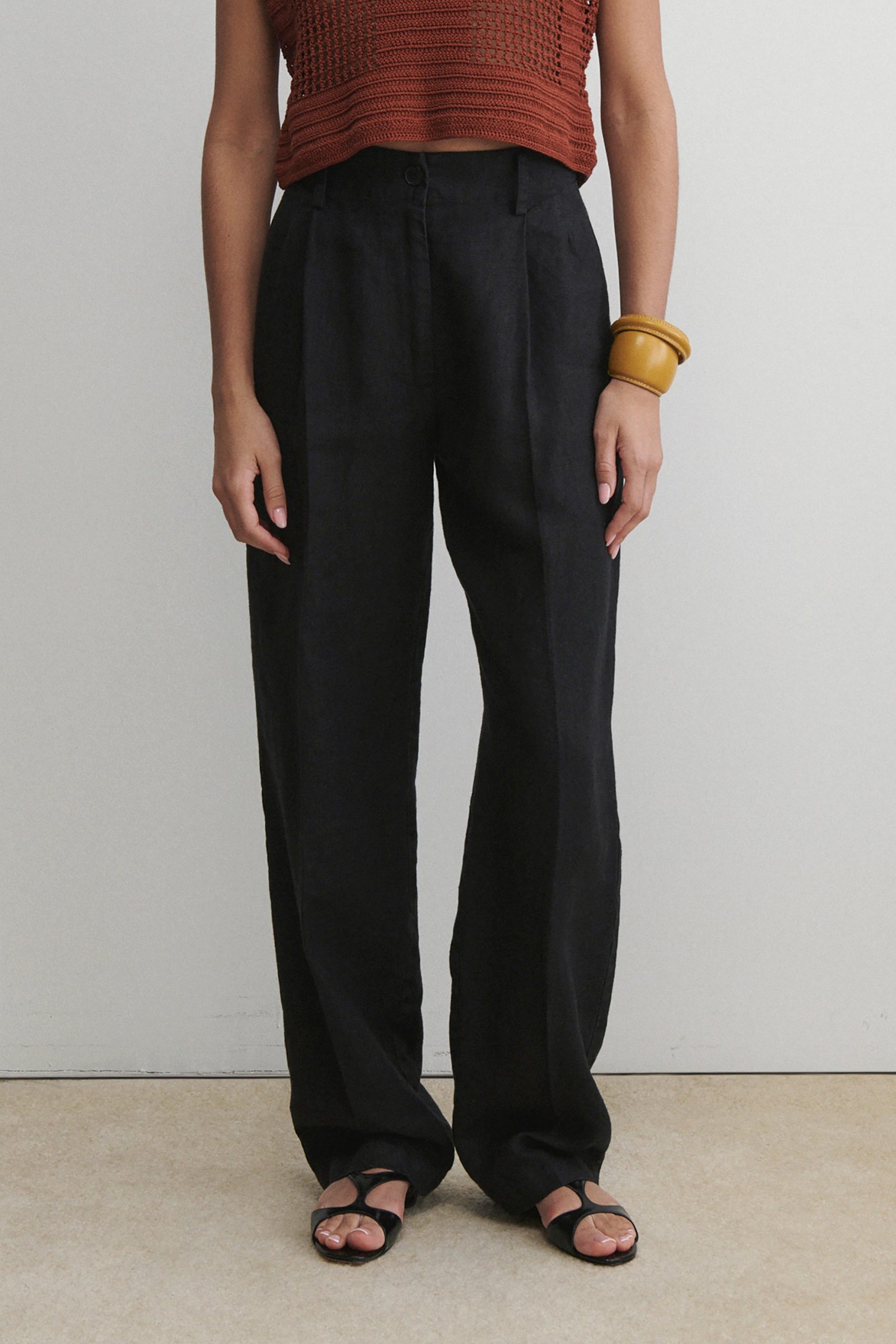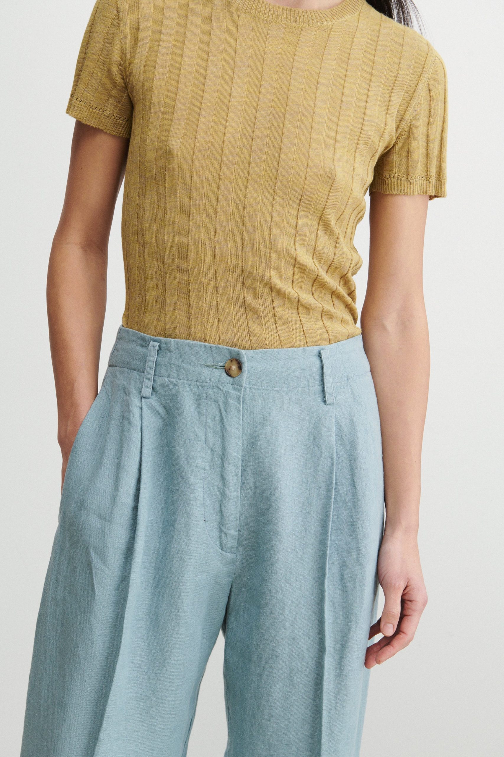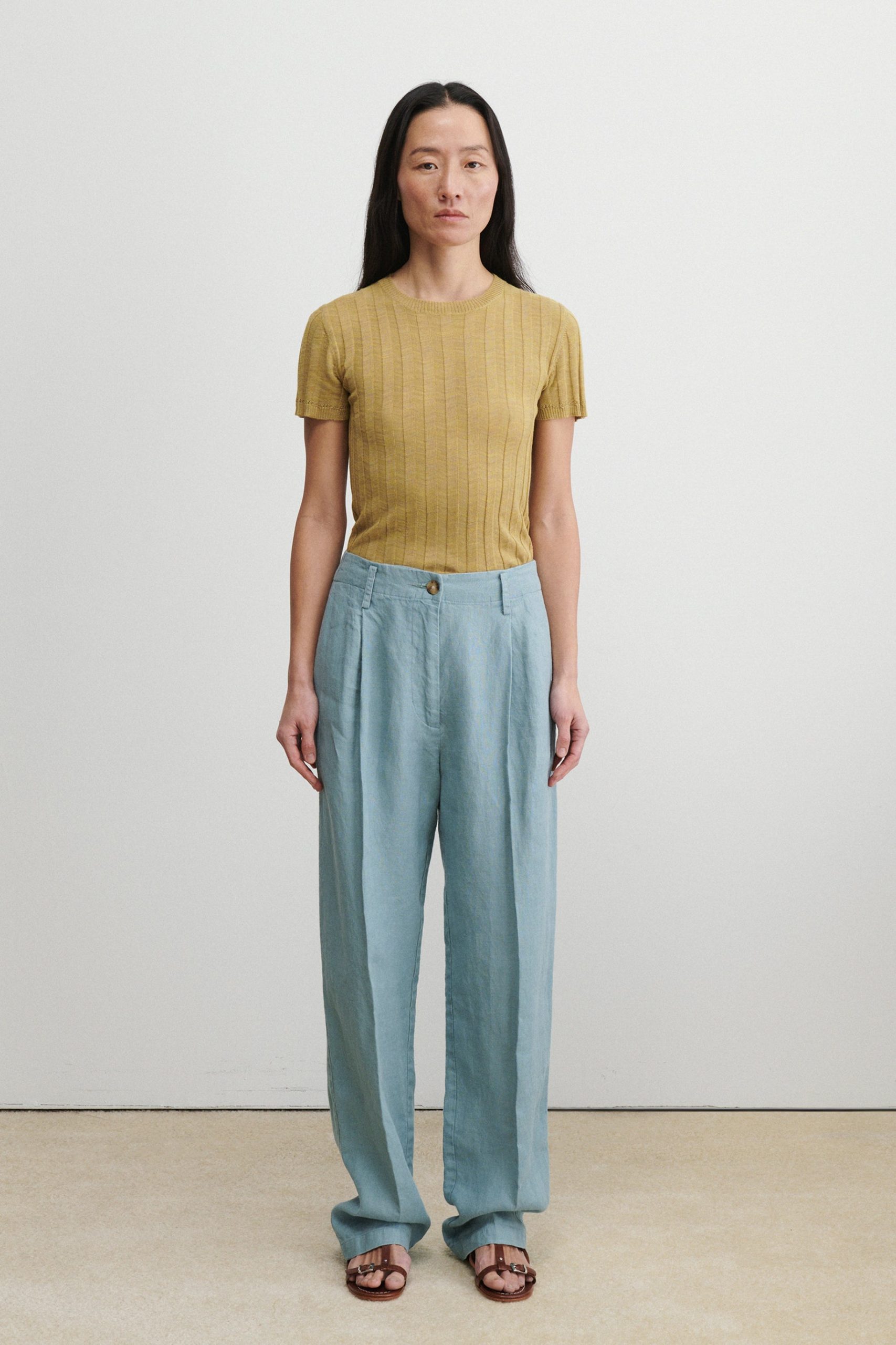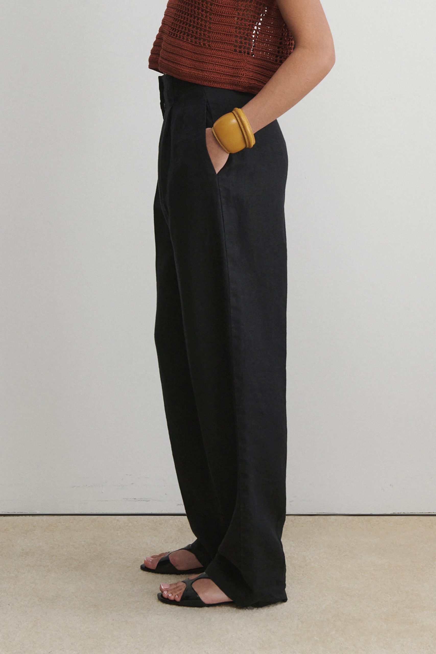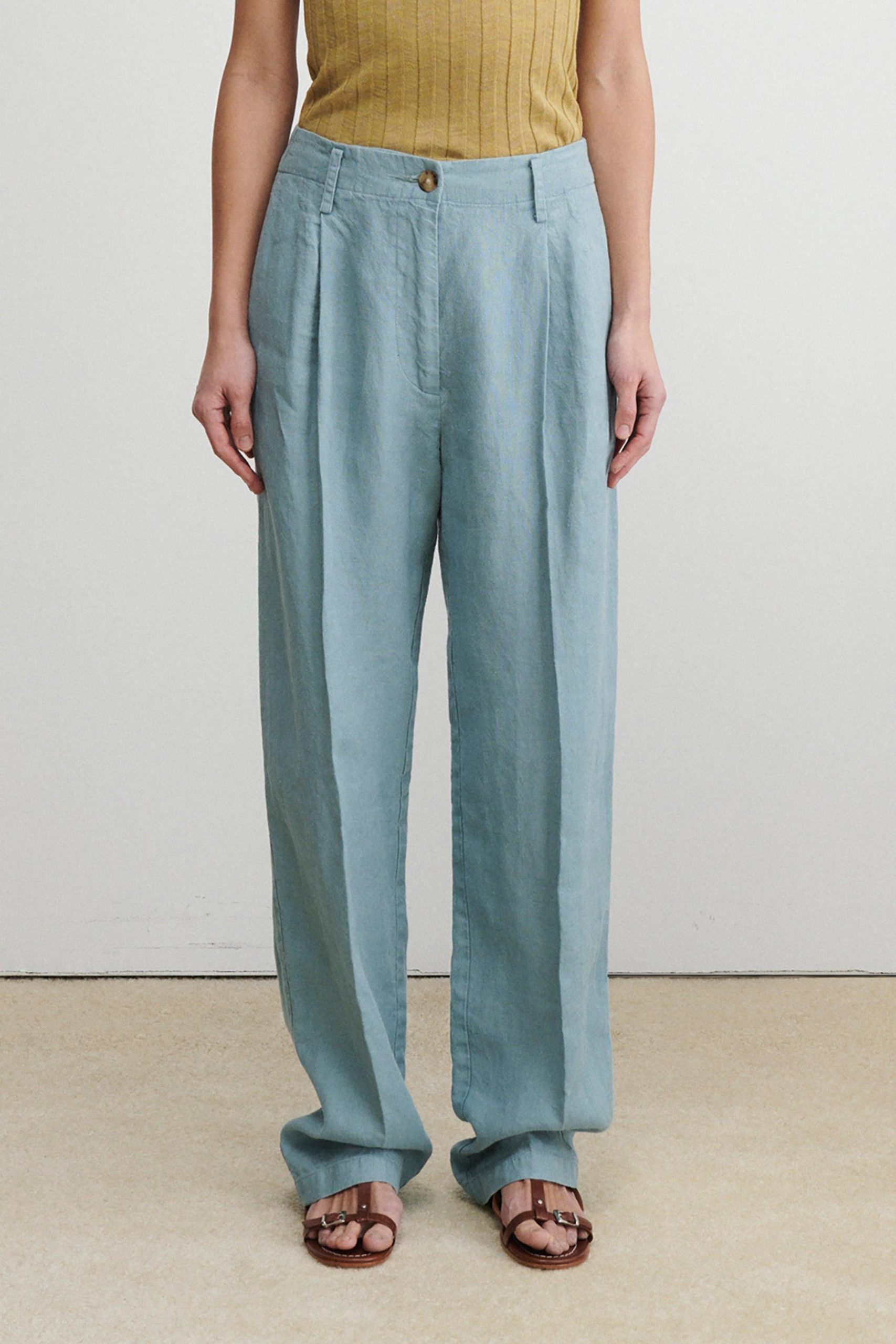 This loose, tapered trouser with a subtle front pleat is an update on our Belhurst Pant with no waistband, cut in breathable hemp fabric. Wear with the matching Bromley Blazer to create a suit.