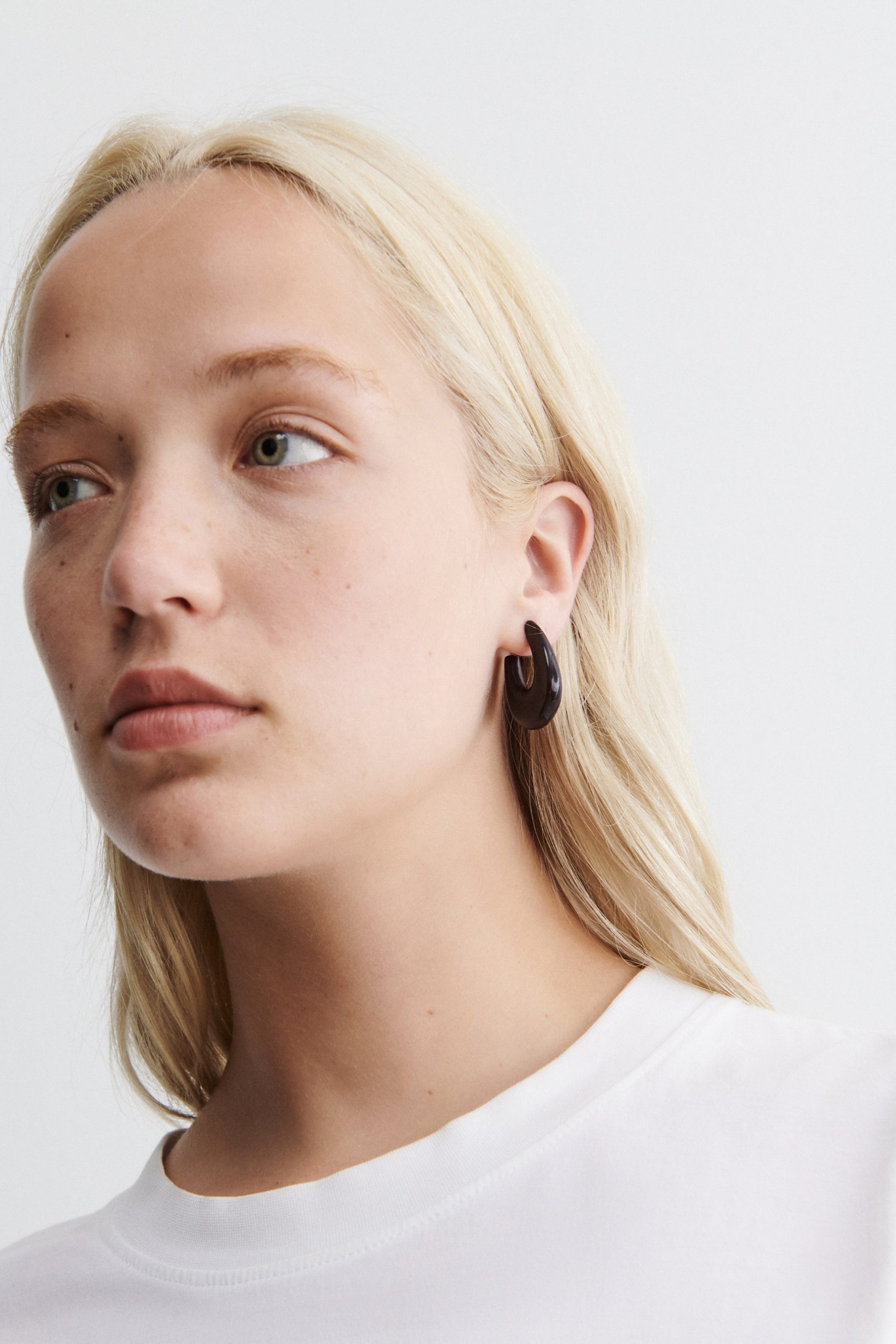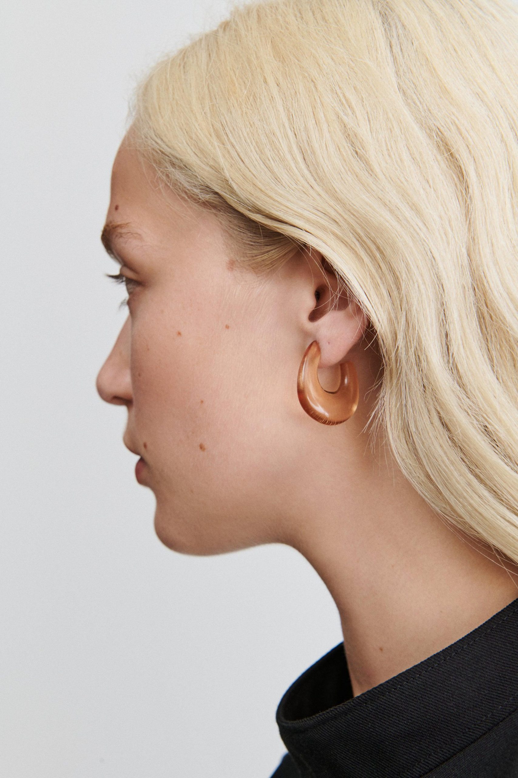 Mini chunky acrylic hoop earrings with hinged fastening for pierced ears. Sold as a pair.