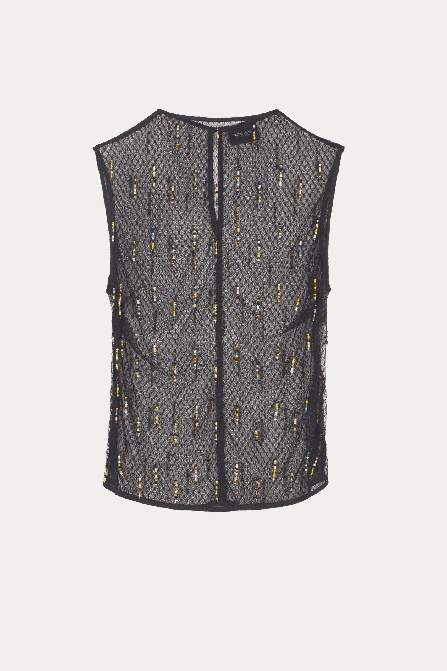 Sleeveless boatneck top crafted from a bead-embellished mesh. Pair with our matching Dorling Skirt for a beautiful set for a special occasion.