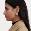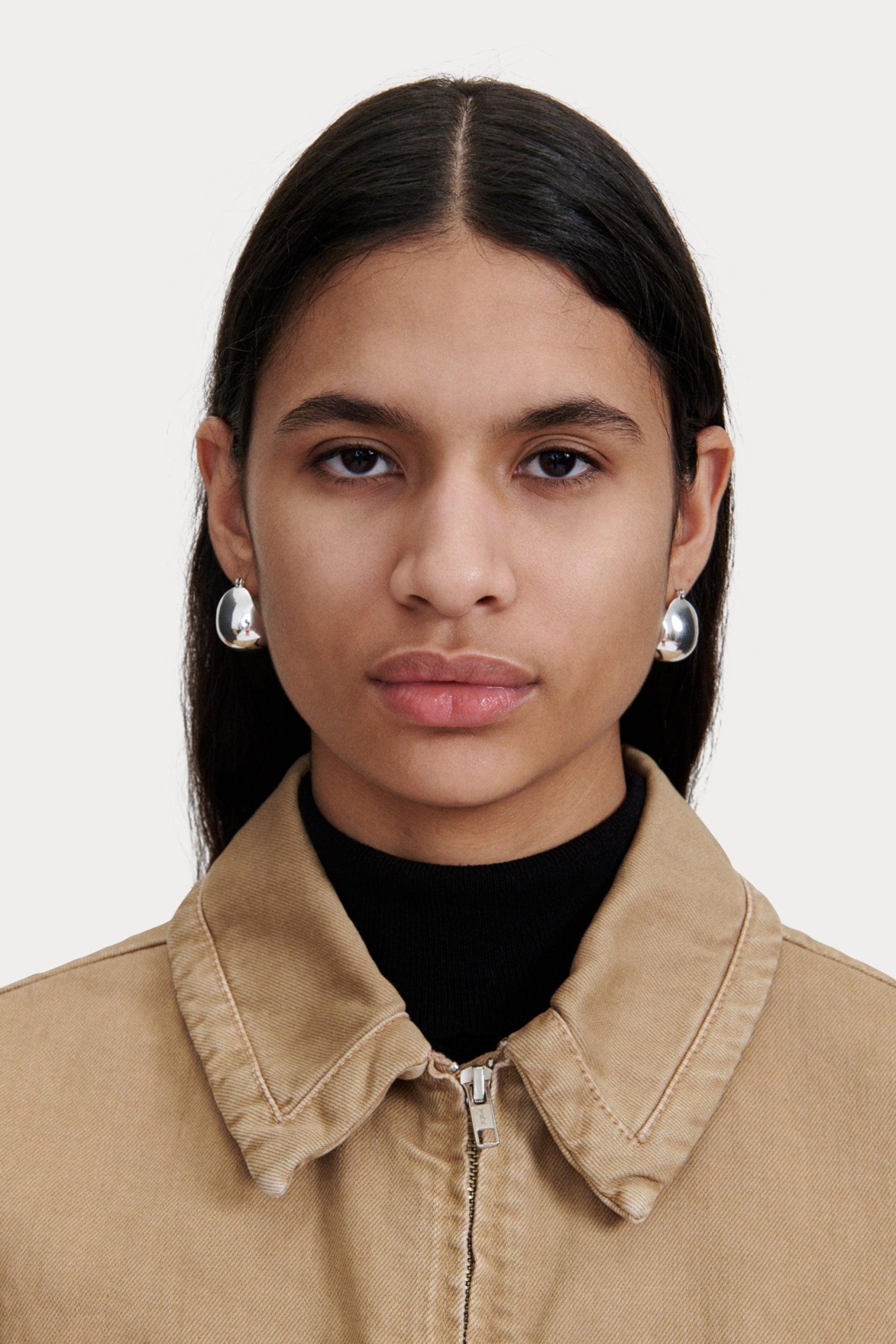 Hollow oblong hoop earrings with a hinged fastening for pierced ears. Sold as a pair.