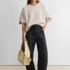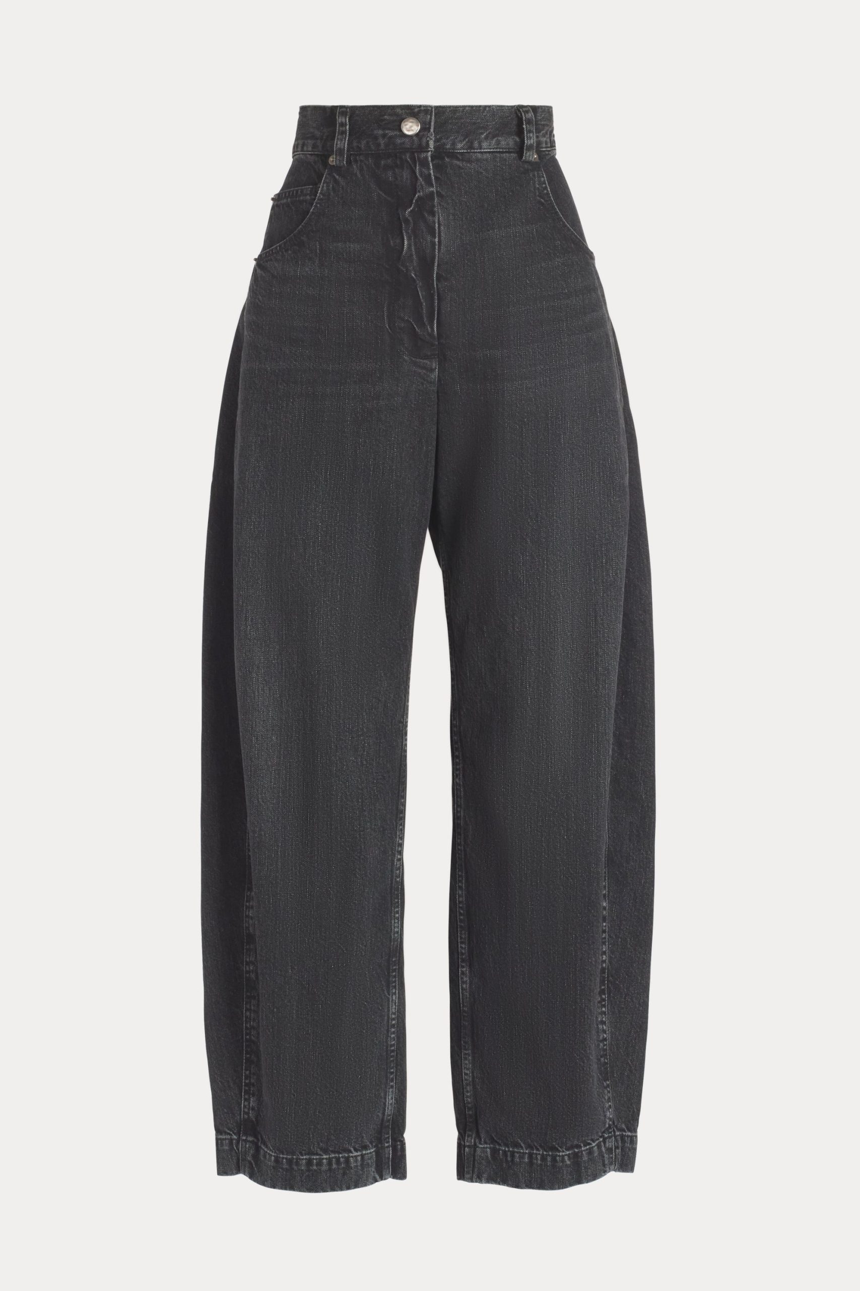 Sculpted wide-leg denim pants with five-pocket styling and a relaxed fit. Features a high waist and button fly closure. Our denim collection is made in Los Angeles using premium Japanese denim. Each style is crafted in limited quantities in partnership with small, family-run factories.