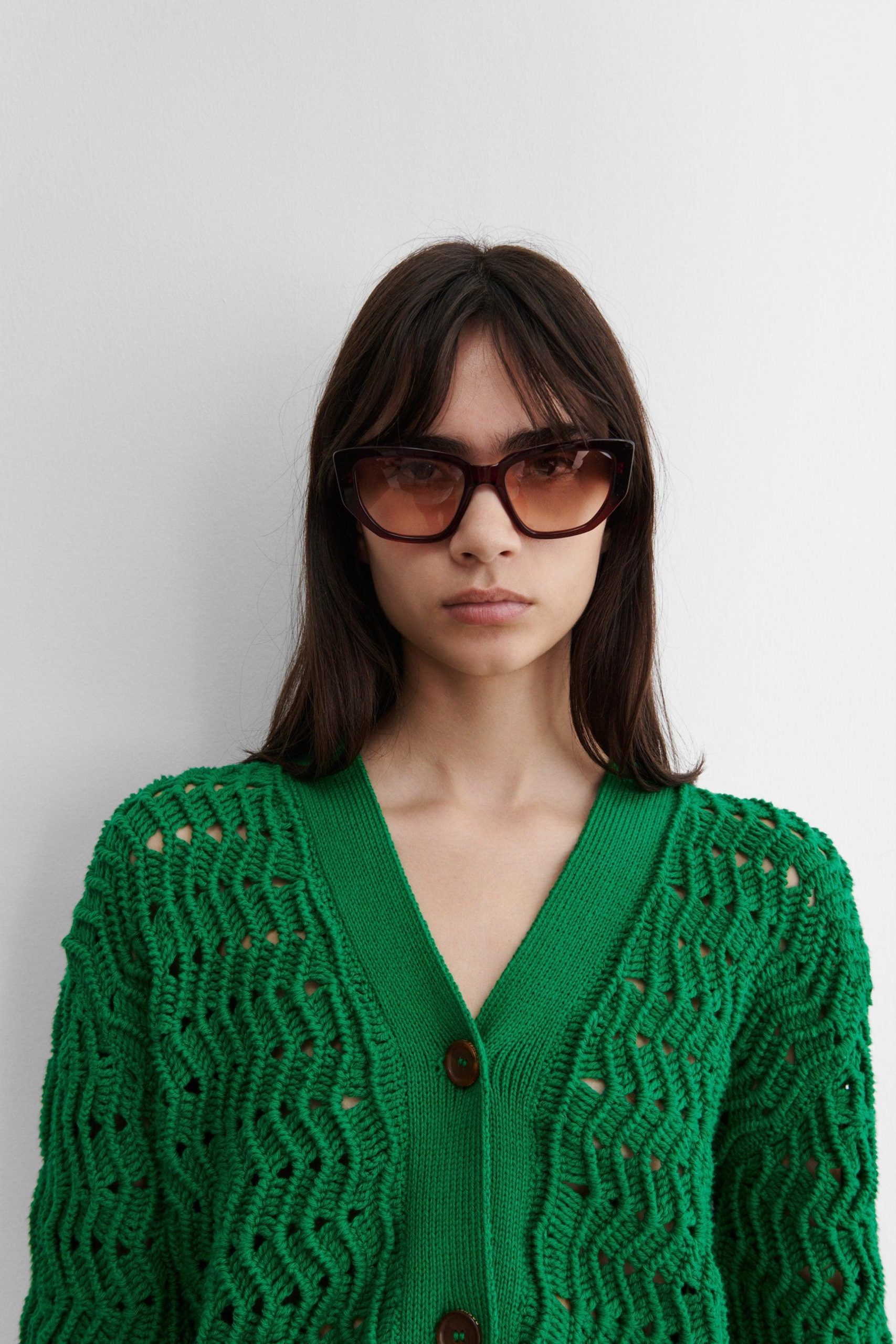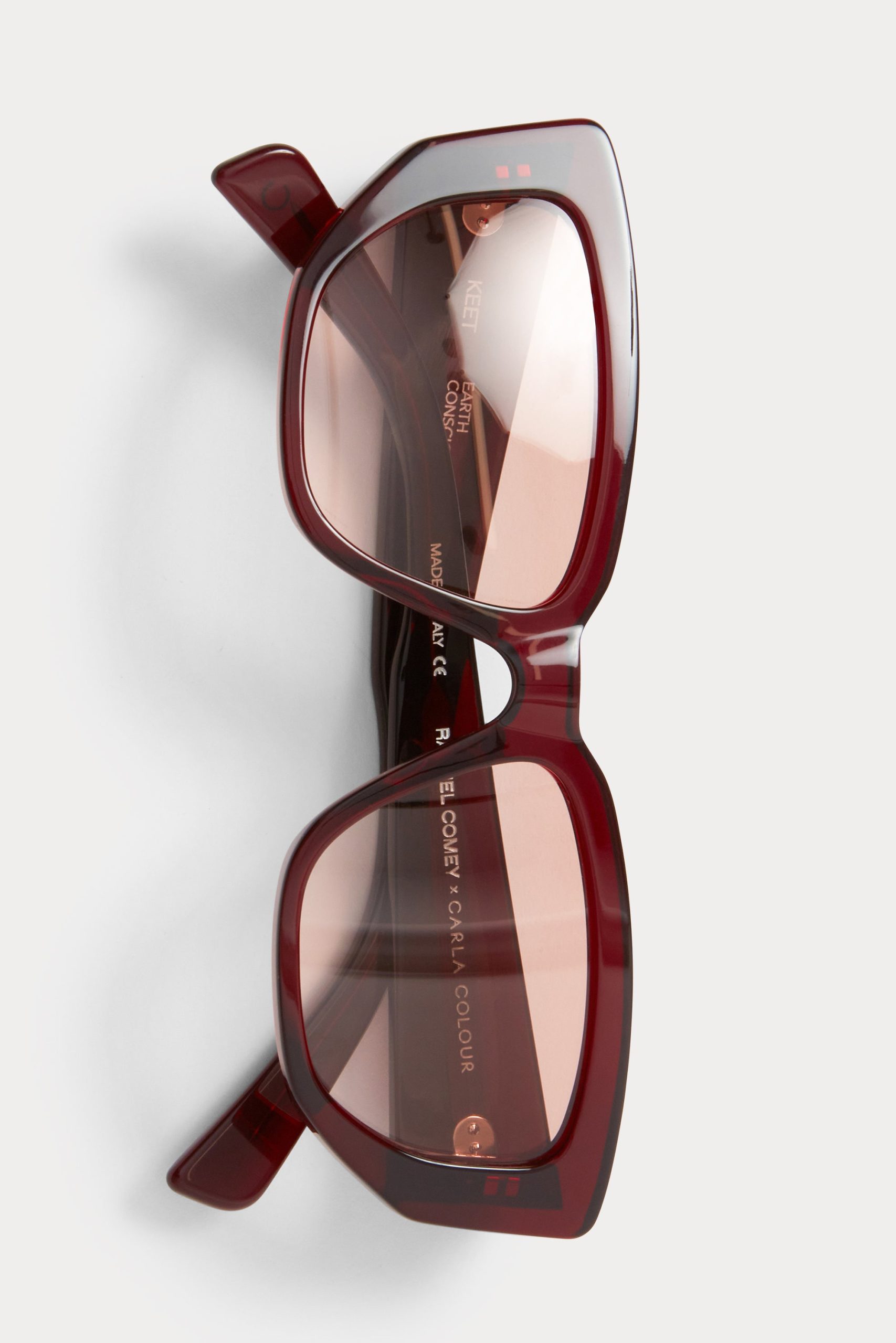 Upswept modern cat-eye frames with tinted lens by Carla Colour, exclusive to Rachel Comey.