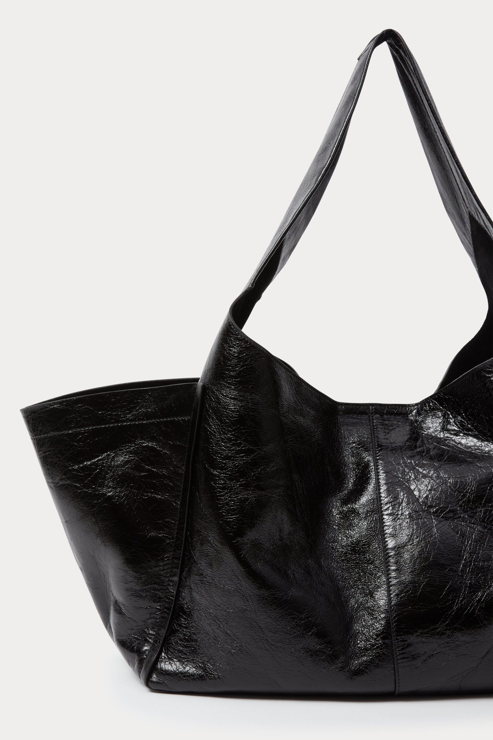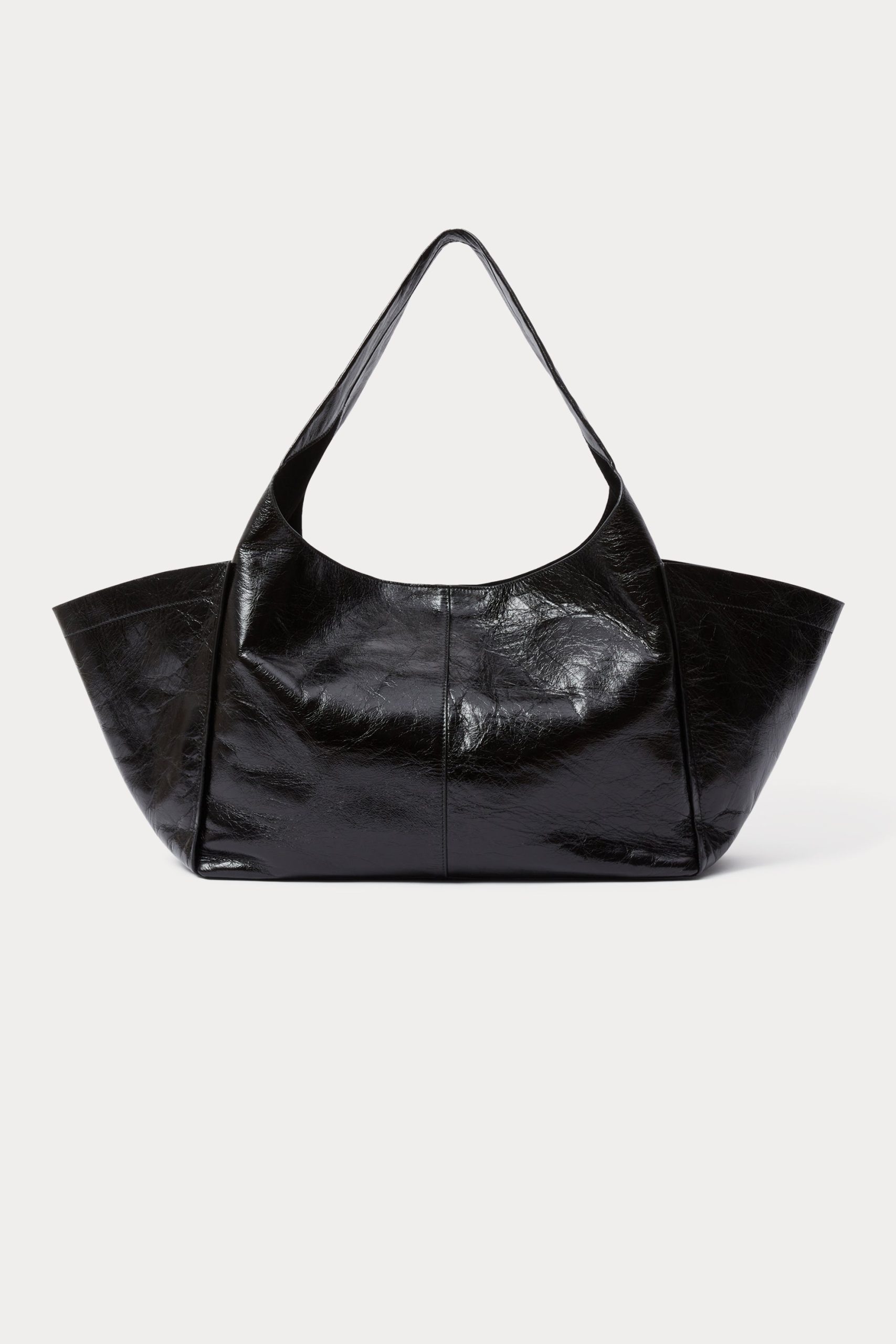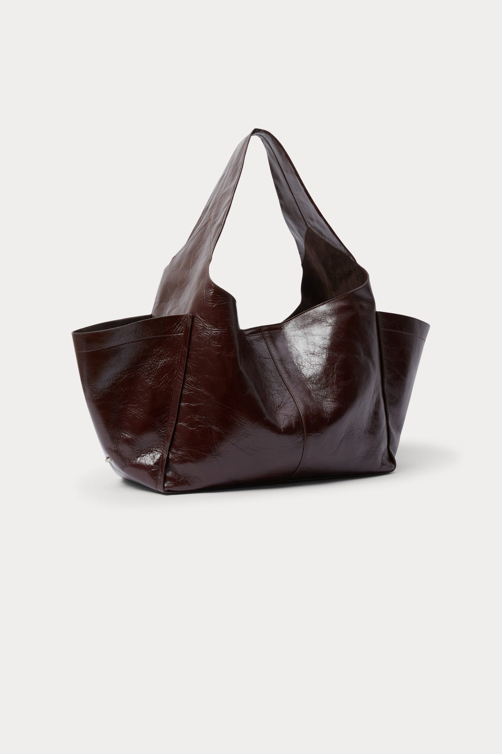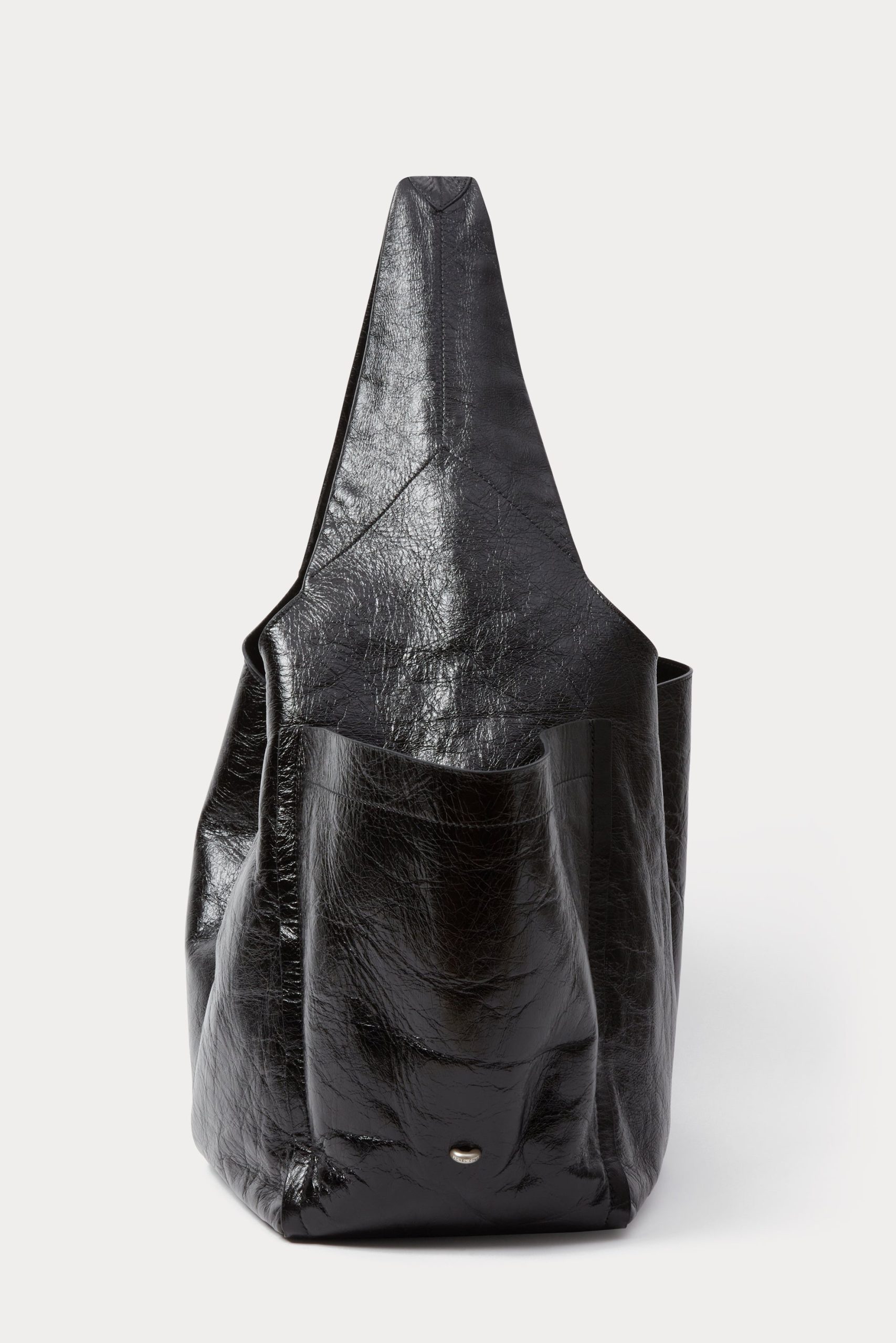 Roomy and sculptural, this semi-structured bag features a fixed shoulder strap, extended exterior pockets, and magnetic closure. A larger version of our Tool Bag.