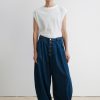 Pleated barrel jeans in soft Odisto Denim. Features a voluminous leg and button front closure. Our denim collection is made in Los Angeles using premium Japanese denim.