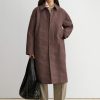 Long, textured jacquard coat with a relaxed fit and a classic collar. Cut to a straight-cut silhouette, with a concealed snap button front, and side welt pockets.