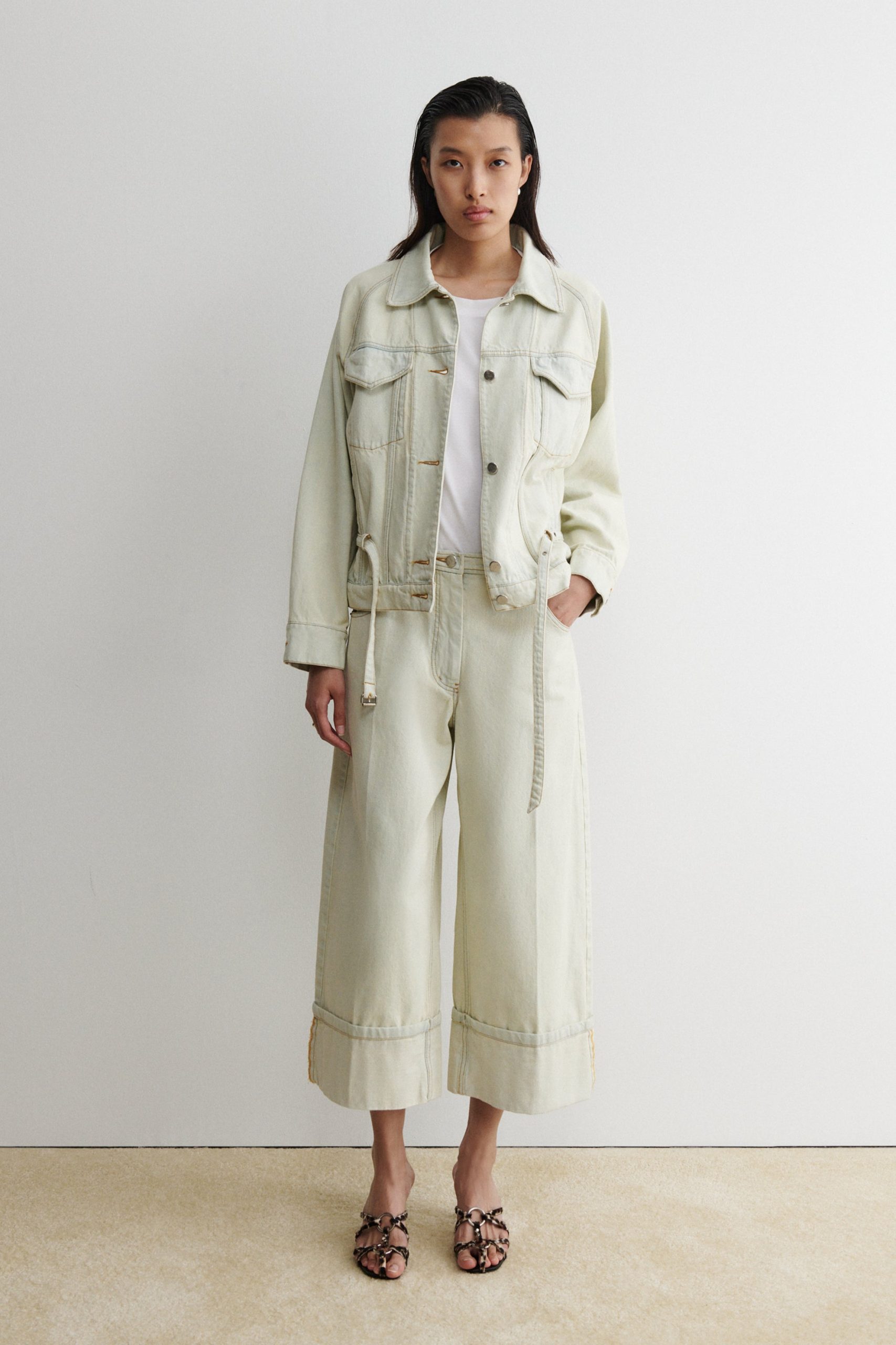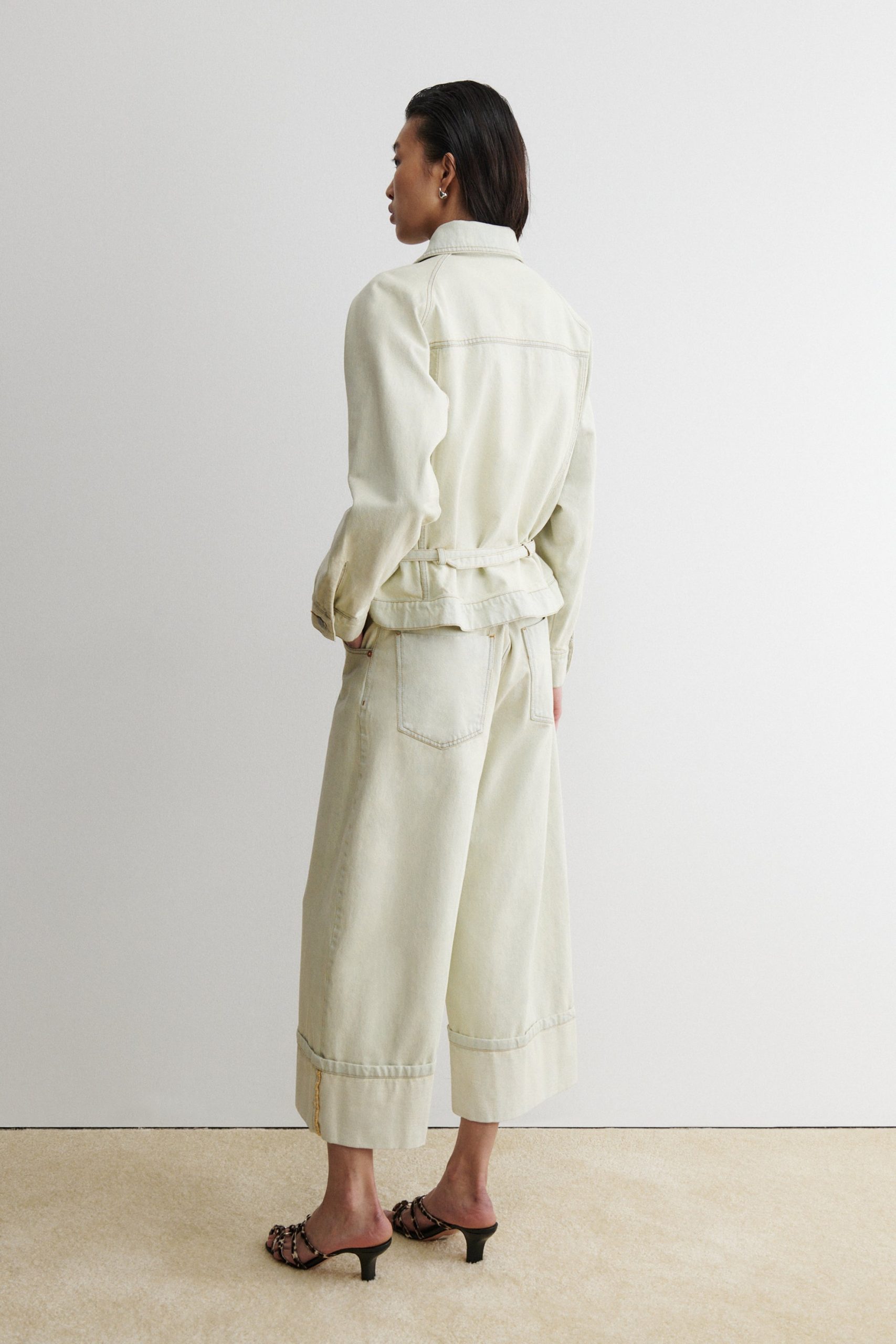 Classic jacket cut from bleached mission denim with an included skinny belt for subtle definition at the waist. Wear with the matching Bev Pant for an elevated matching denim look.