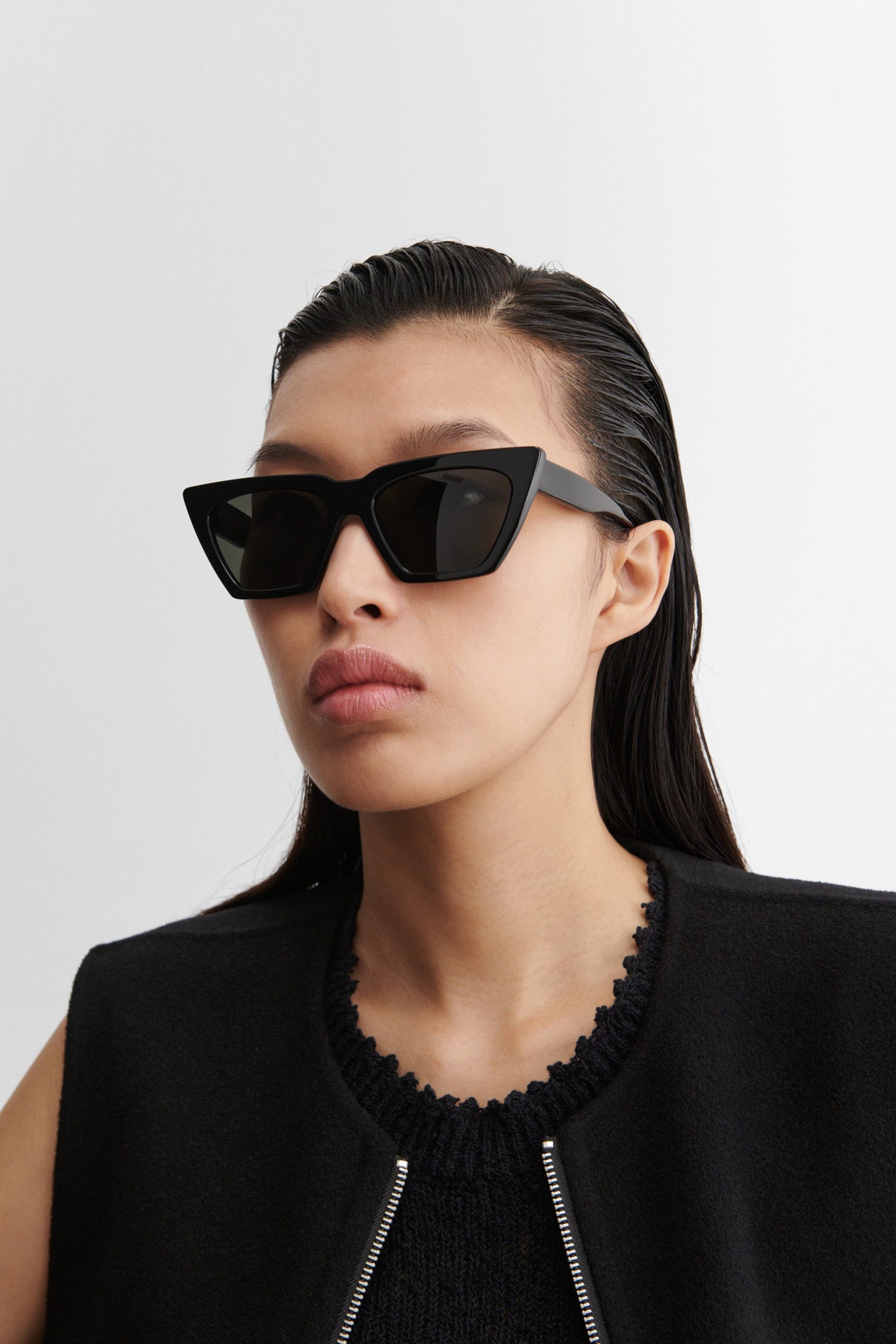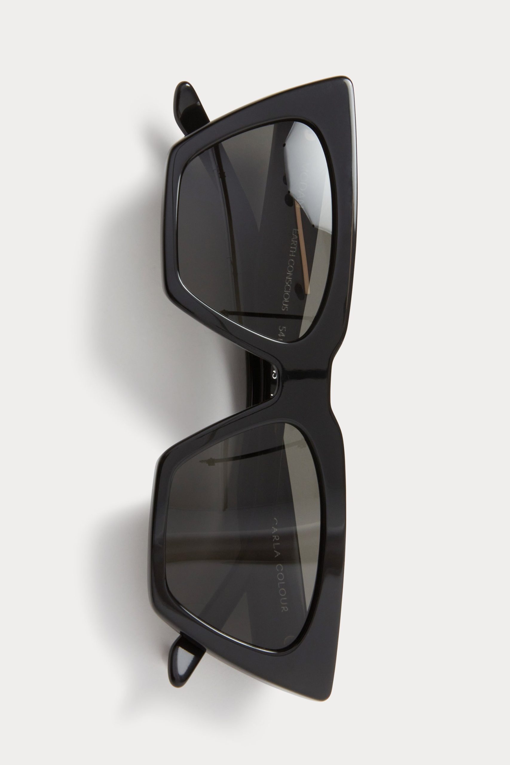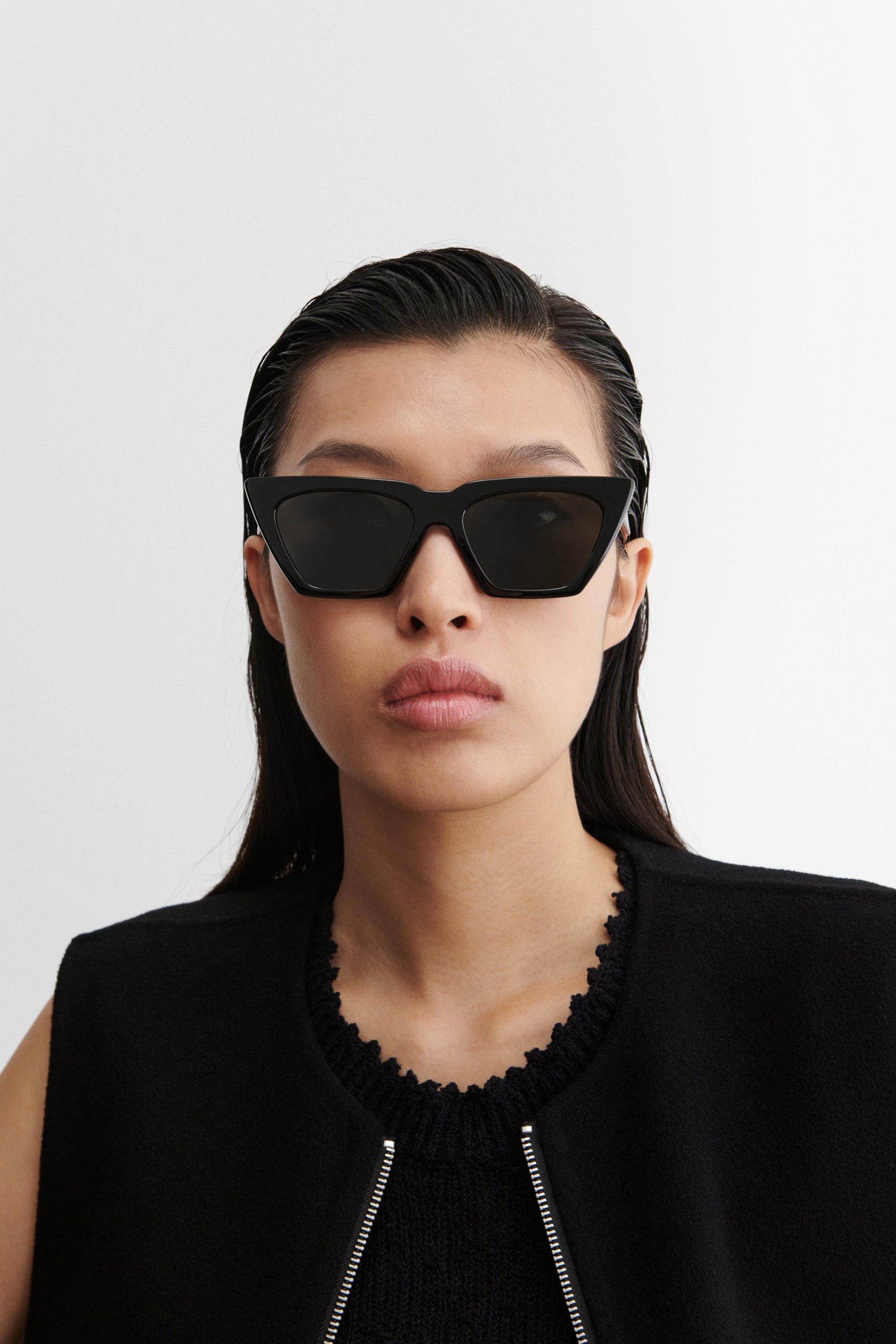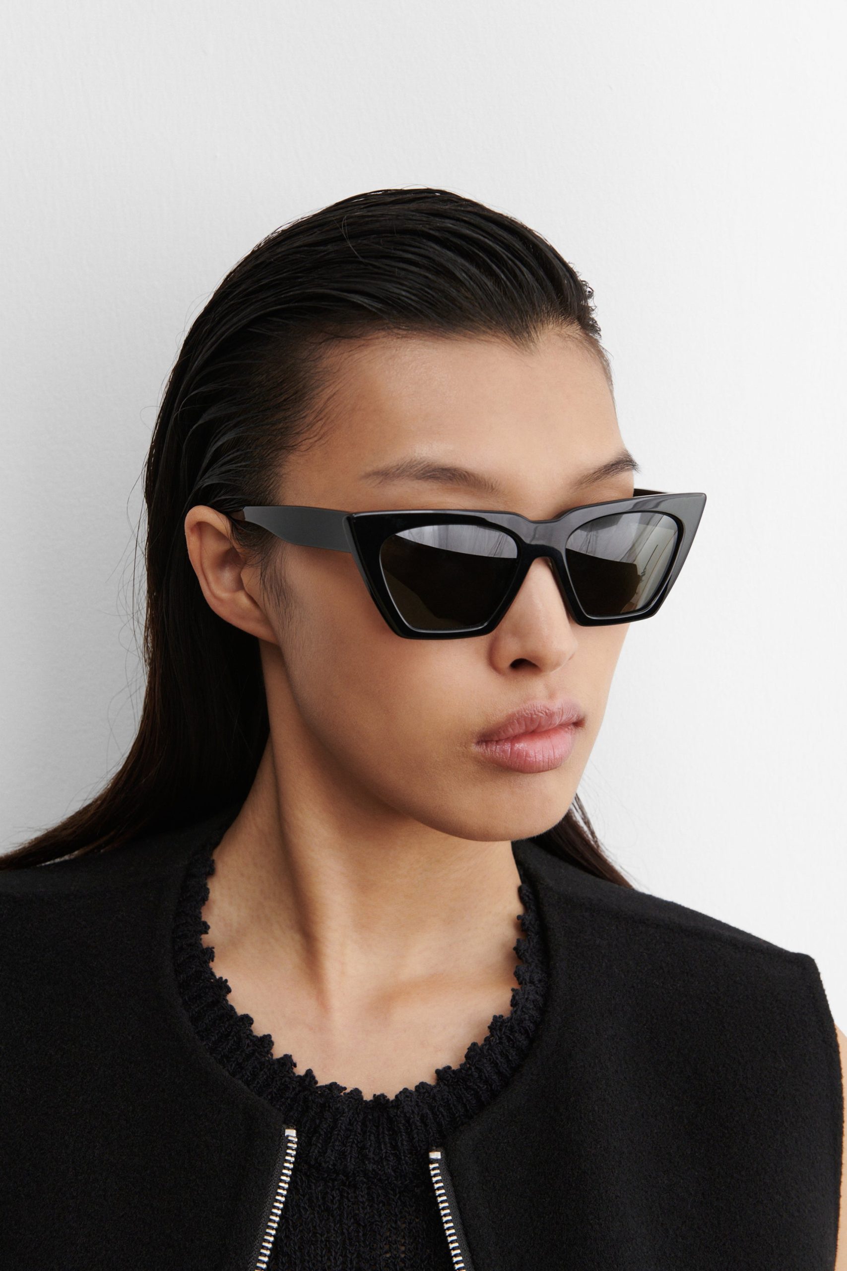 - Angular cat-eye frame crafted from premium Italian acetate with bio-nylon lenses
