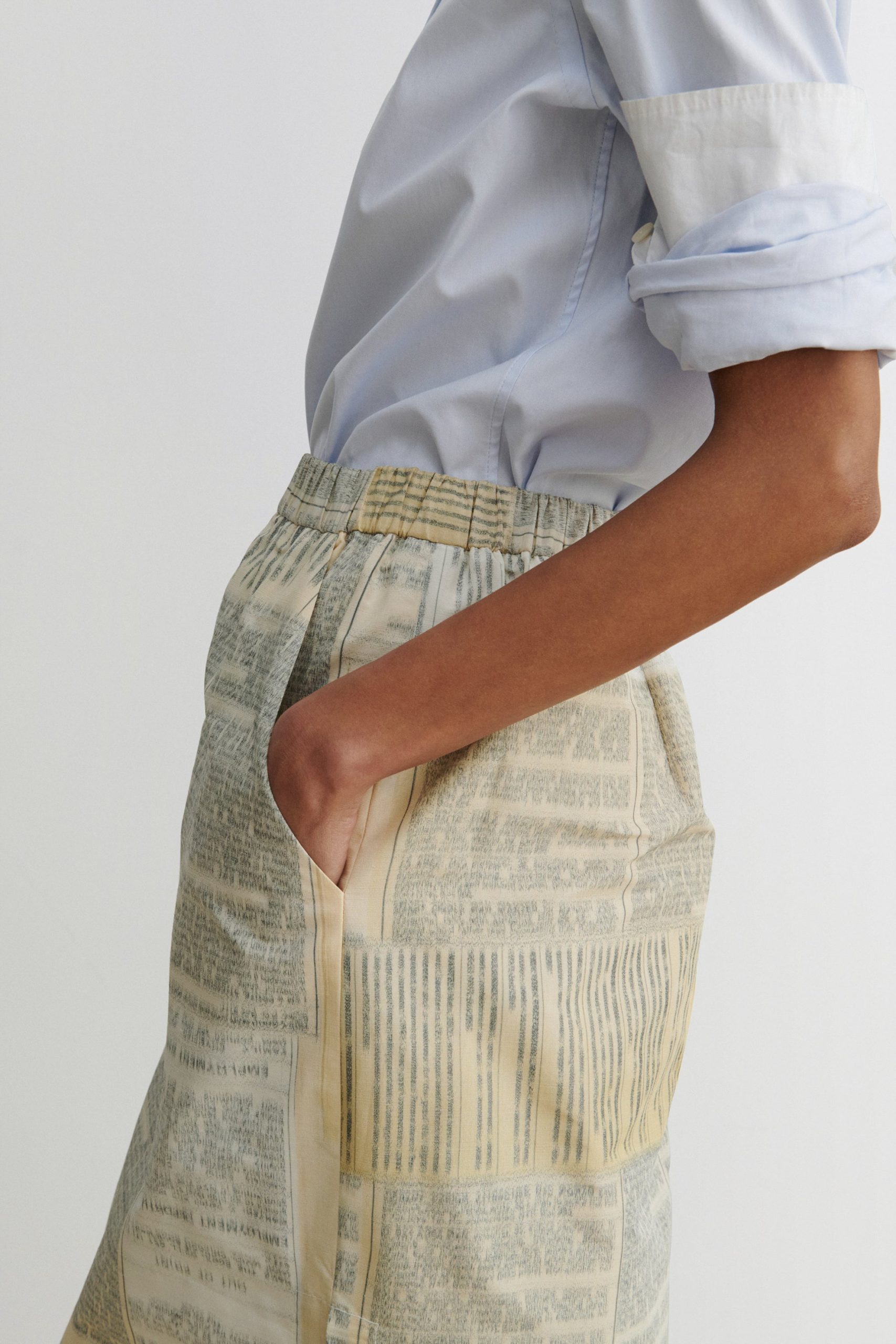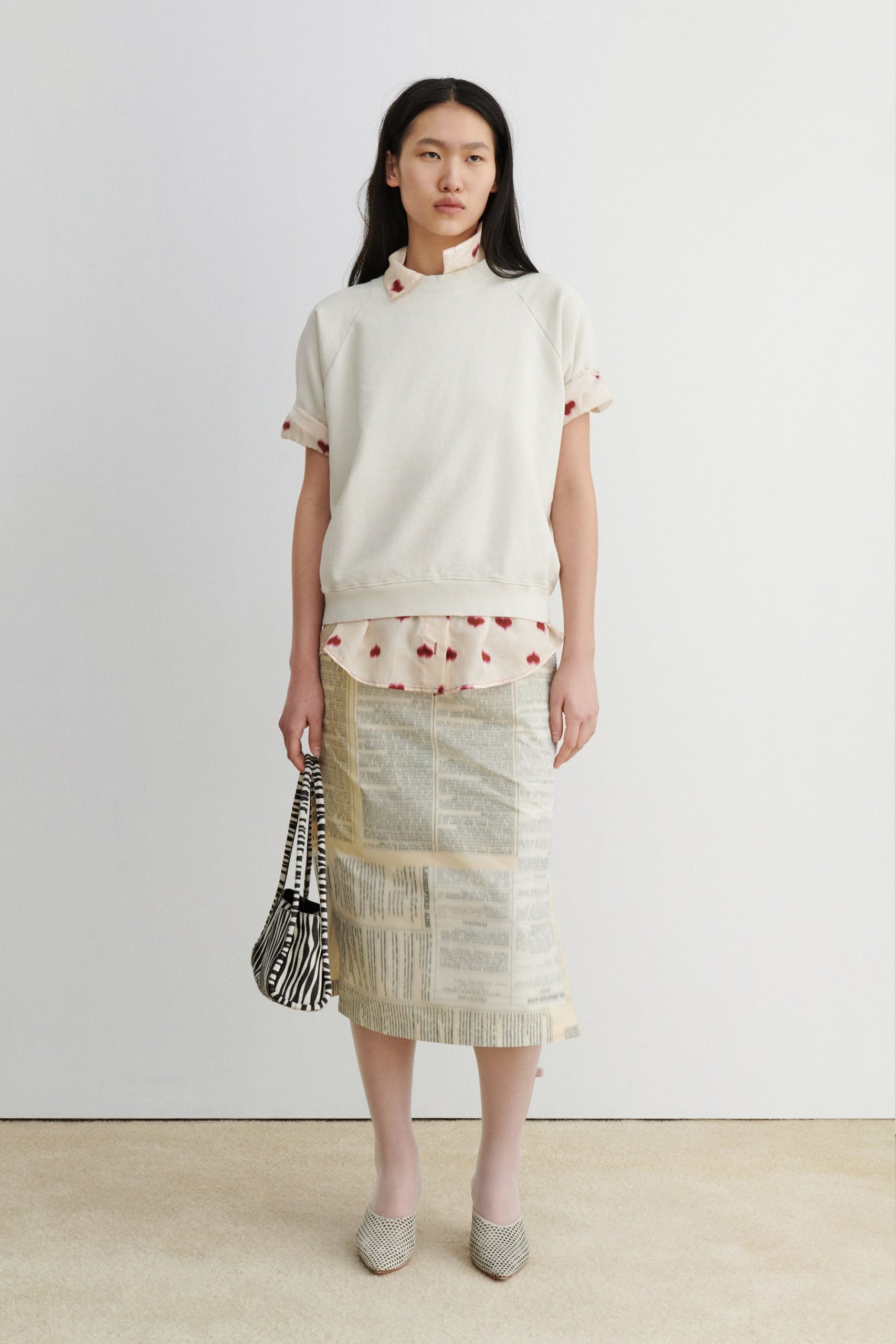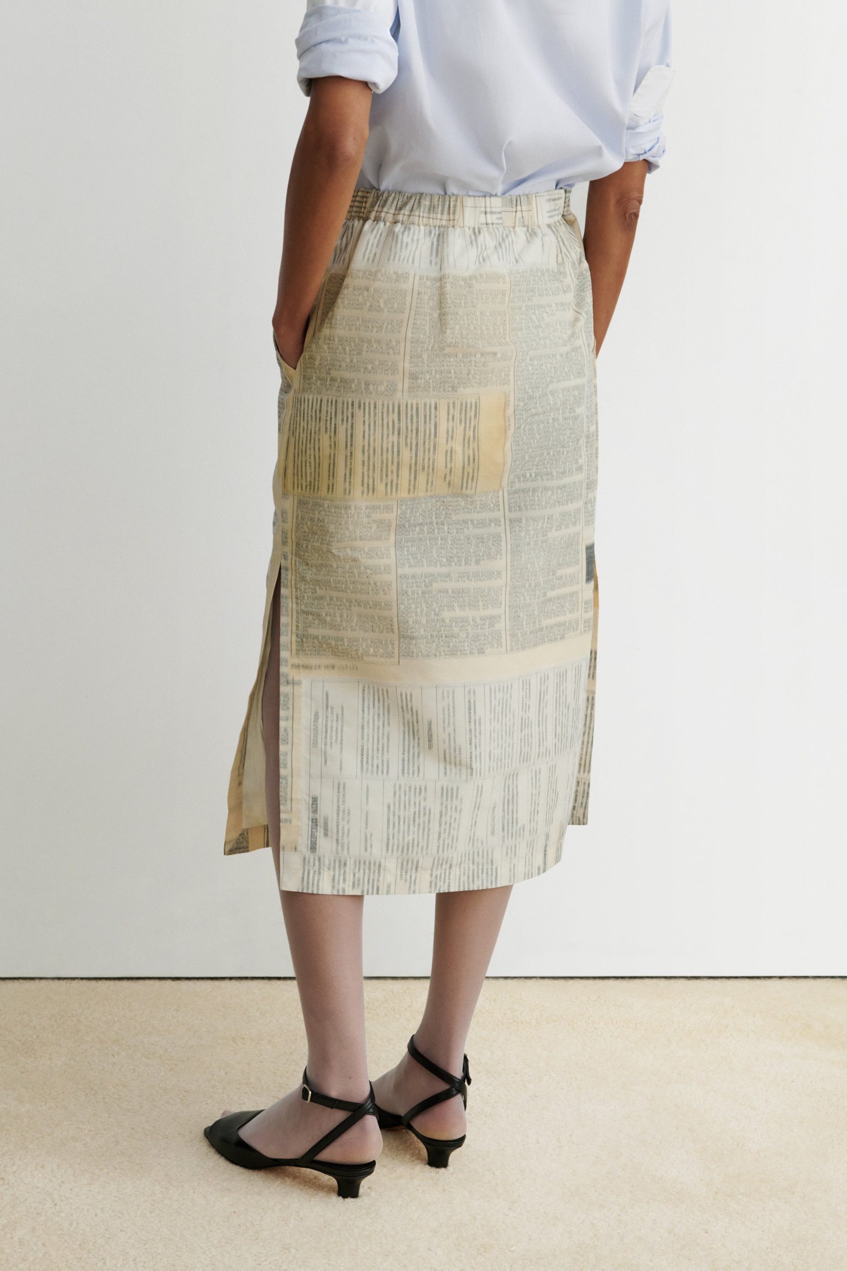 Our classic high-waisted, pull-on pencil skirt, new this season in our water-resistant taffeta. This taffeta was made using a warp and weft print technique, and then woven together to create an intentional blur effect. Features side slip pockets and side vents.