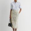 Our classic high-waisted, pull-on pencil skirt, new this season in our water-resistant taffeta. This taffeta was made using a warp and weft print technique, and then woven together to create an intentional blur effect. Features side slip pockets and side vents.