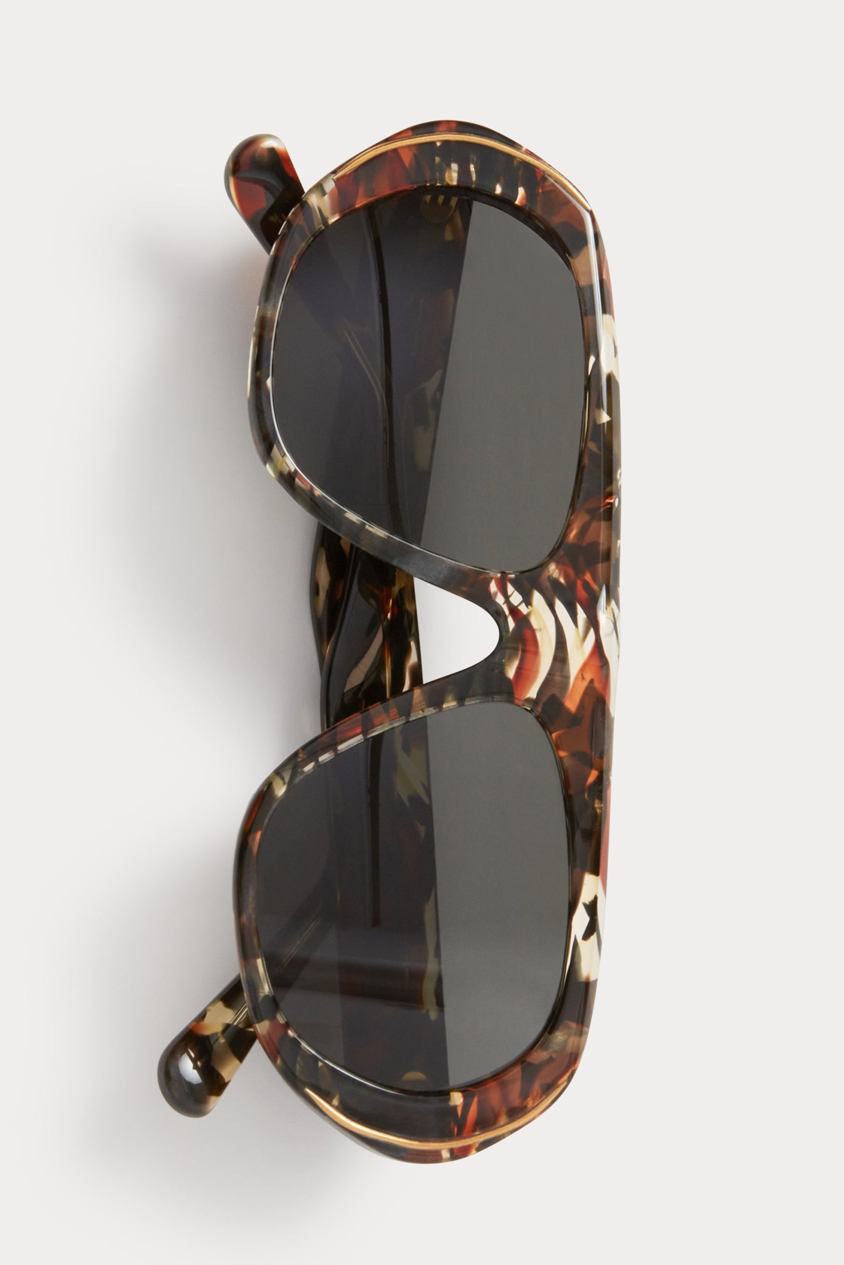 - Oversized, late ’70s inspired aviator frame crafted from premium Italian acetate with bio-nylon lenses