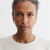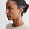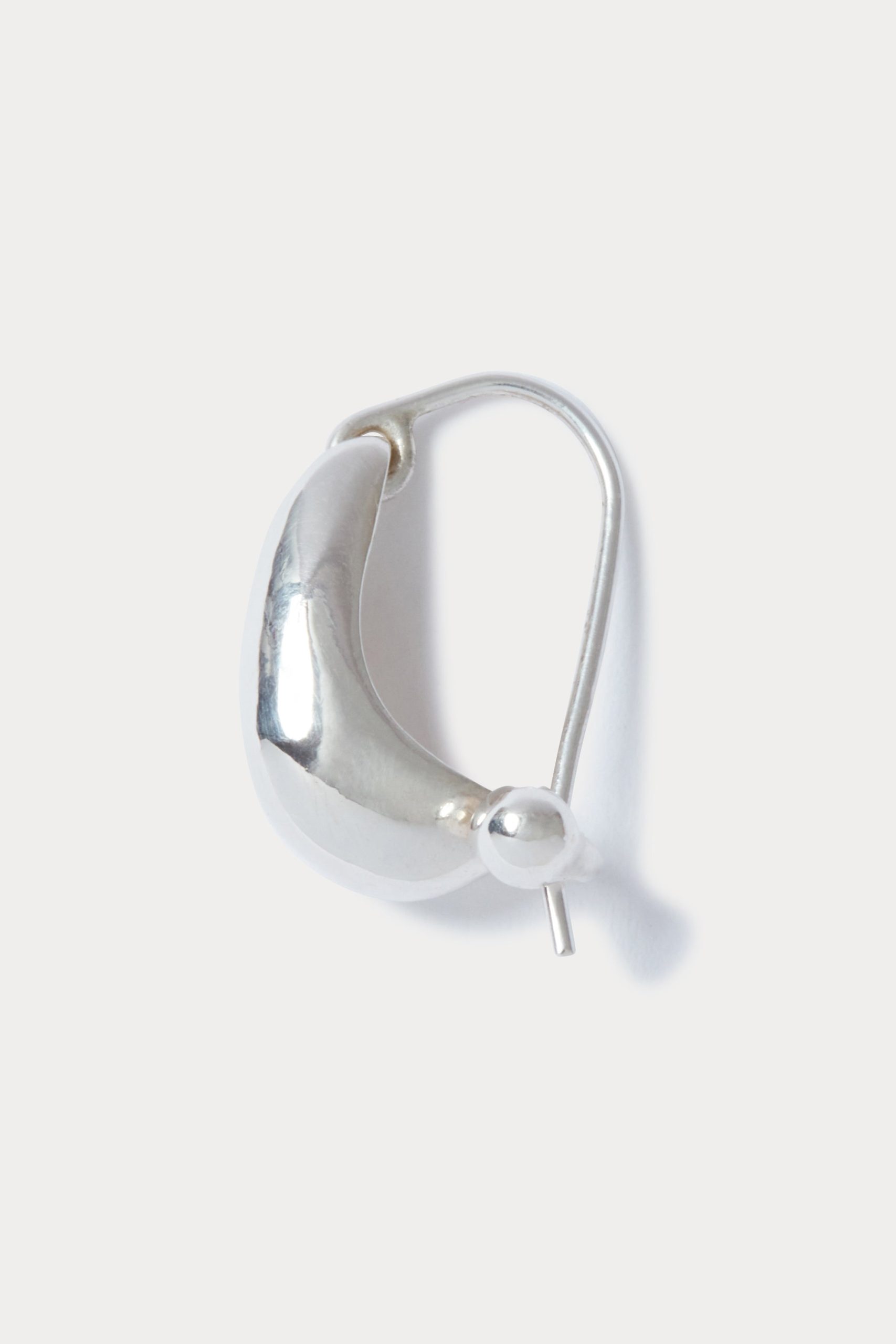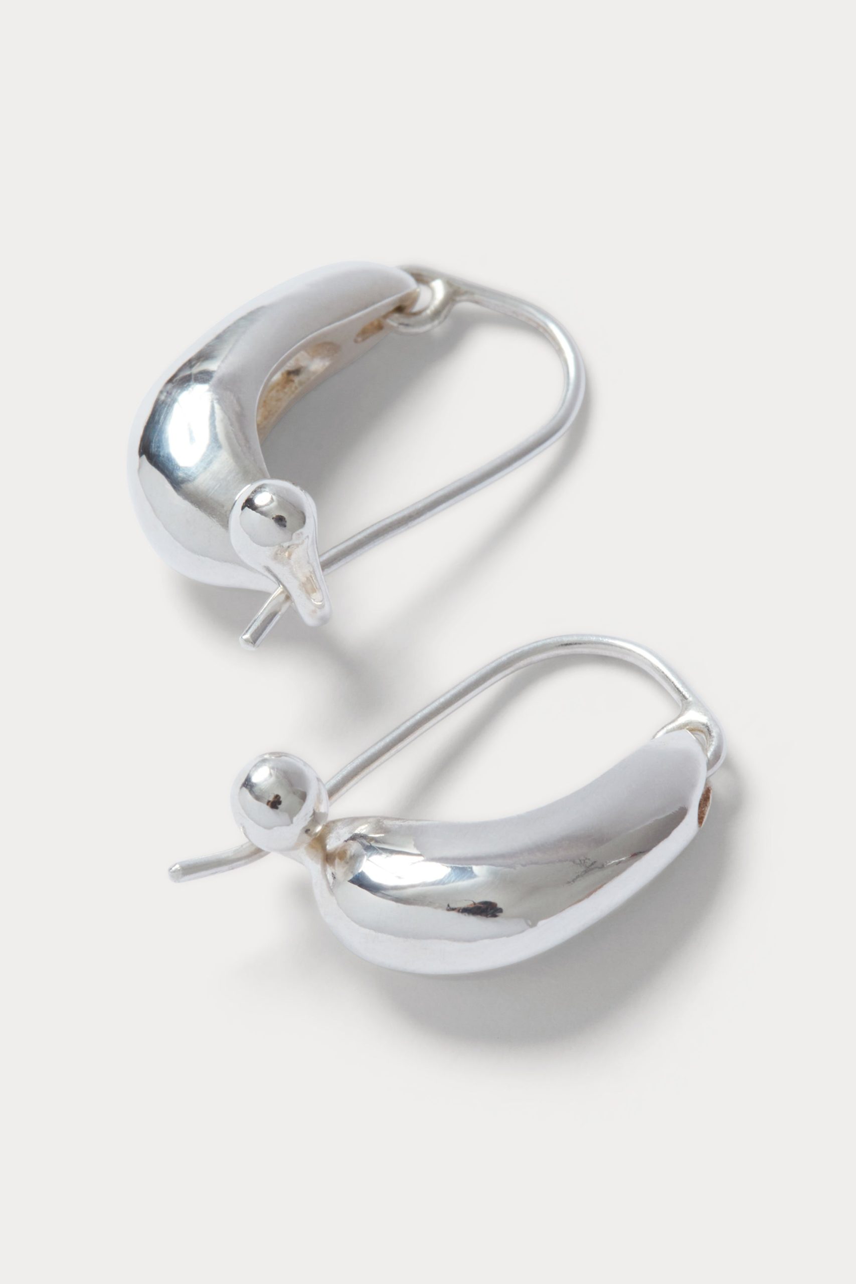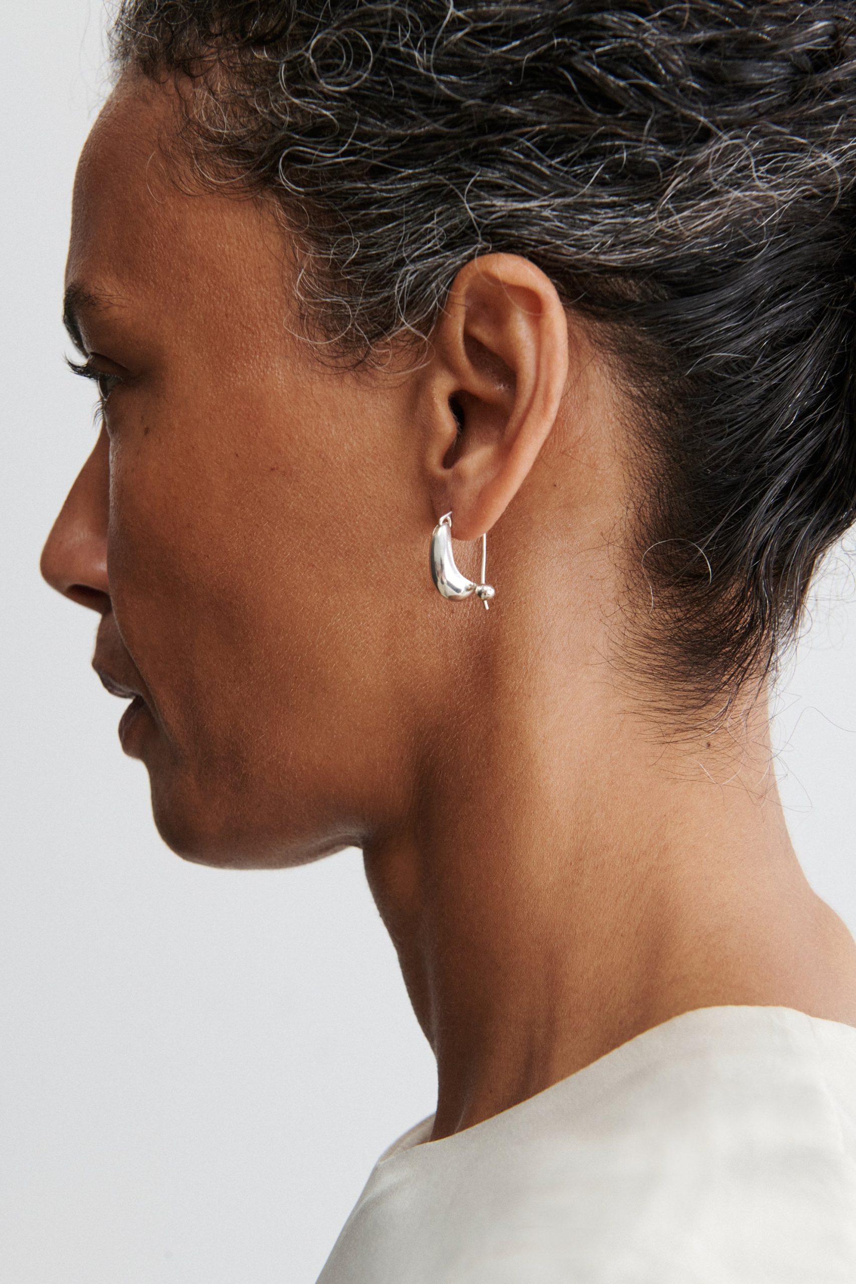 Sculptural silver earrings with a rounded, curved design. Quarry jewelry is handmade in New York City by Ninh Wysocan.