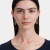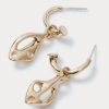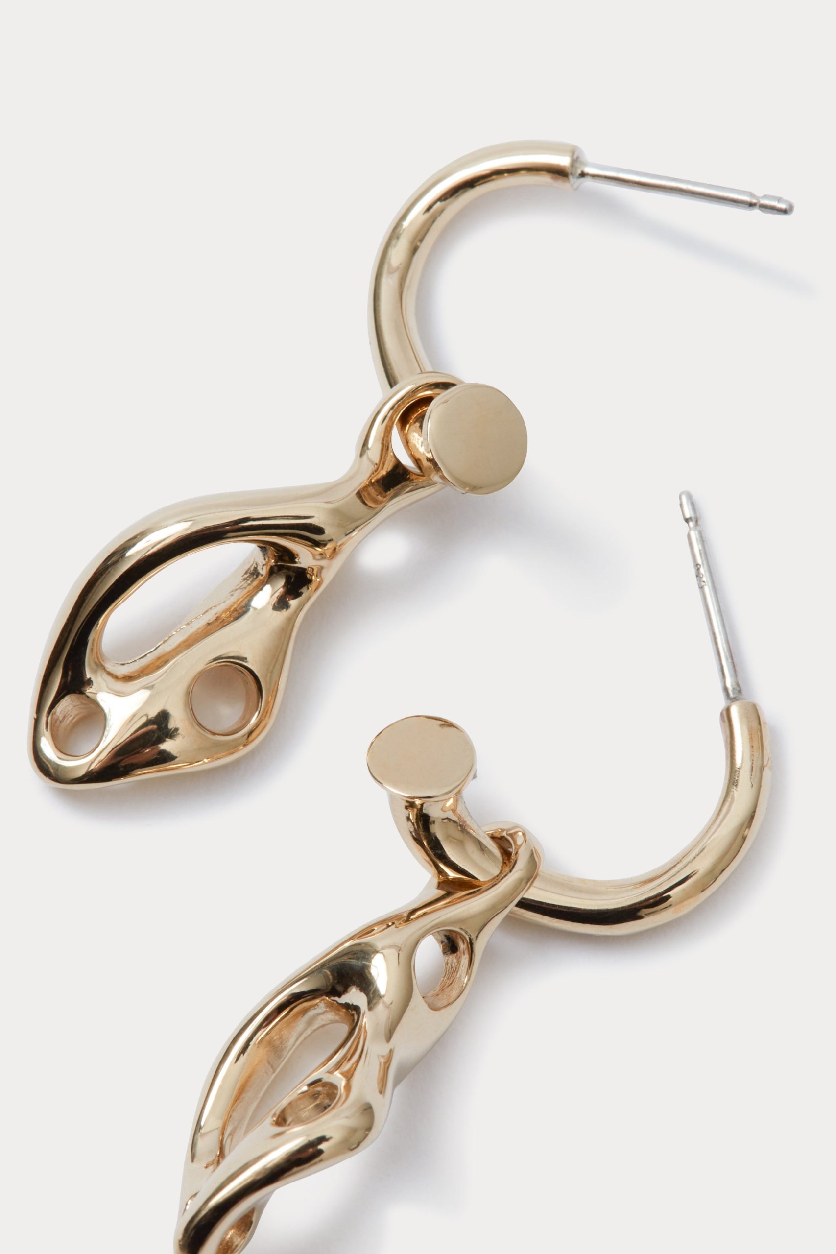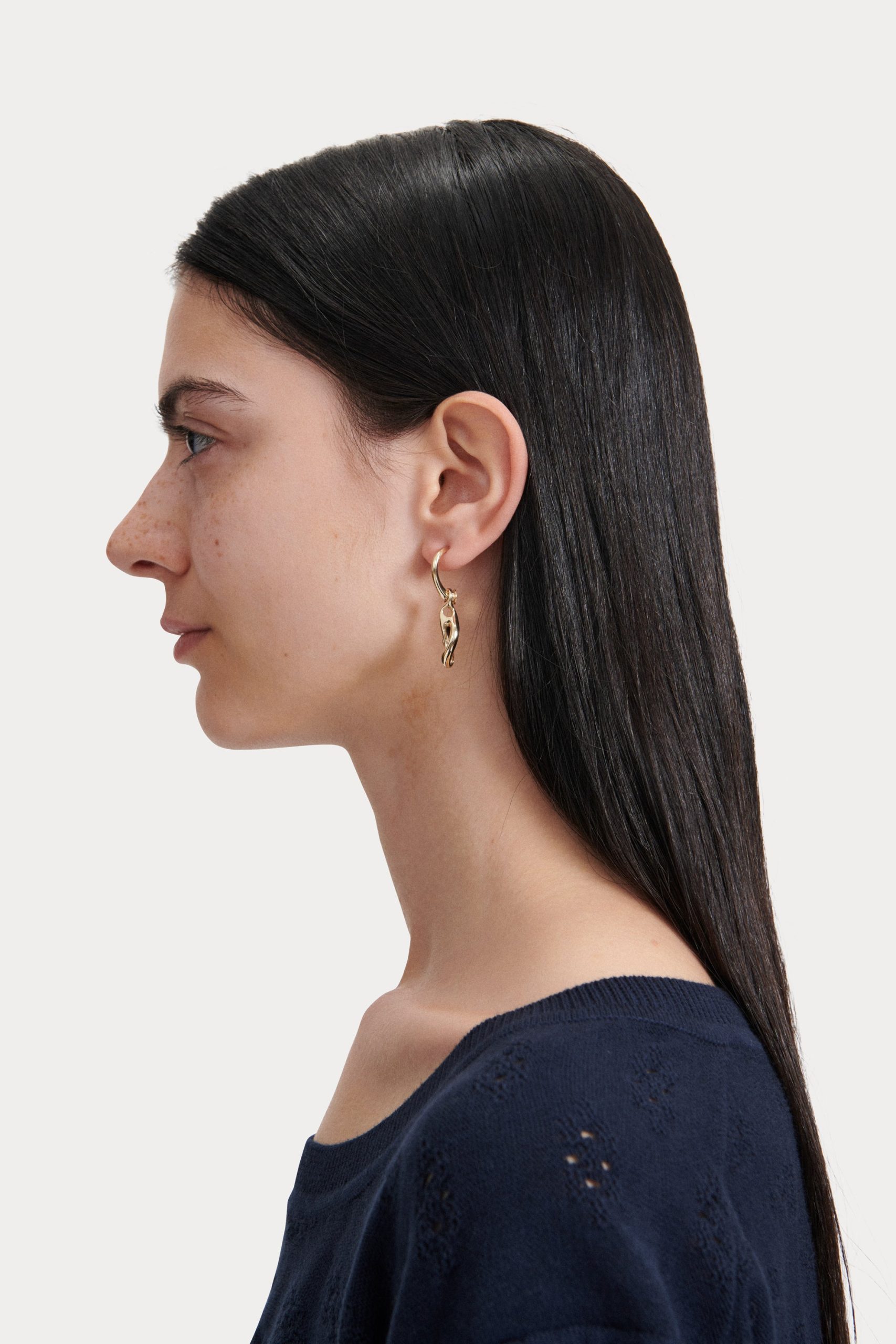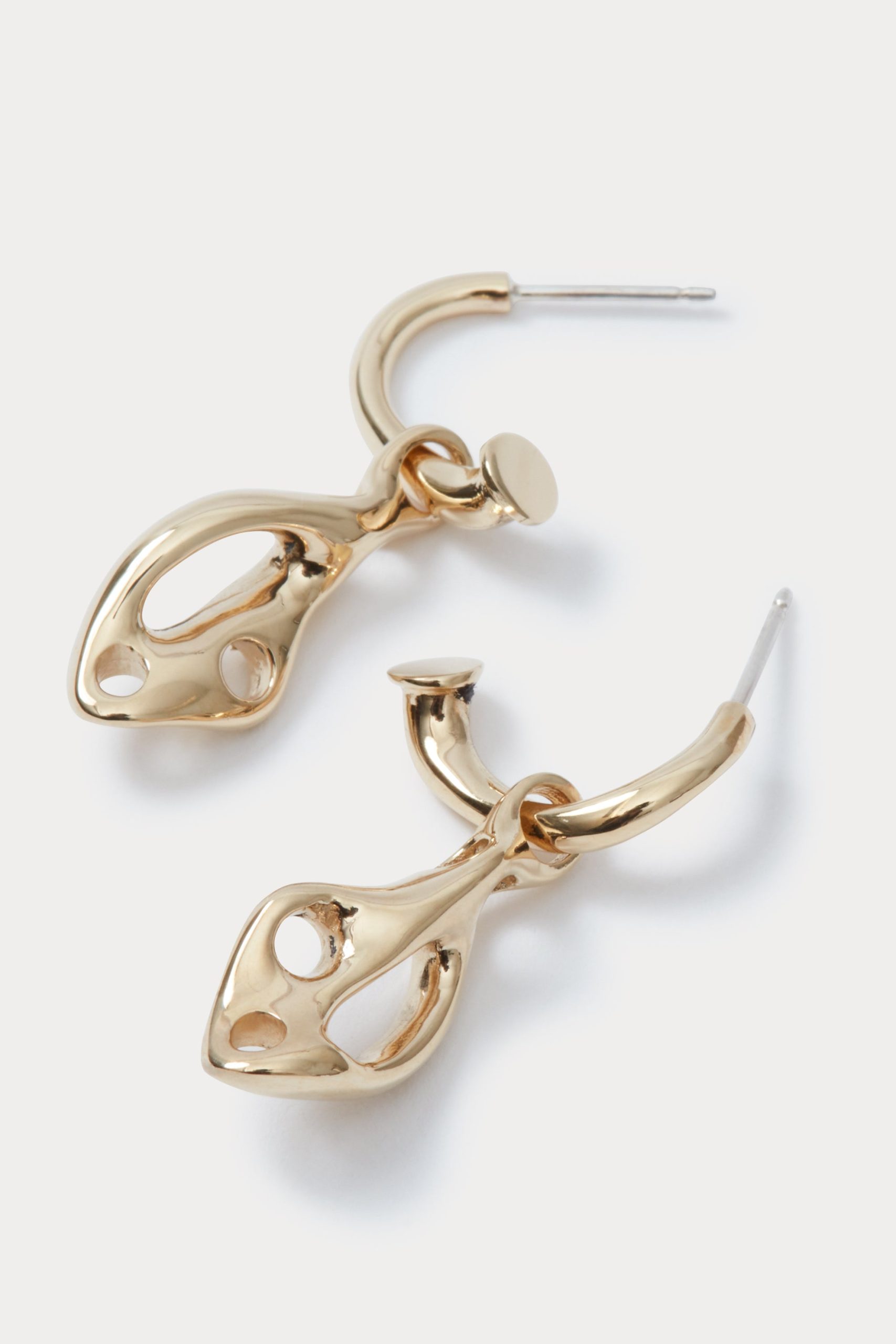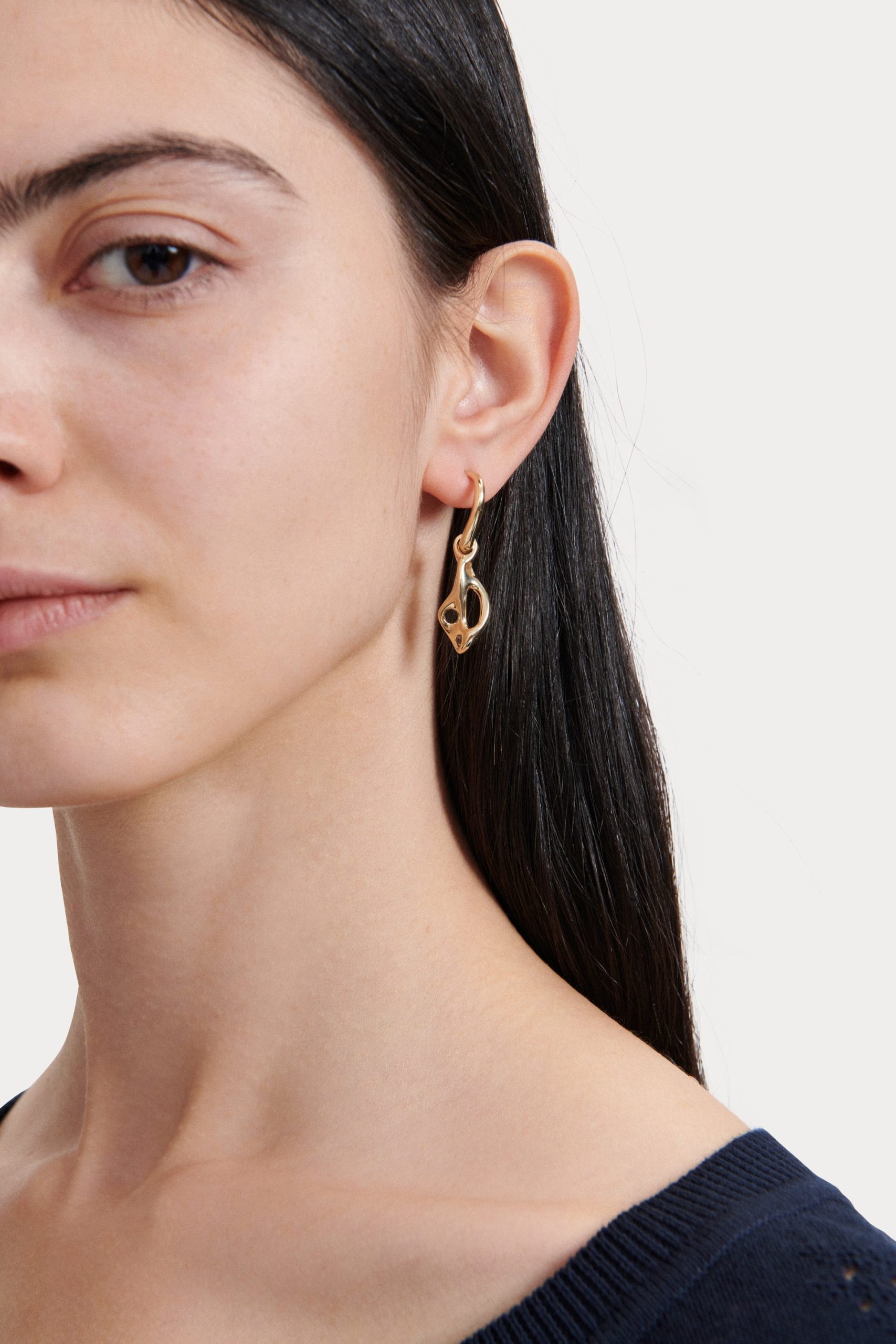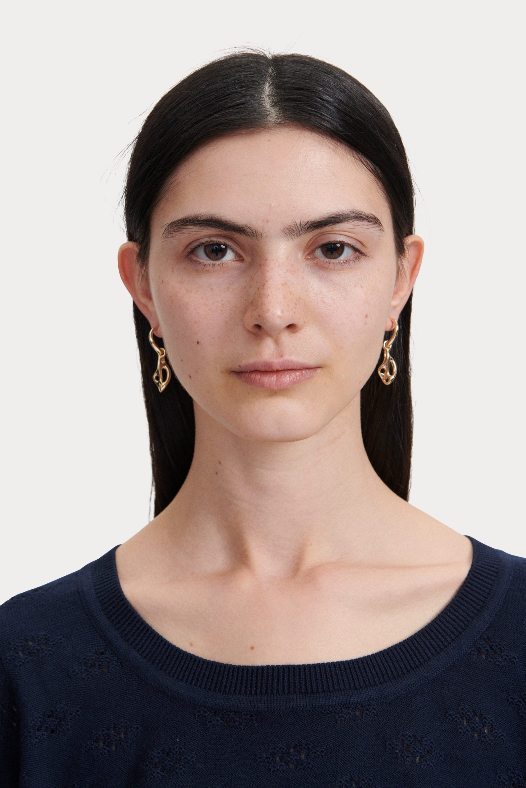 Drop earrings in solid brass with silver post and back. Quarry jewelry is handmade in New York City by Ninh Wysocan.