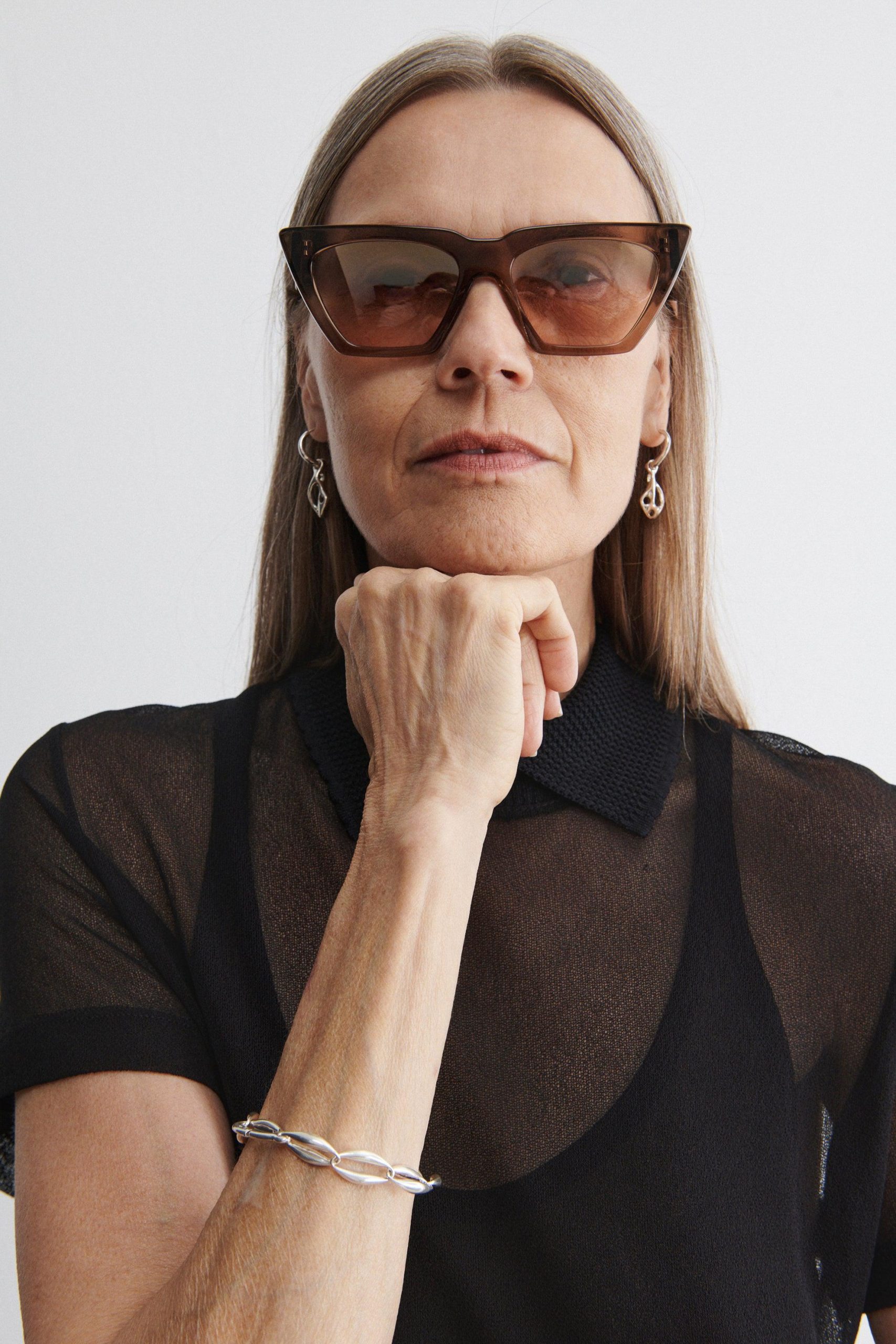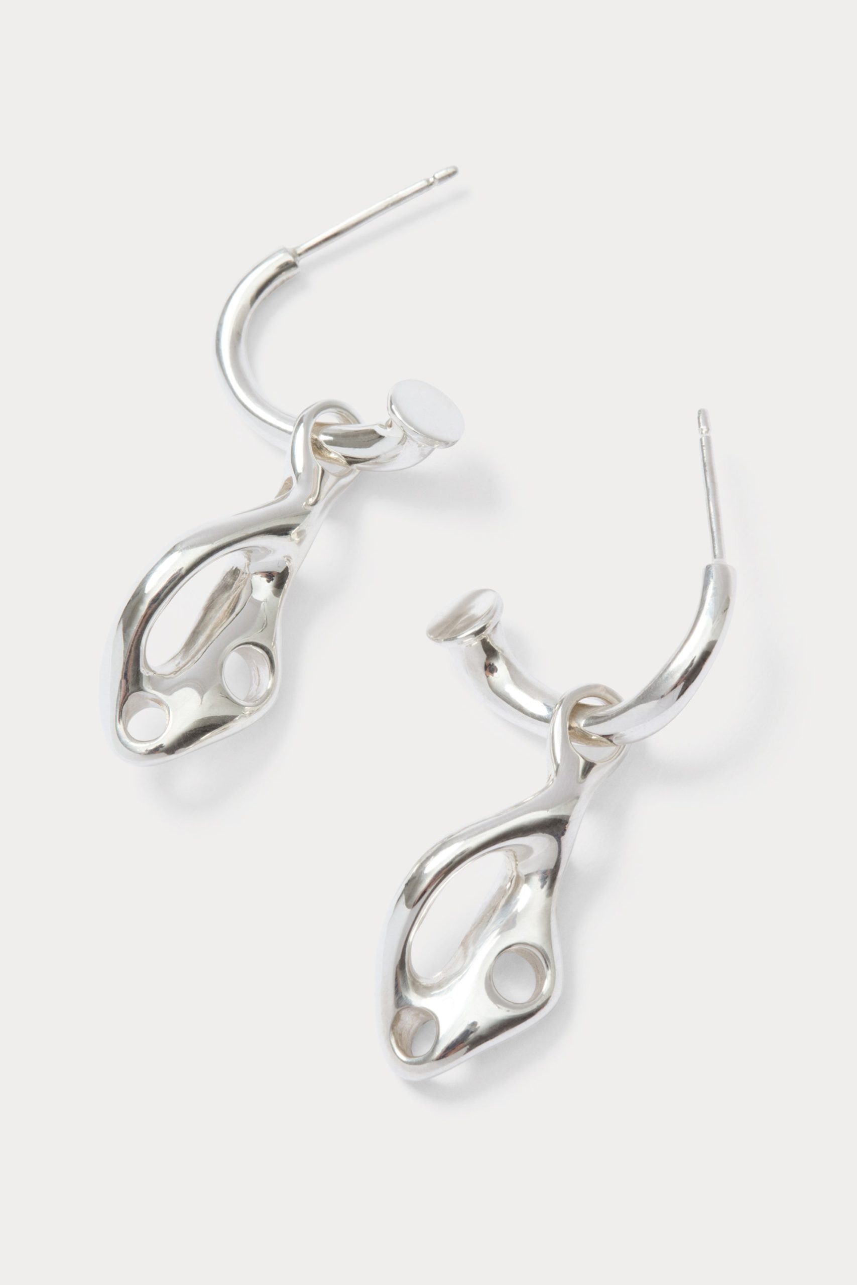 Sculptural drop earrings in solid silver with silver posts and backs. Quarry jewelry is handmade in New York City by Ninh Wysocan.