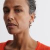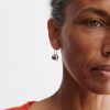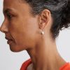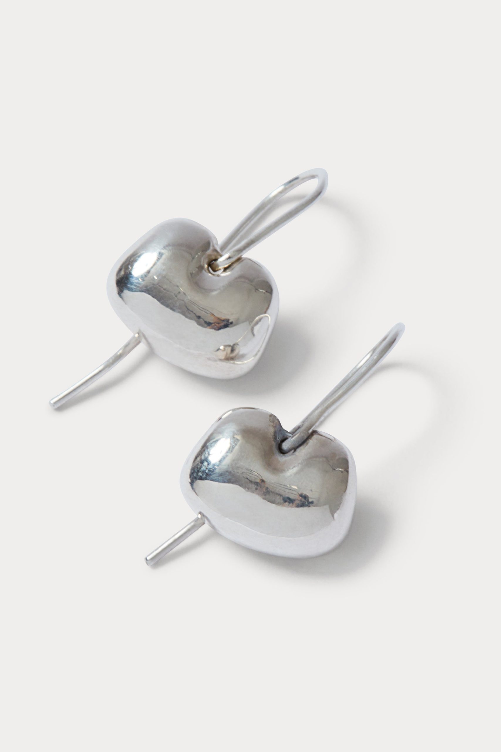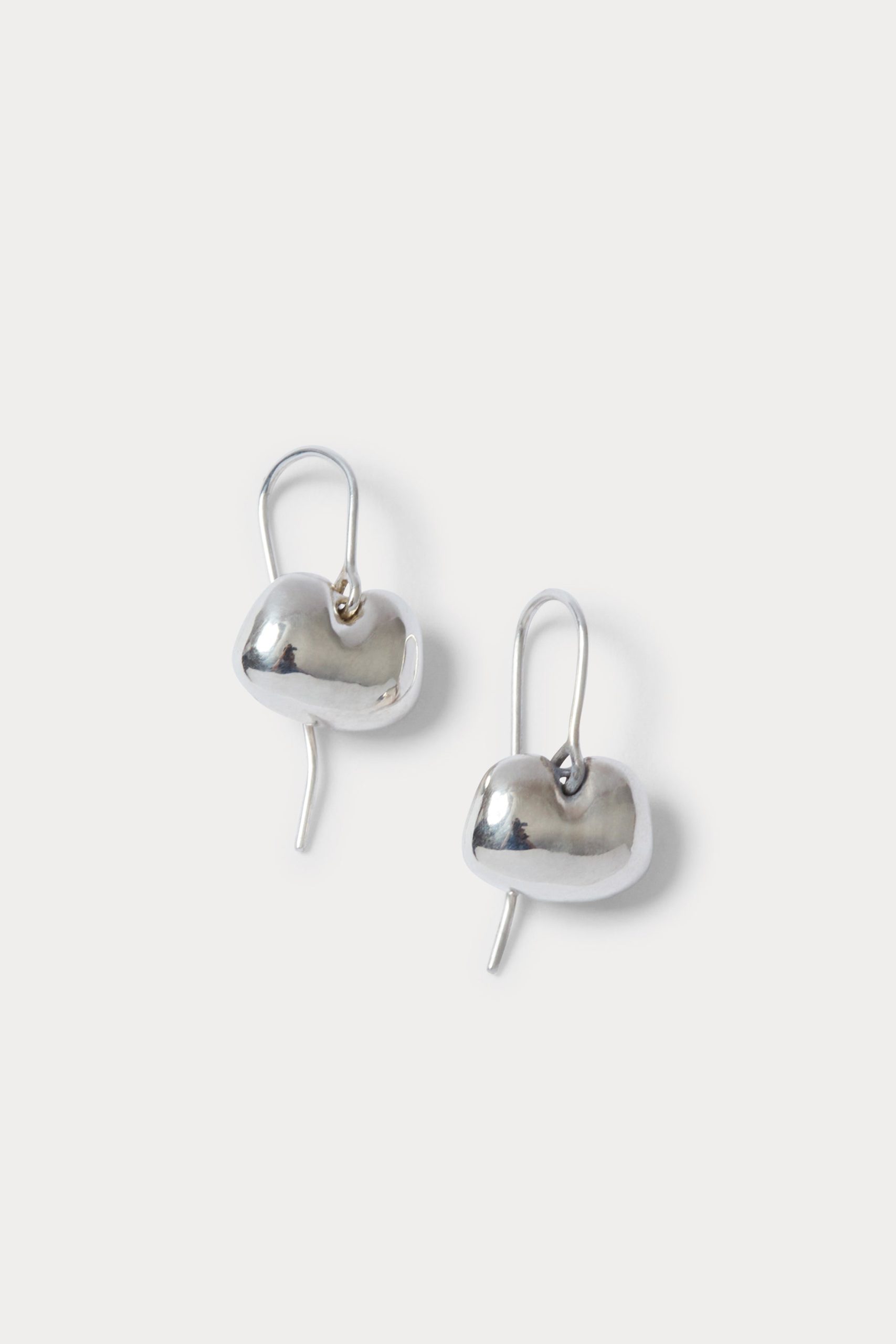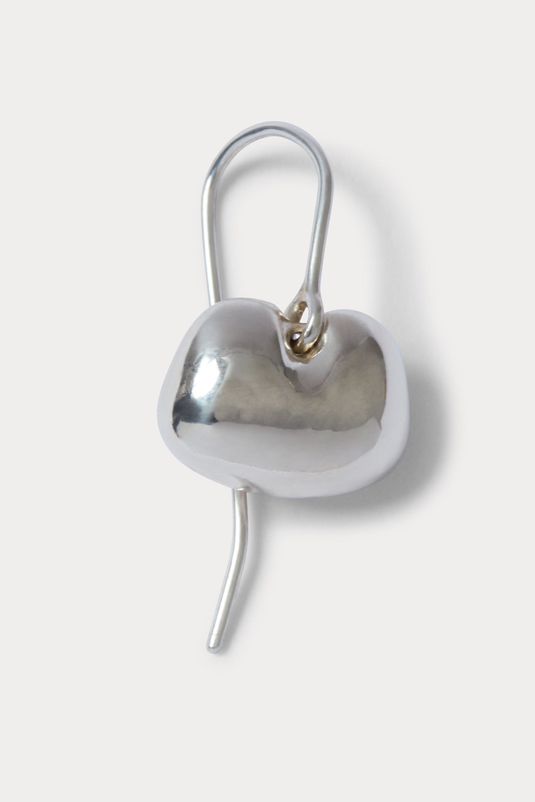 Sculptural silver earrings with a rounded, organic form and a shepherd hook design. Quarry jewelry is handmade in New York City by Ninh Wysocan.