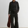 Boxy spread collar jacket with snap button closure in stretchy tailored cotton corduroy.