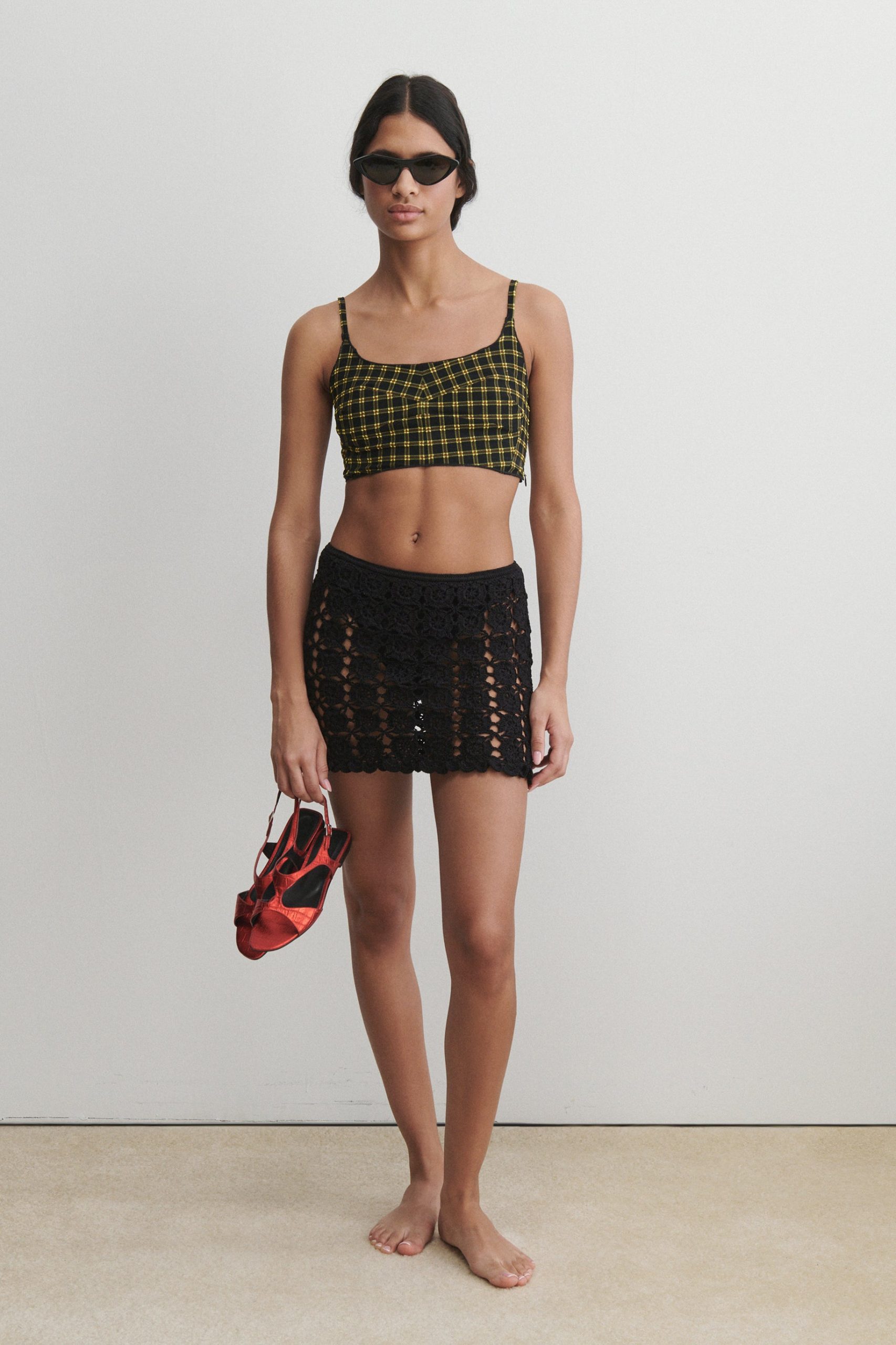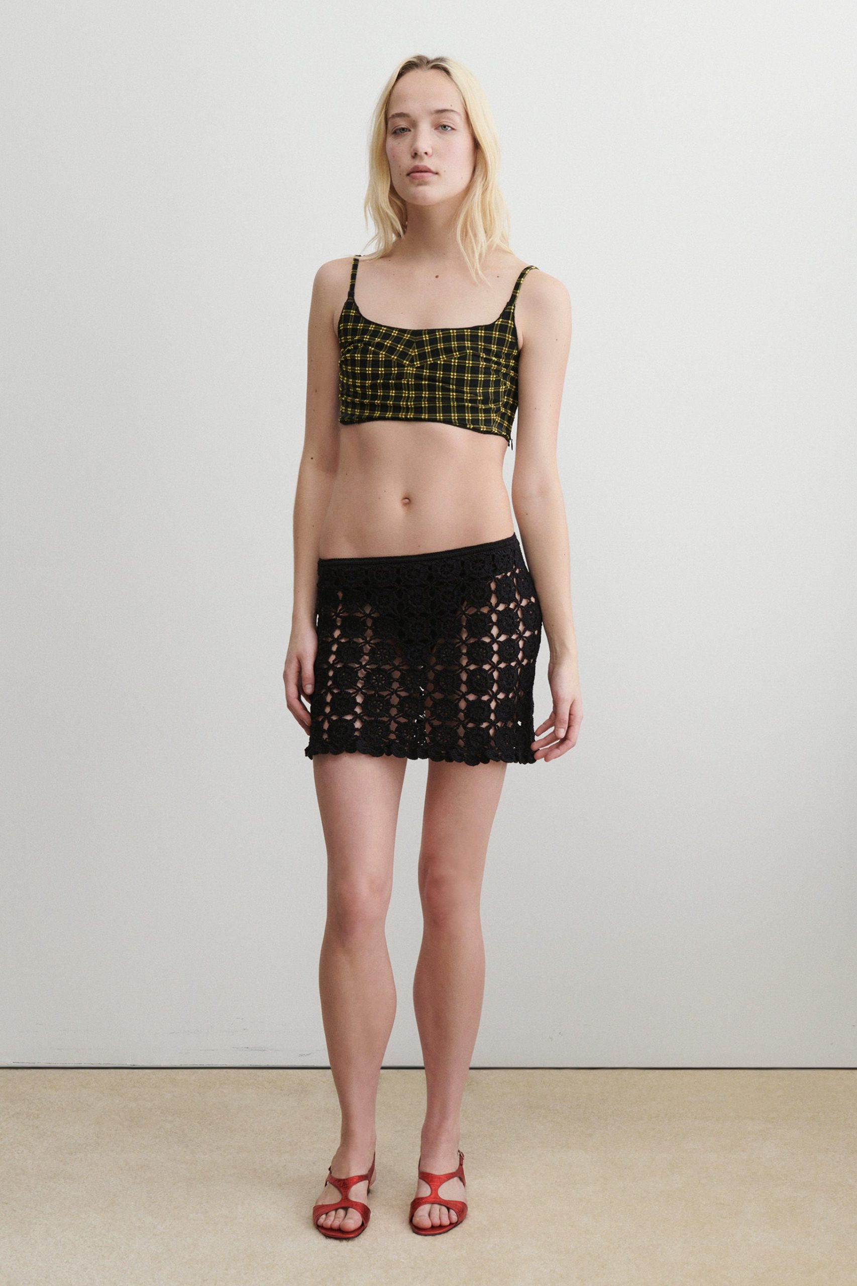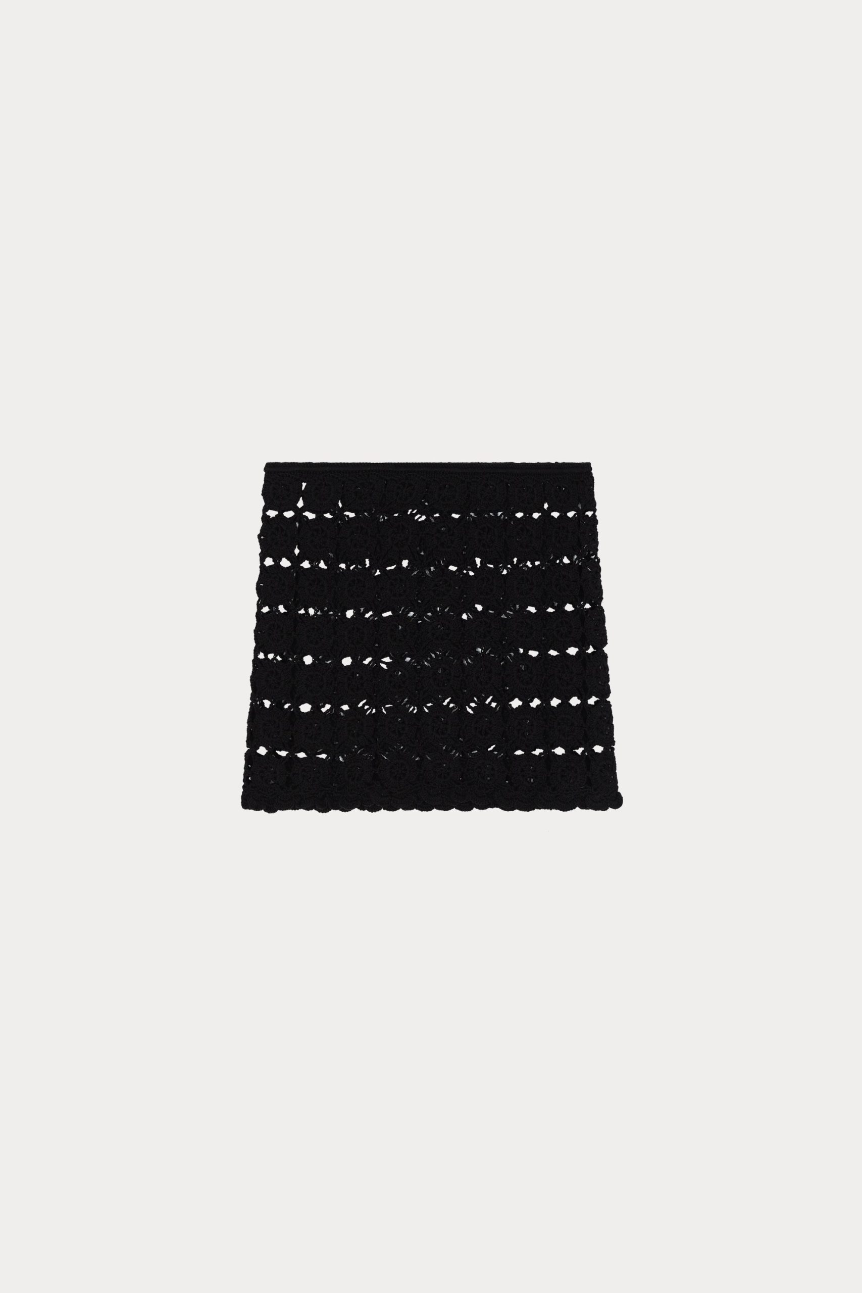 Floral open-knit crochet mini skirt in Pima cotton. Perfect for a spring night.