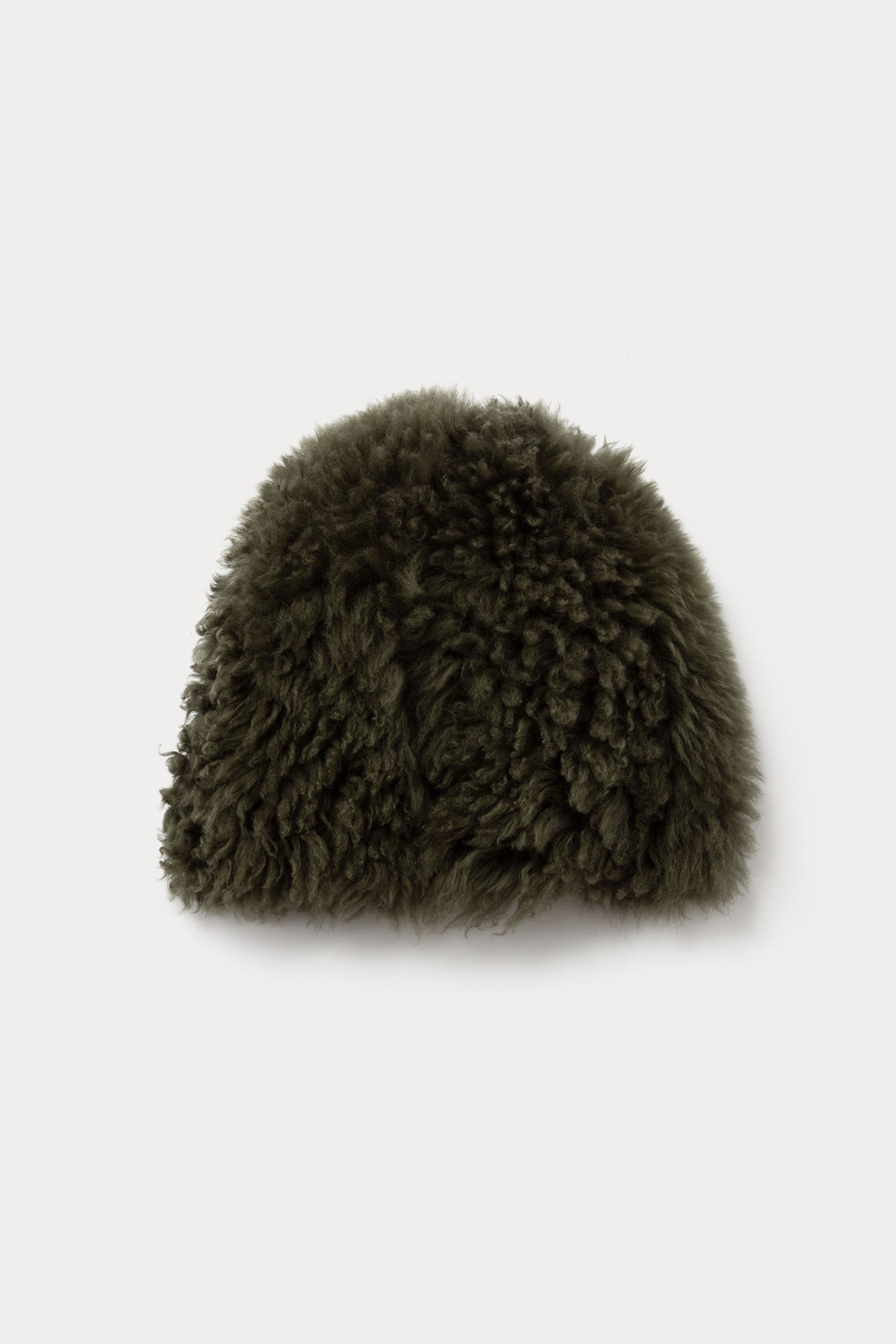 Cozy beanie in a curly, richly textured long-haired shearling. Pairs with the matching Elias Vest.