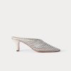 Pointed-toe kitten heel mules in perforated Nappa leather. Adds texture to any look.