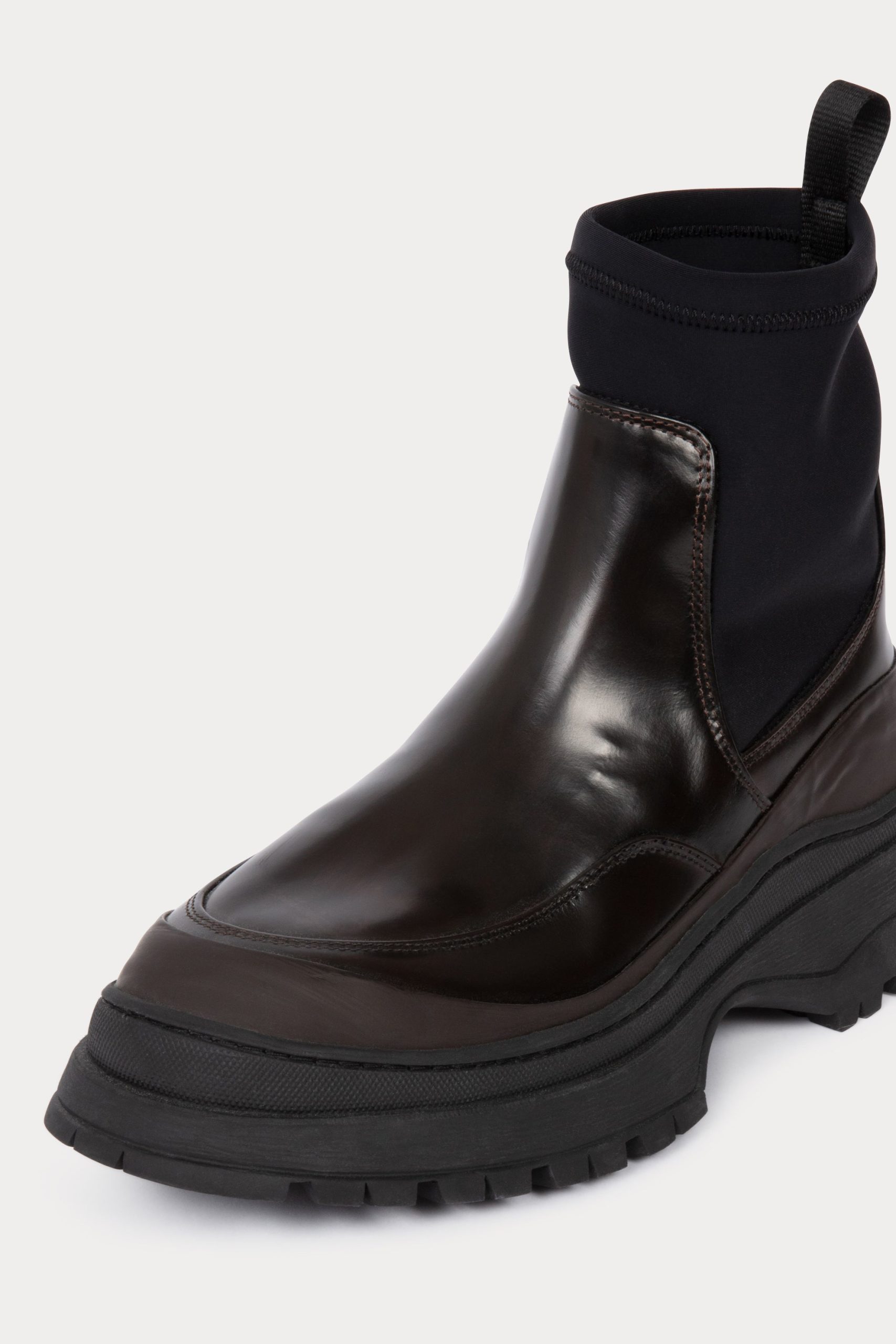 Our favorite pull-on rugged winter boot with a molded tread outsole, new this season in glossy Spazzolato Leather. The Barla Boot is lightweight and comfortable and looks great with both dresses and pants.