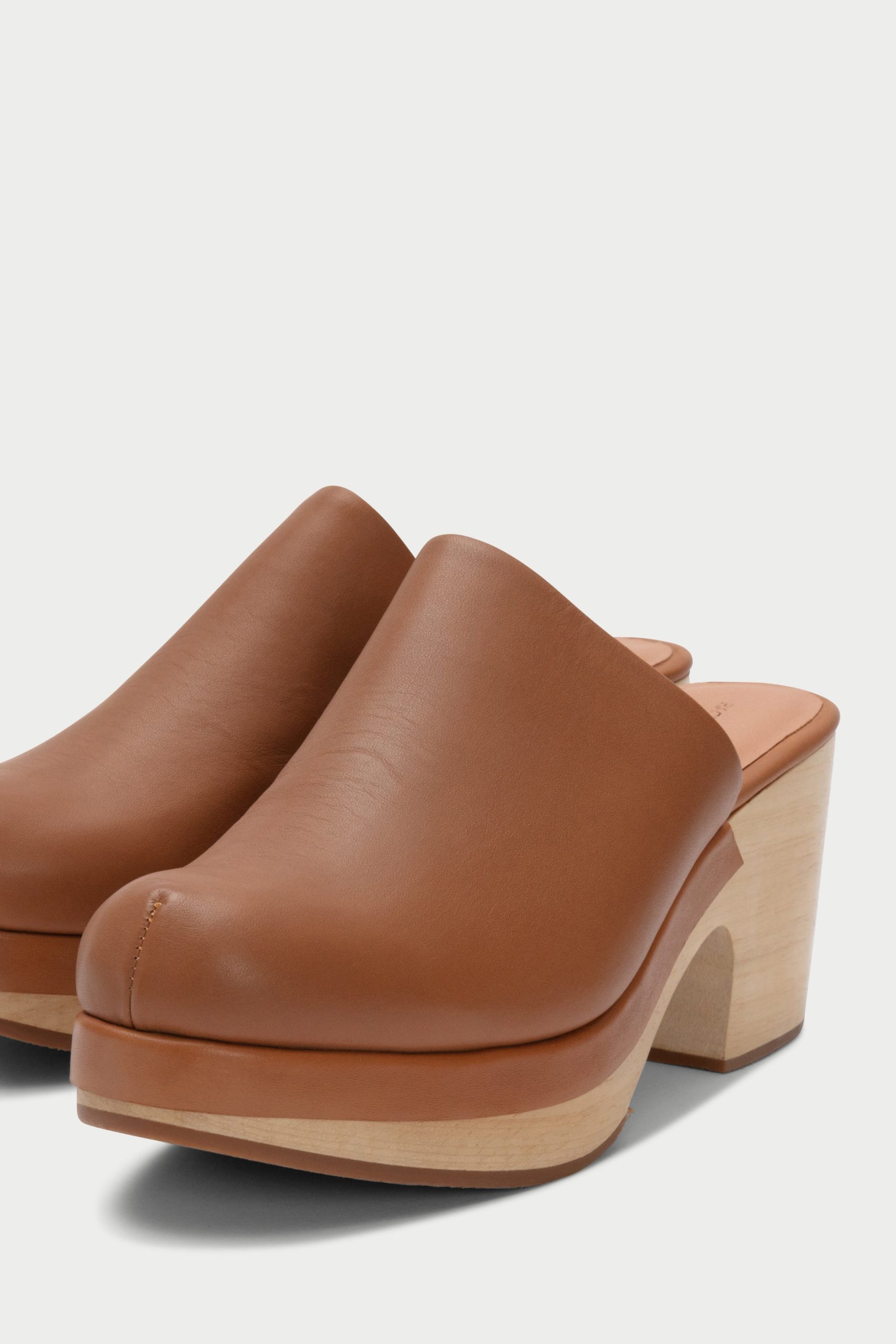 - Upper in 100% Leather, Platform in 100% Wood, Sole in 100% Rubber