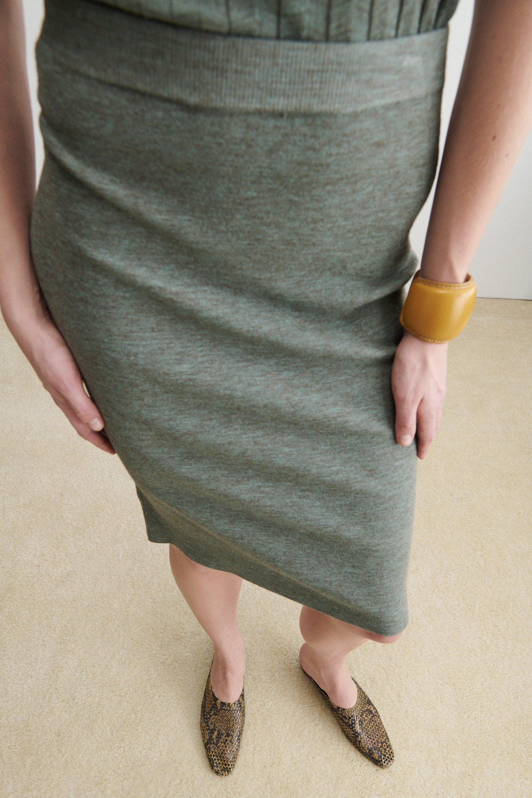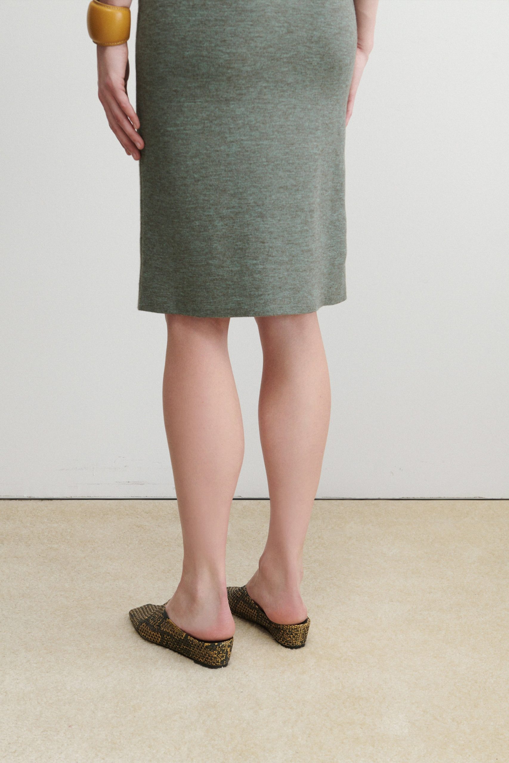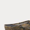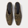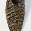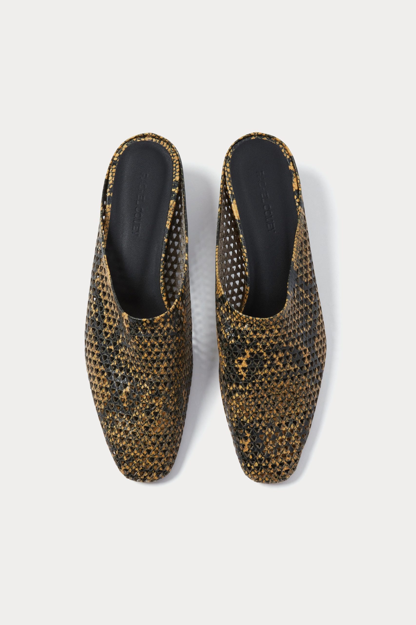 Perforated leather wedge. Features a snakeskin print and almond-shaped toe.