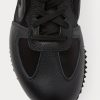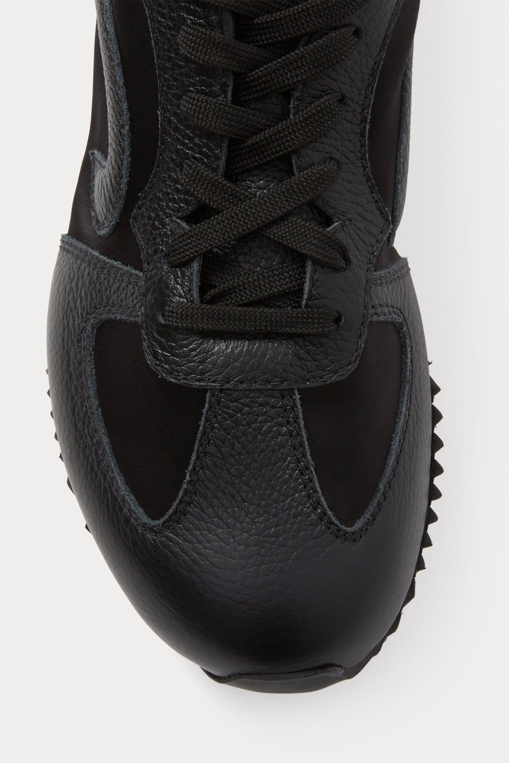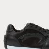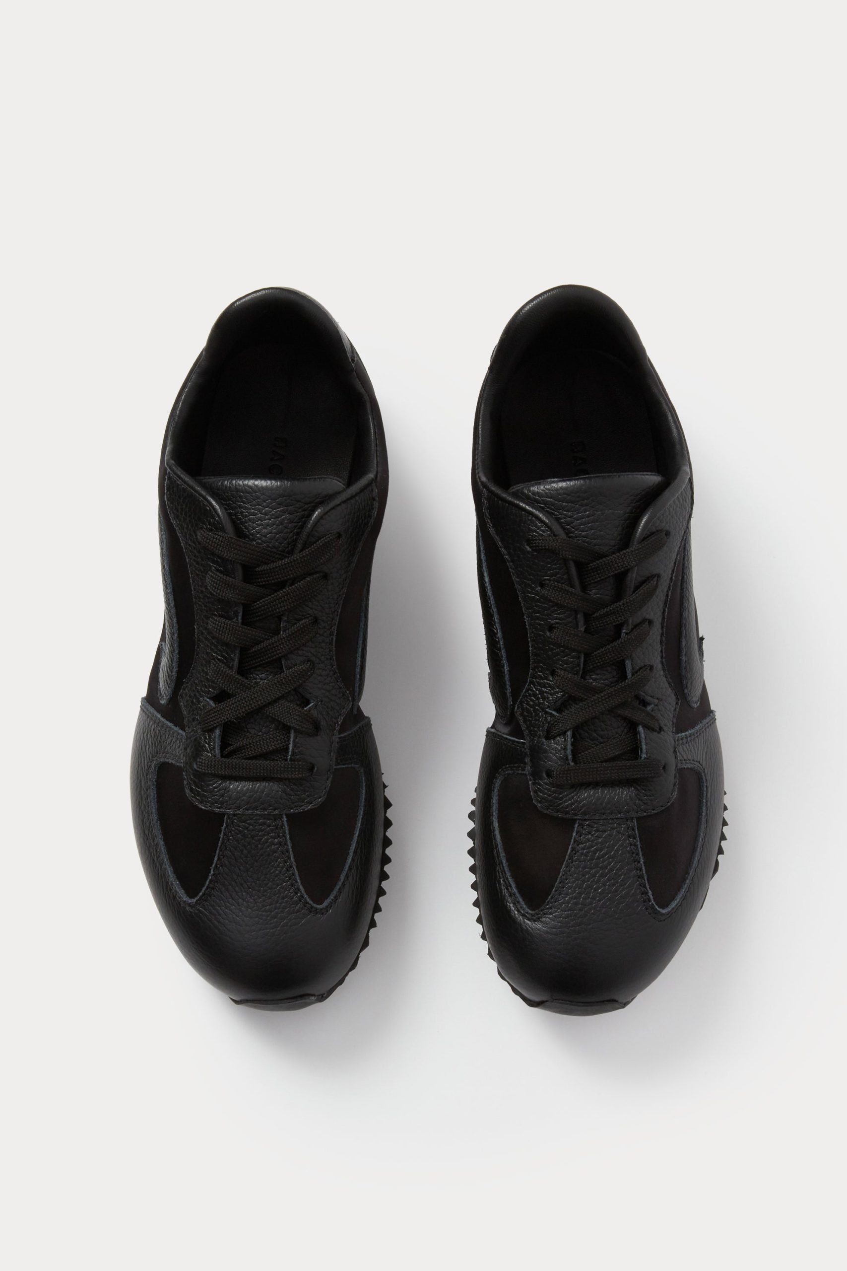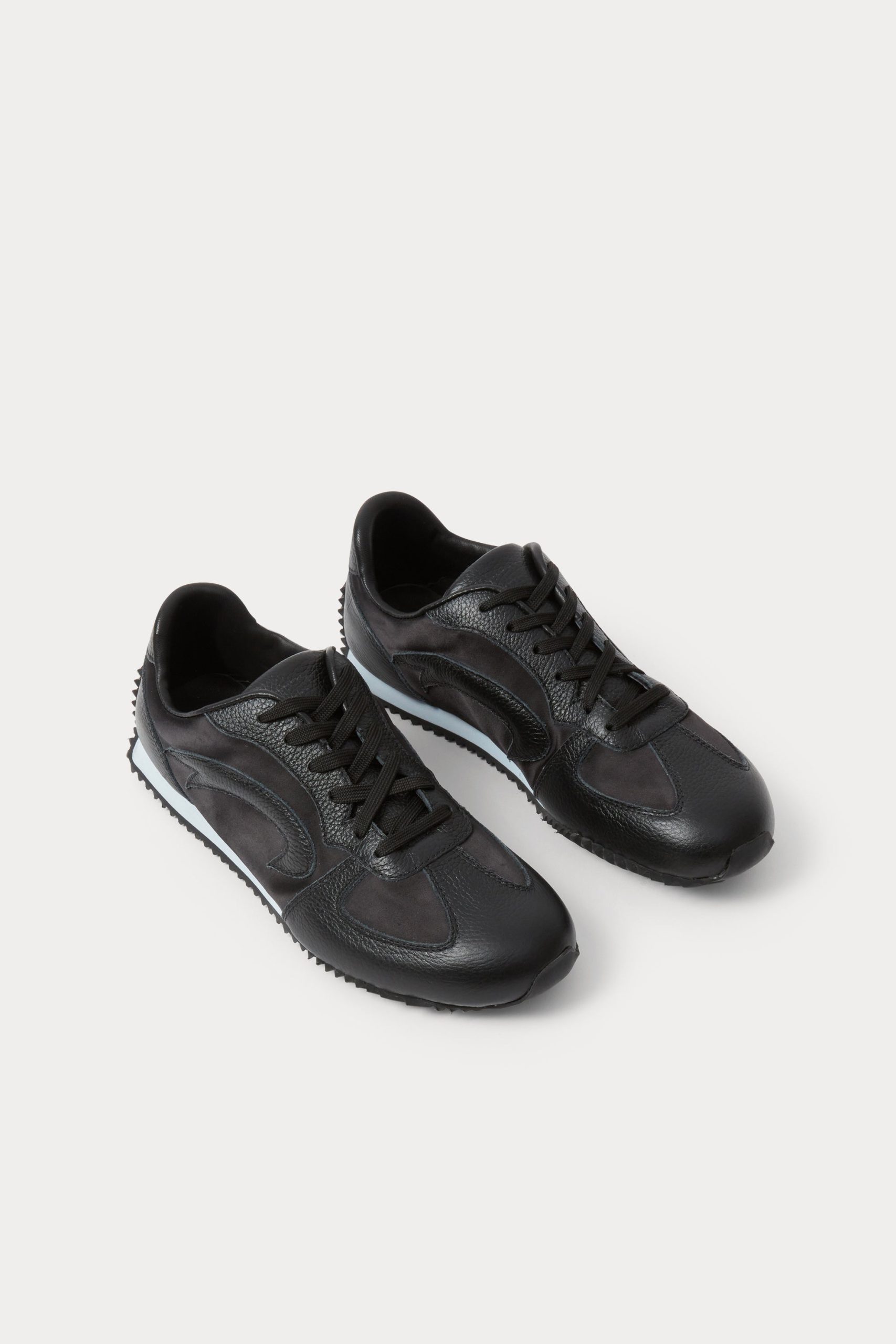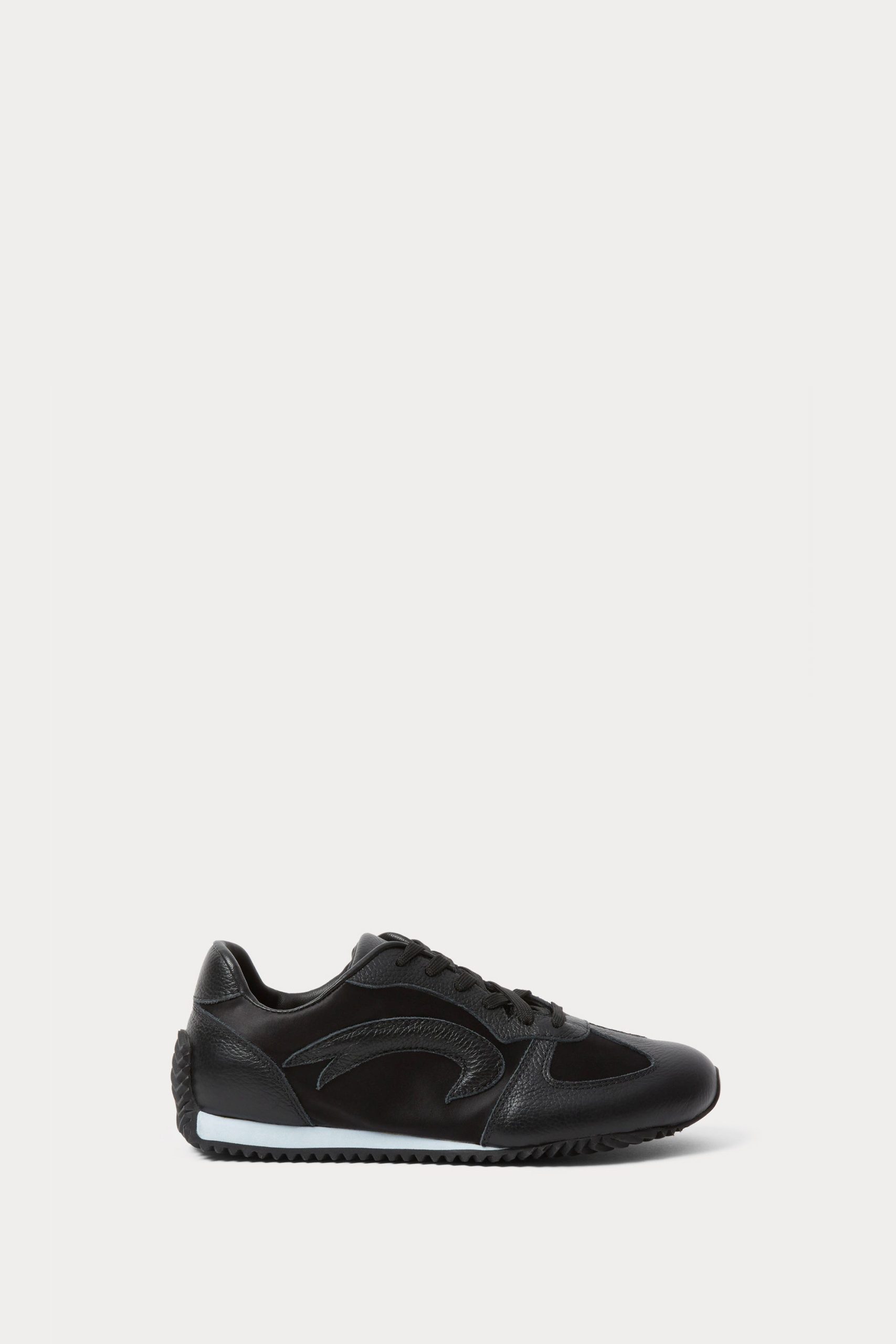 Leather and satin lace-up sneakers set on a contrasting, slightly raised heel. Finished with a durable rubber outsole for traction.