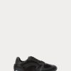Leather and satin lace-up sneakers set on a contrasting, slightly raised heel. Finished with a durable rubber outsole for traction.