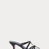 Bondage-inspired kitten sandals with an open toe design in soft nappa leather. Features interlocking metal ring details at the vamp.