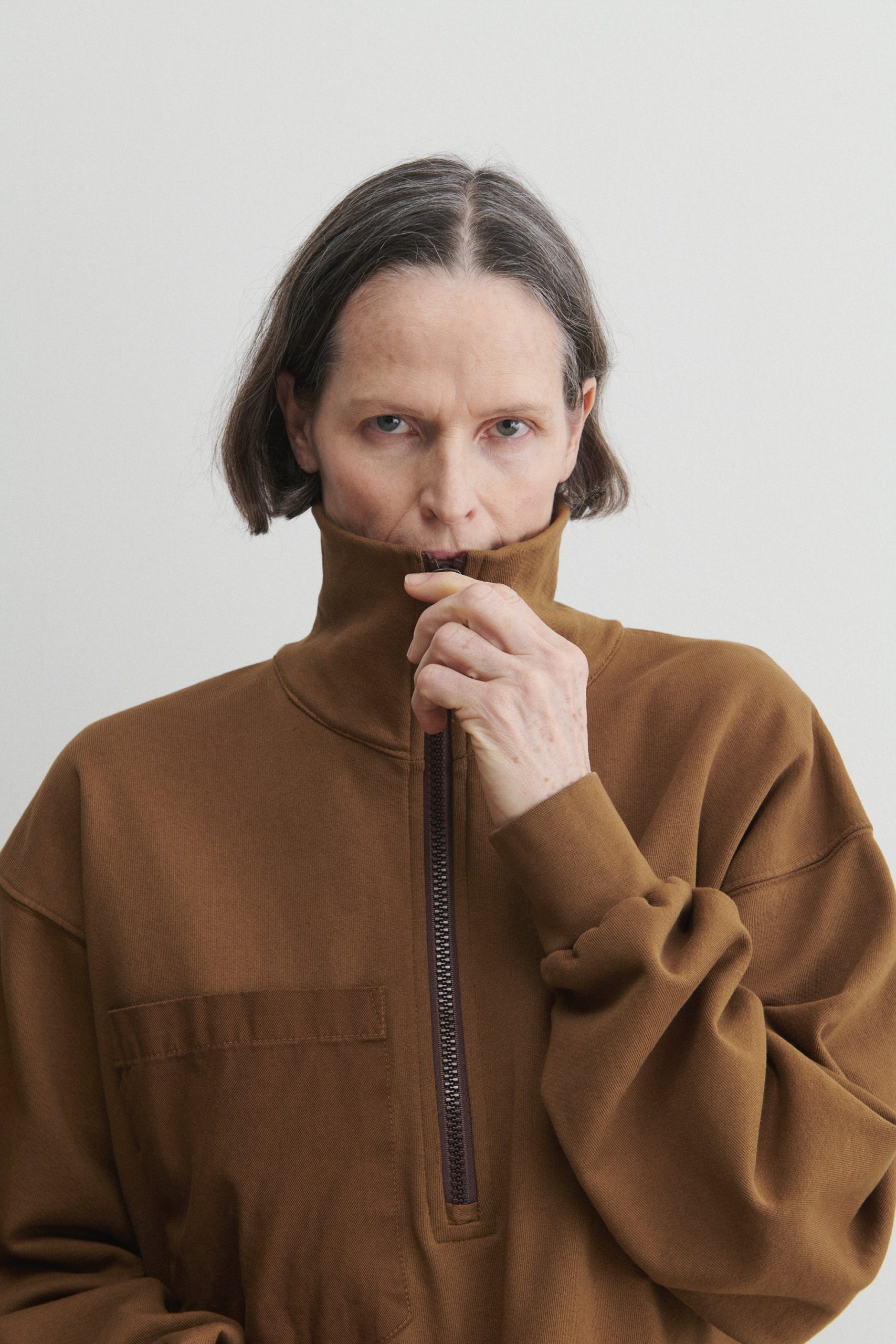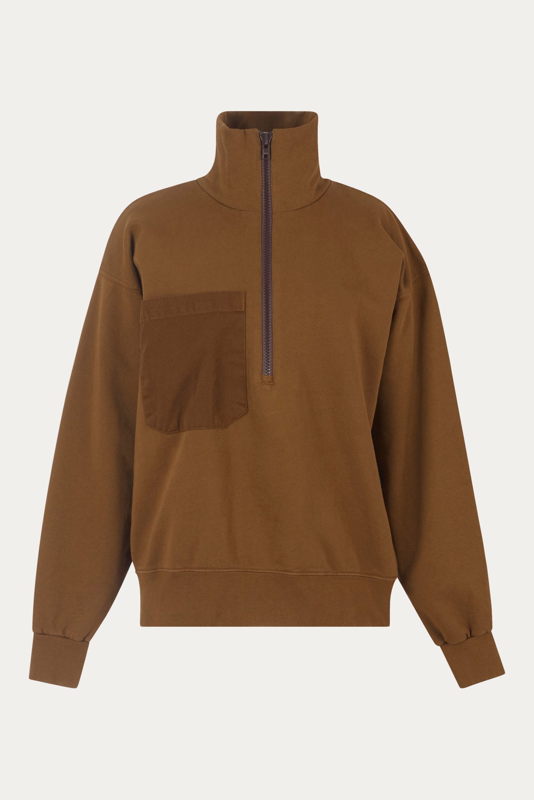 Half-zip mock-neck sweatshirt with front patch pocket, cut from soft terry fleece. A great styling piece for any look.