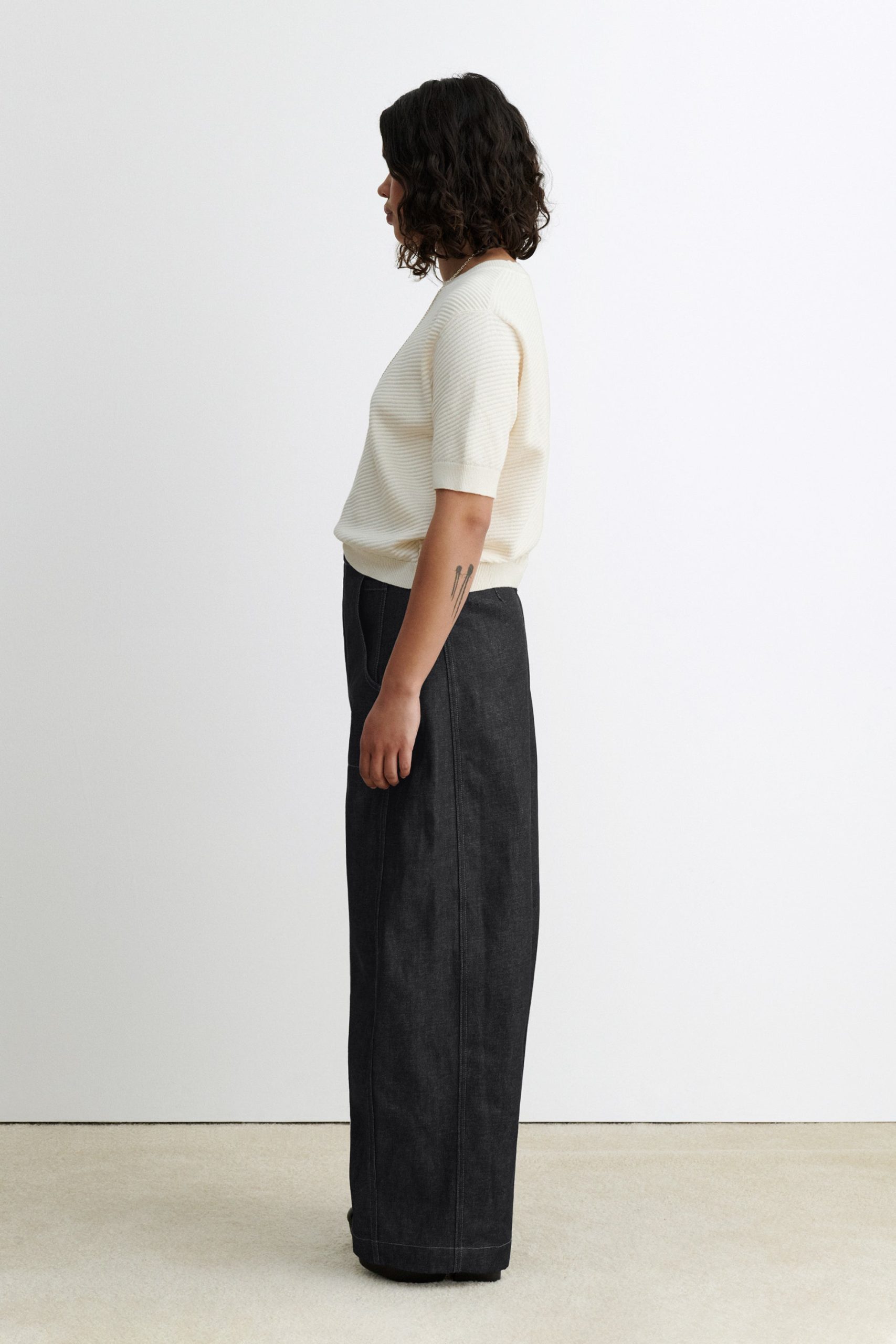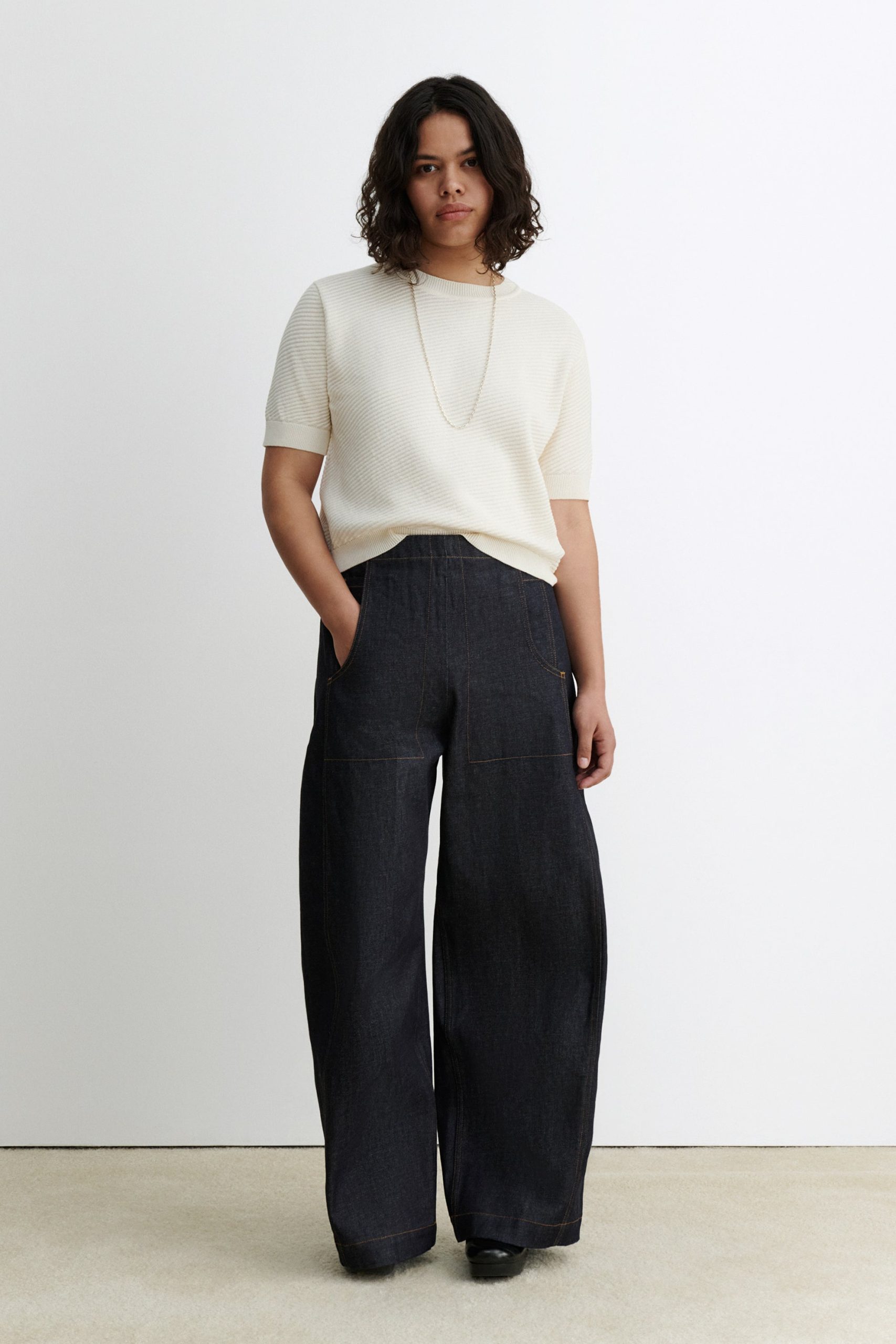 Our relaxed-fit high-waisted jeans are back in Super Raw Mission Denim, featuring a discreet back zipper and rear darts for a flattering fit. Cut to a wide-leg silhouette, offering a relaxed and spacious feel, with deep square pockets and unique coin pockets for functionality. Made in Los Angeles using premium Japanese denim, each style is produced in limited quantities in collaboration with small, family-run factories.