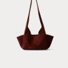 Soft and sculptural, this semi-structured bag in rich bonded suede features a fixed shoulder strap, extended exterior pockets, and magnetic closure. Can be worn over the shoulder or across the body. A smaller version of our Large Tool Bag.