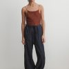 Baggy, parachute-styled pant in dark indigo Raw Vista Denim with topstitch detailing and a corded belt closure at waist. Features elasticated ankle cuffs with adjustable drawstrings to create a voluminous leg.
