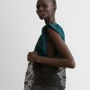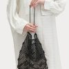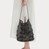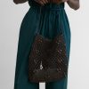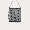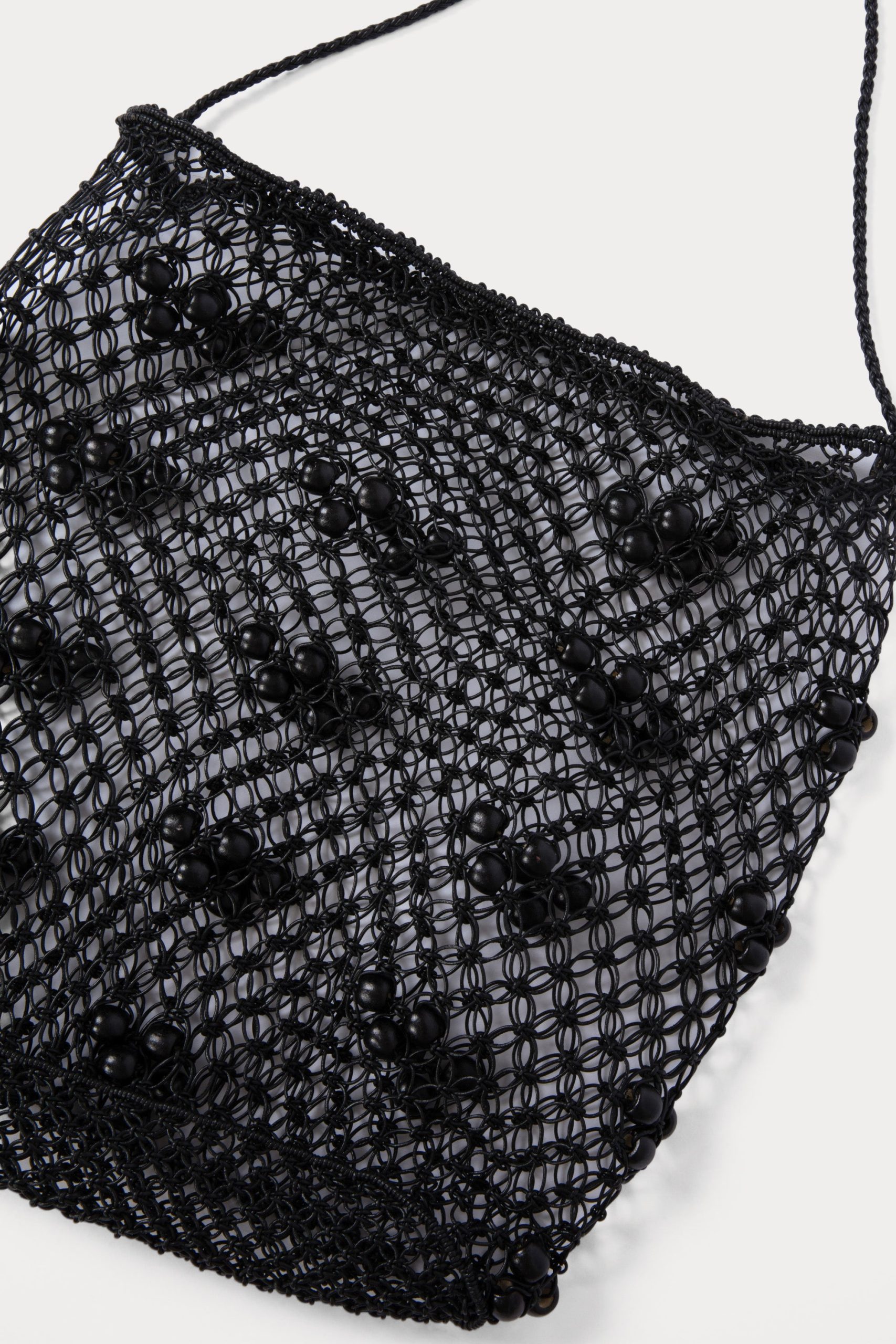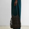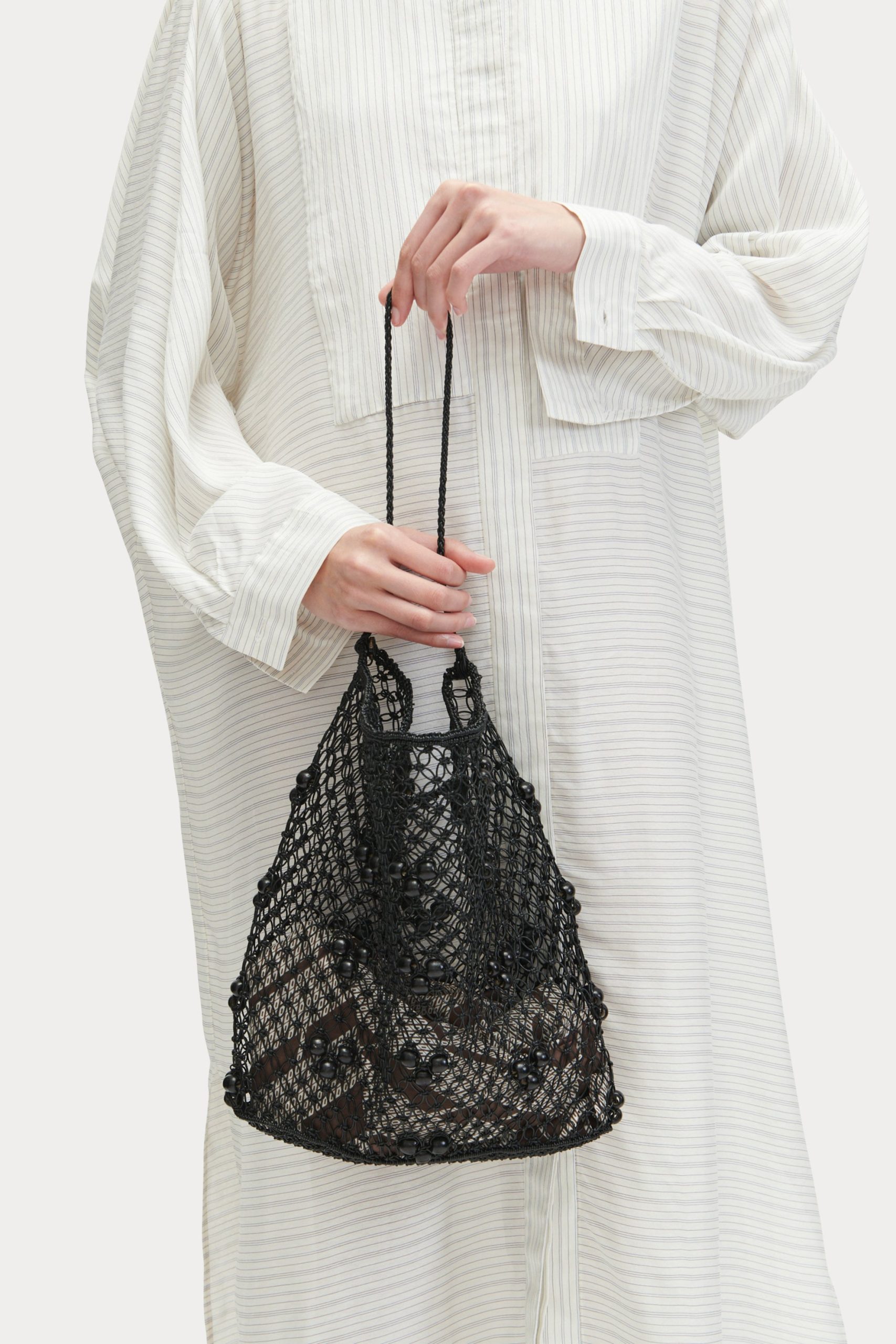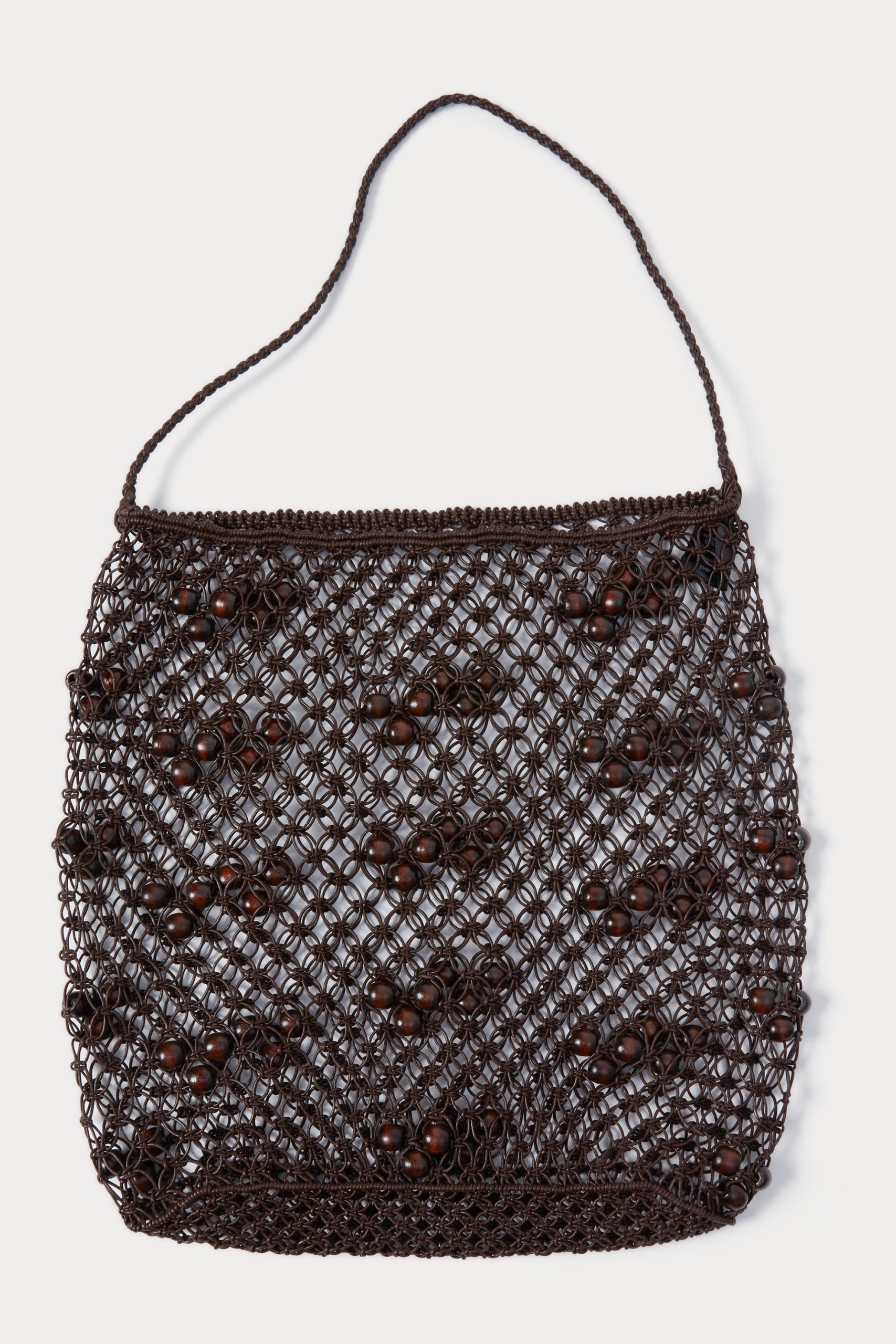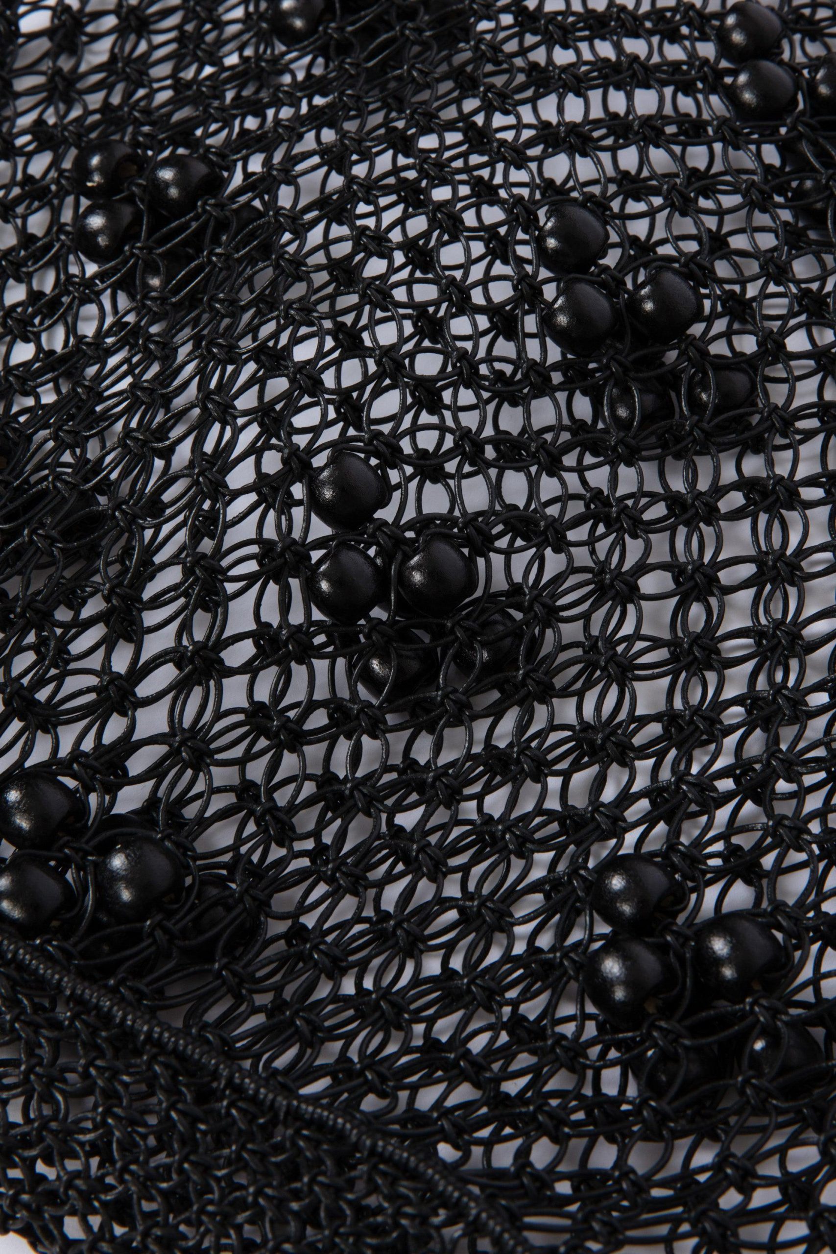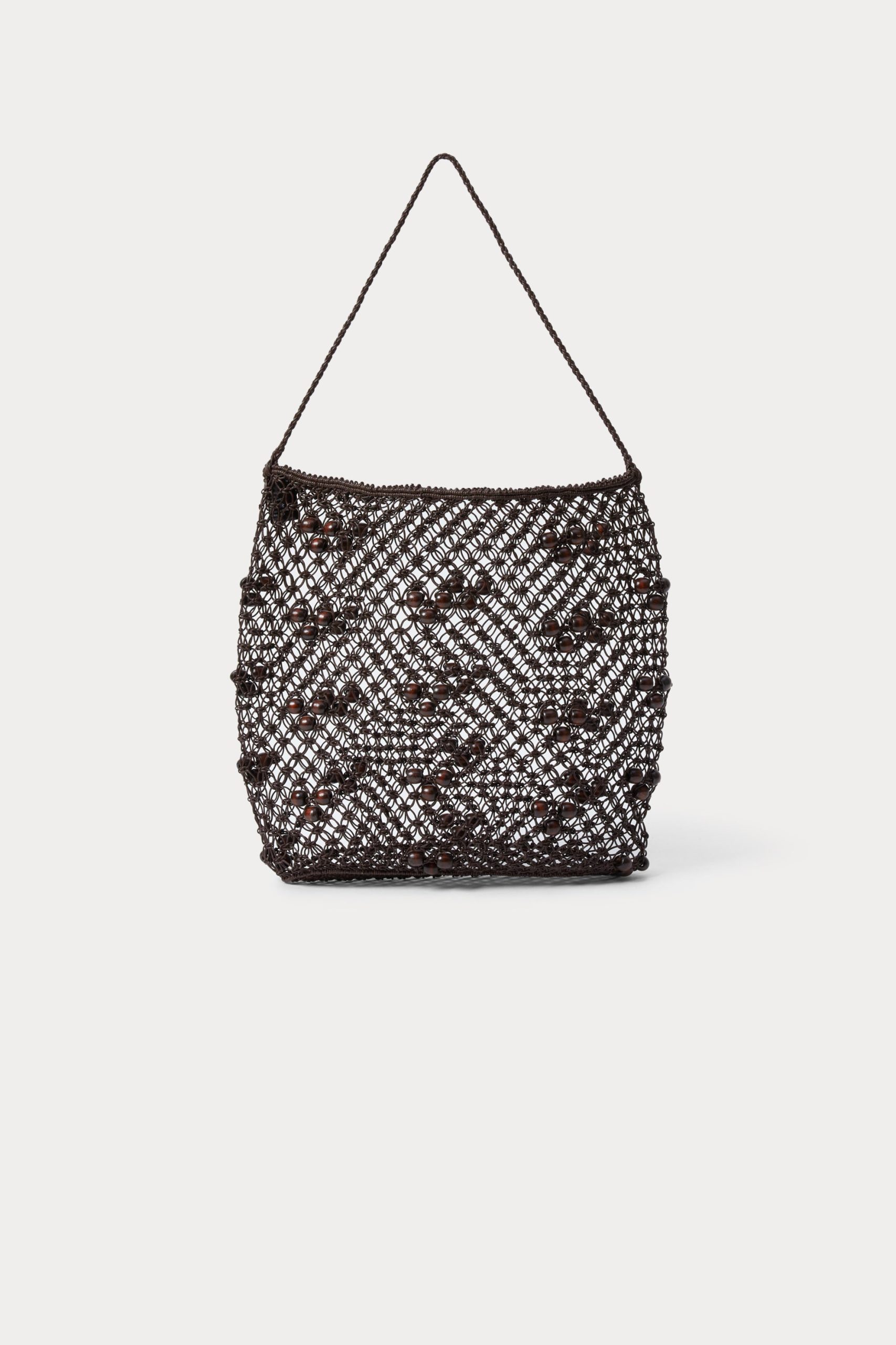Slouchy shoulder bag crafted from intricately woven leather and bamboo beads.
